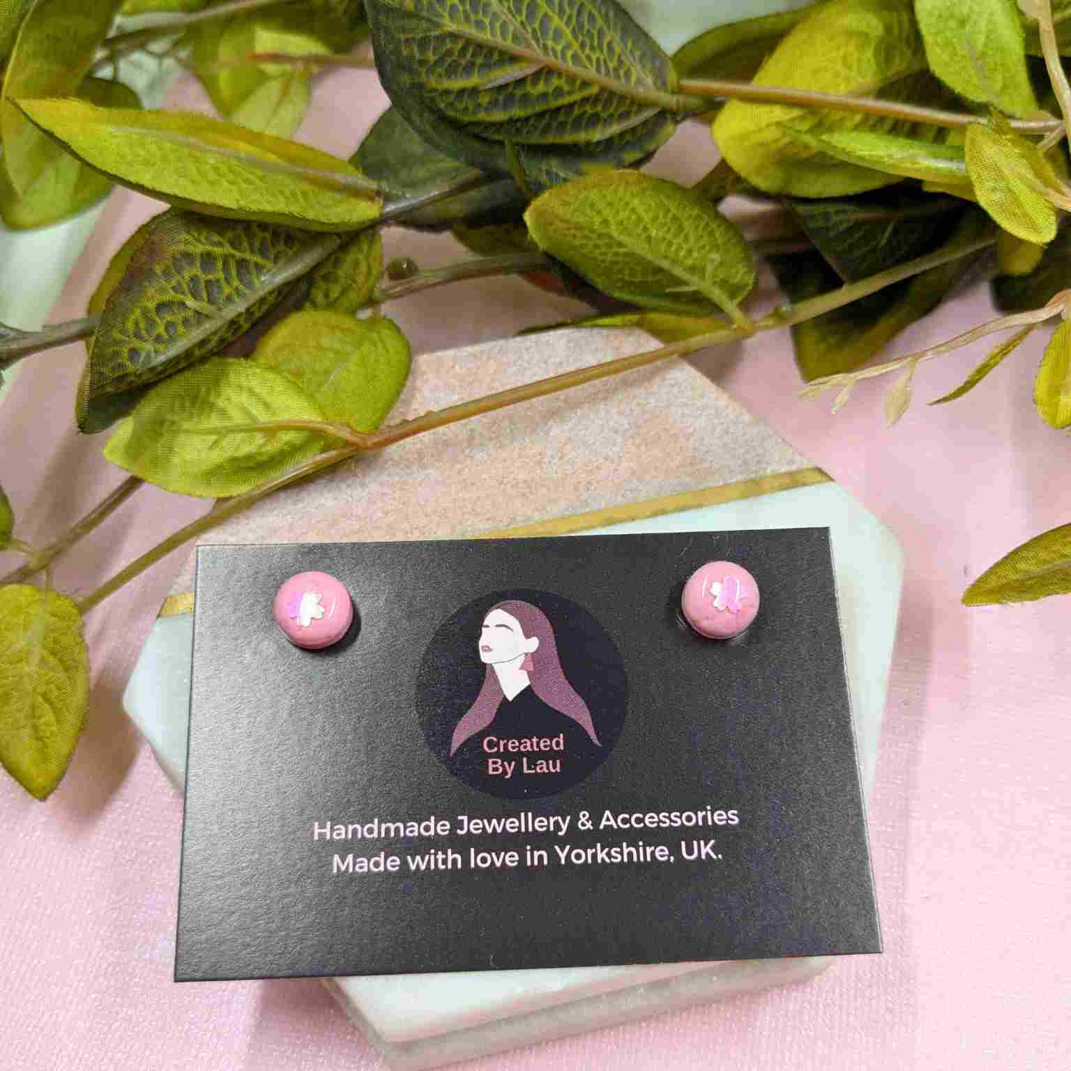 Add a touch of playful charm and sparkle to your ears with our "Bridget" Sequin Flower Pink Resin Stud Earrings! Lovingly handmade in our Shipley studio, right here in West Yorkshire, these delightful studs feature a charming sequin flower set against a vibrant pink background.