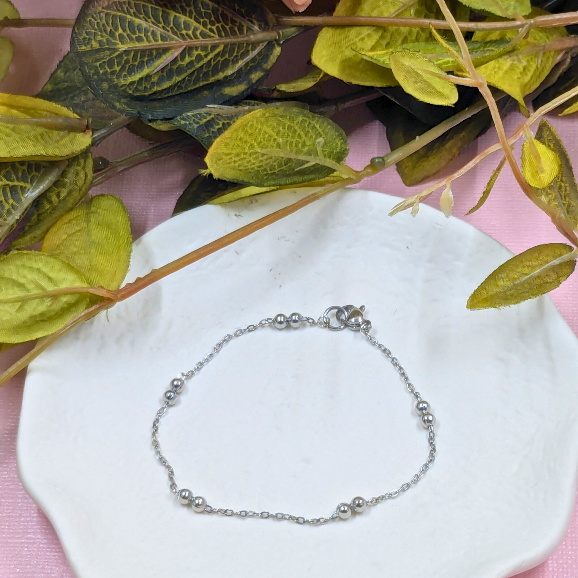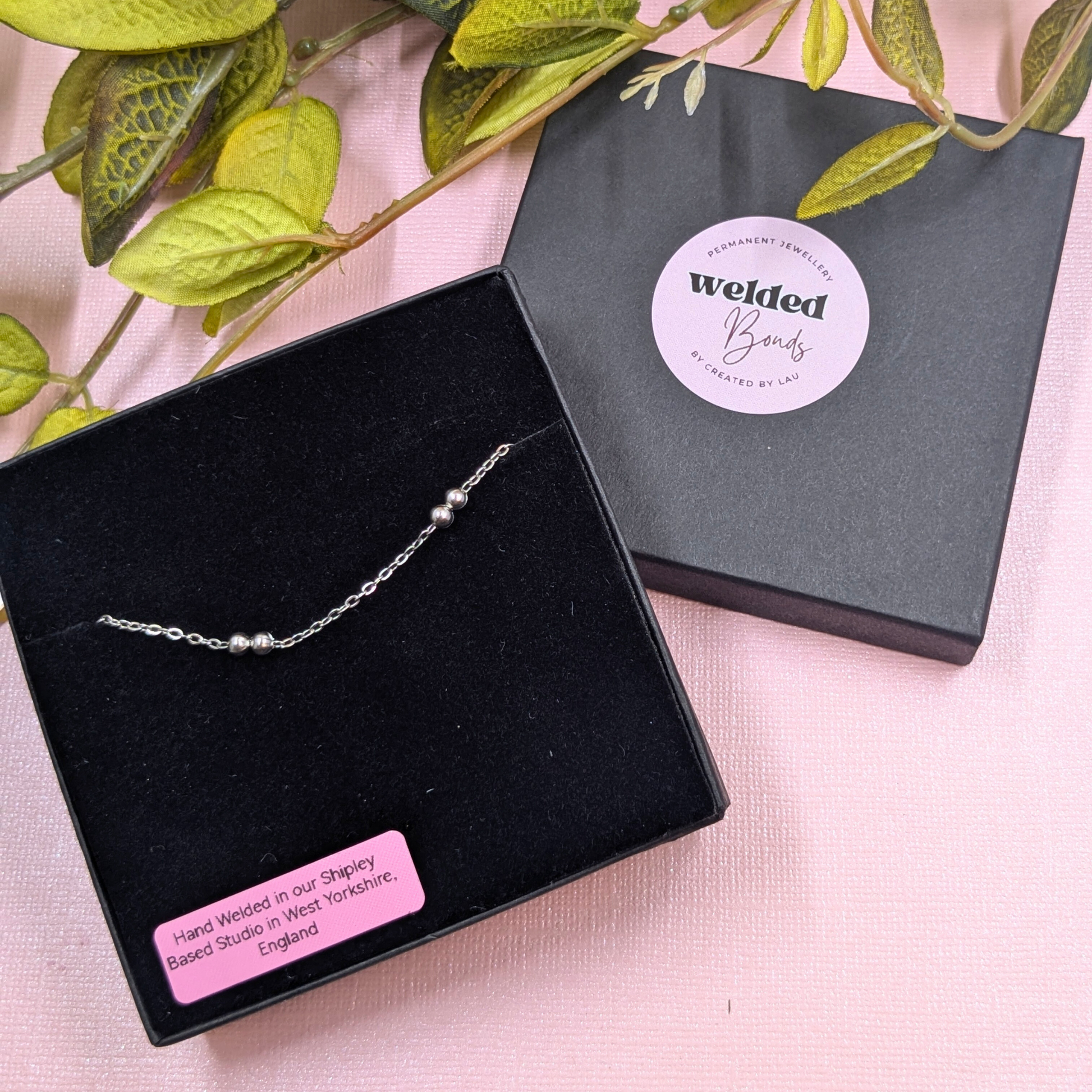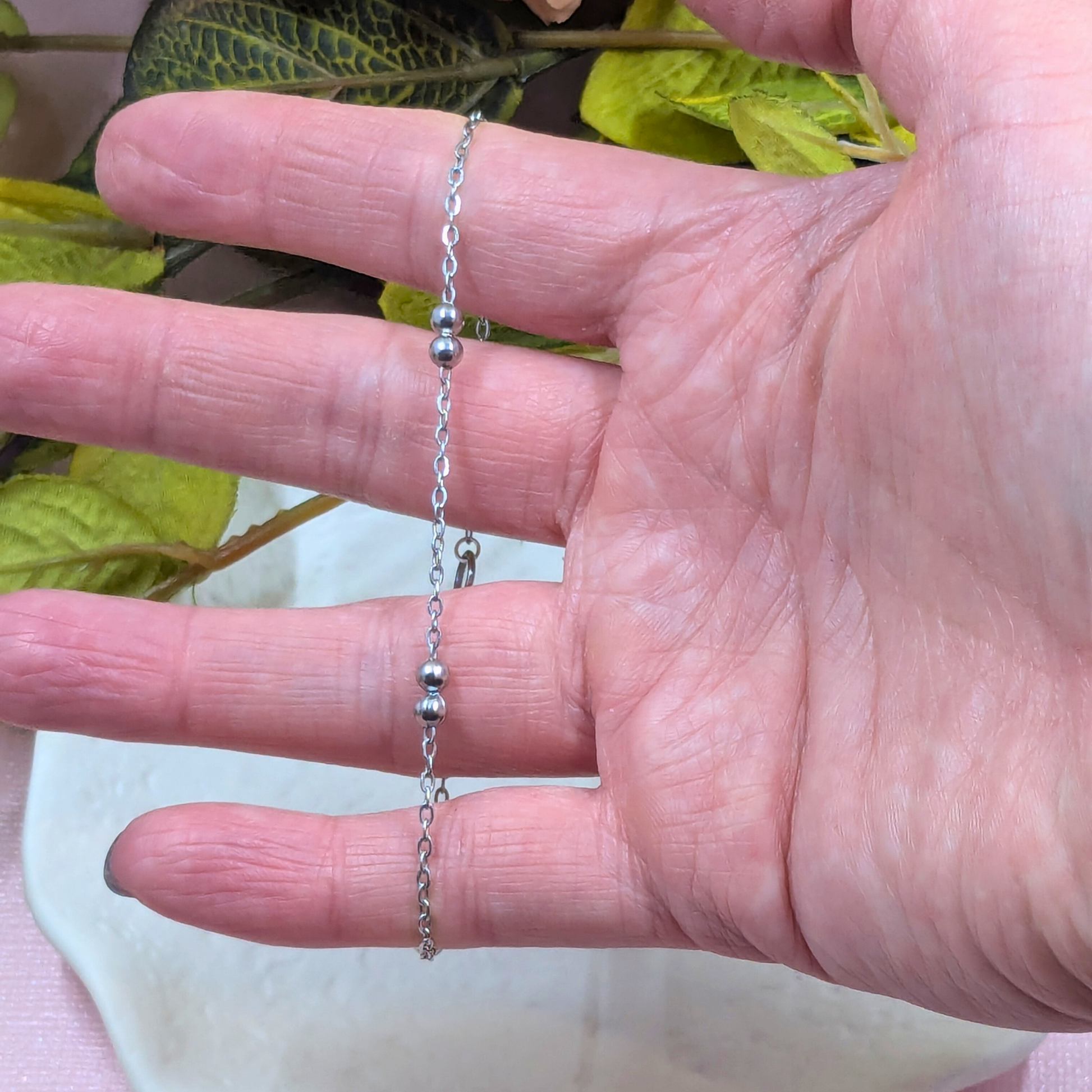Add a touch of contemporary elegance to your wrist with the "Cologne" Silver Stainless Steel Beaded Chain Bracelet, a stunning piece from our Welded Bonds Ready-to-Wear Collection. This beautiful bracelet is lovingly hand-welded in my Shipley, Yorkshire studio, embodying the unique craftsmanship you expect from Created By Lau.