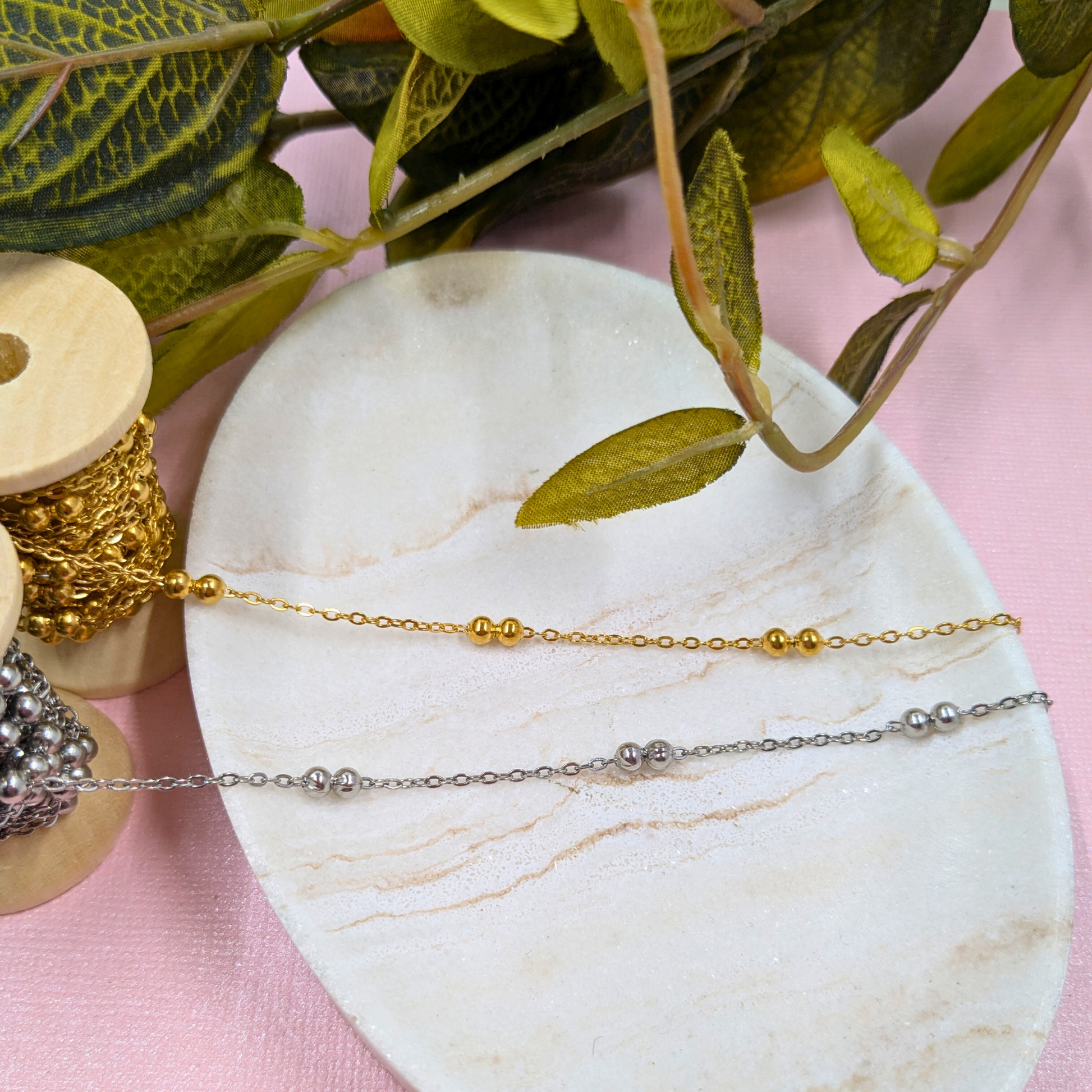Elevate your style with our "Cologne" Stainless Steel Beaded Chain. Available in gold or silver, this chain is a perfect addition to any outfit. Made with durable stainless steel, it's ideal for permanent jewellery. Upgrade your look with this sleek and versatile chain today!