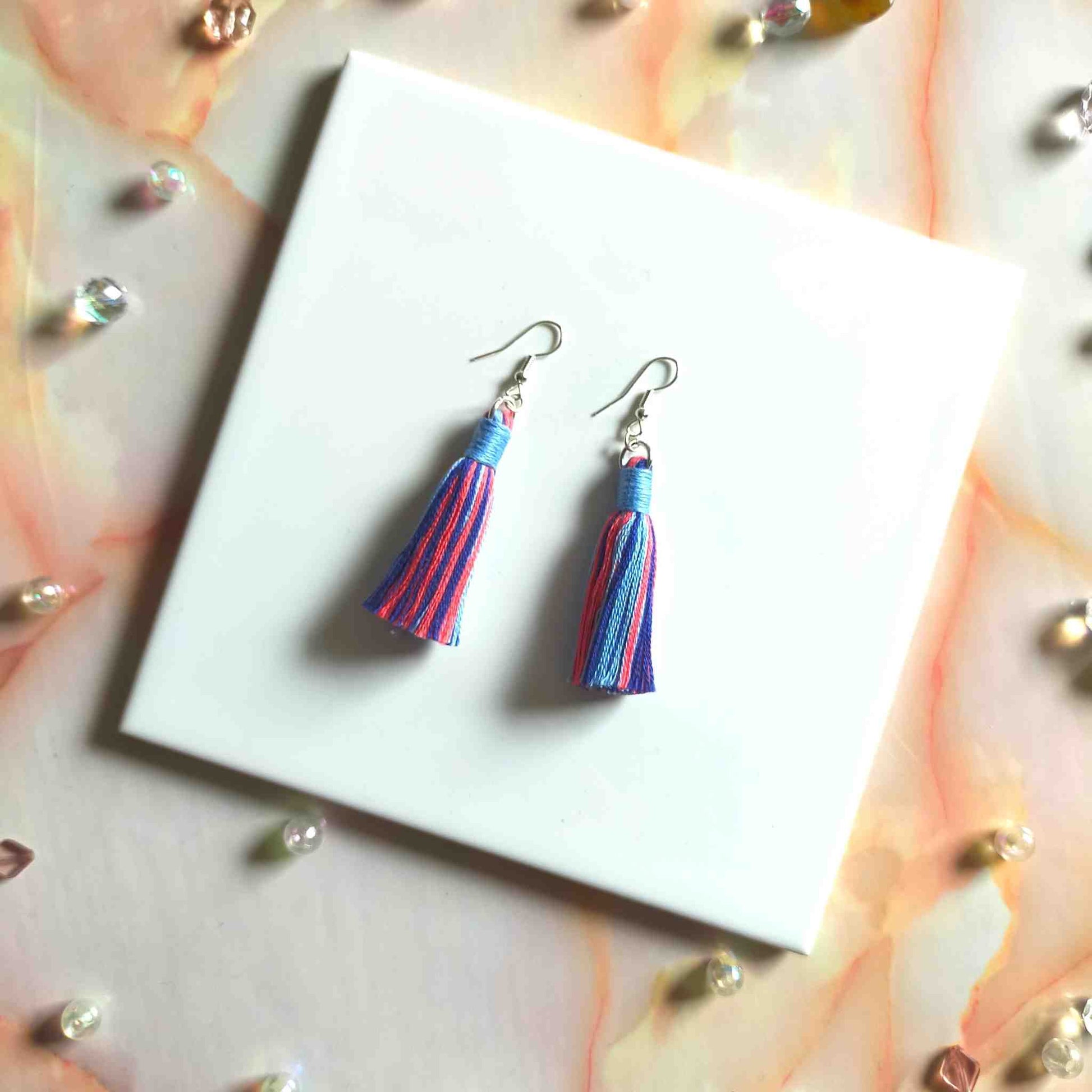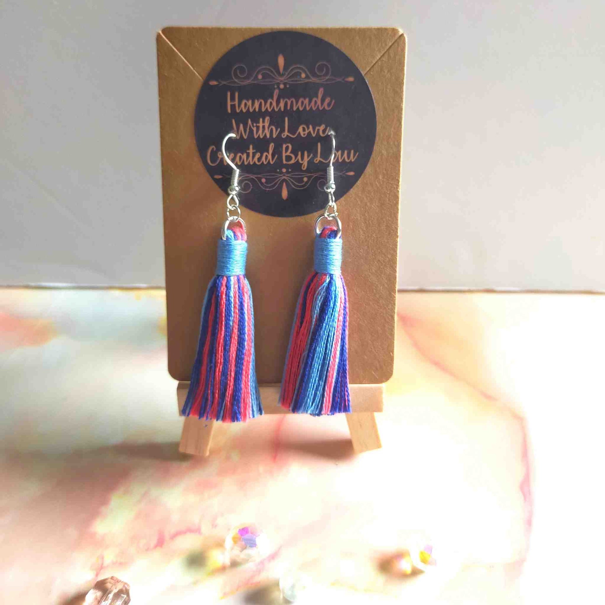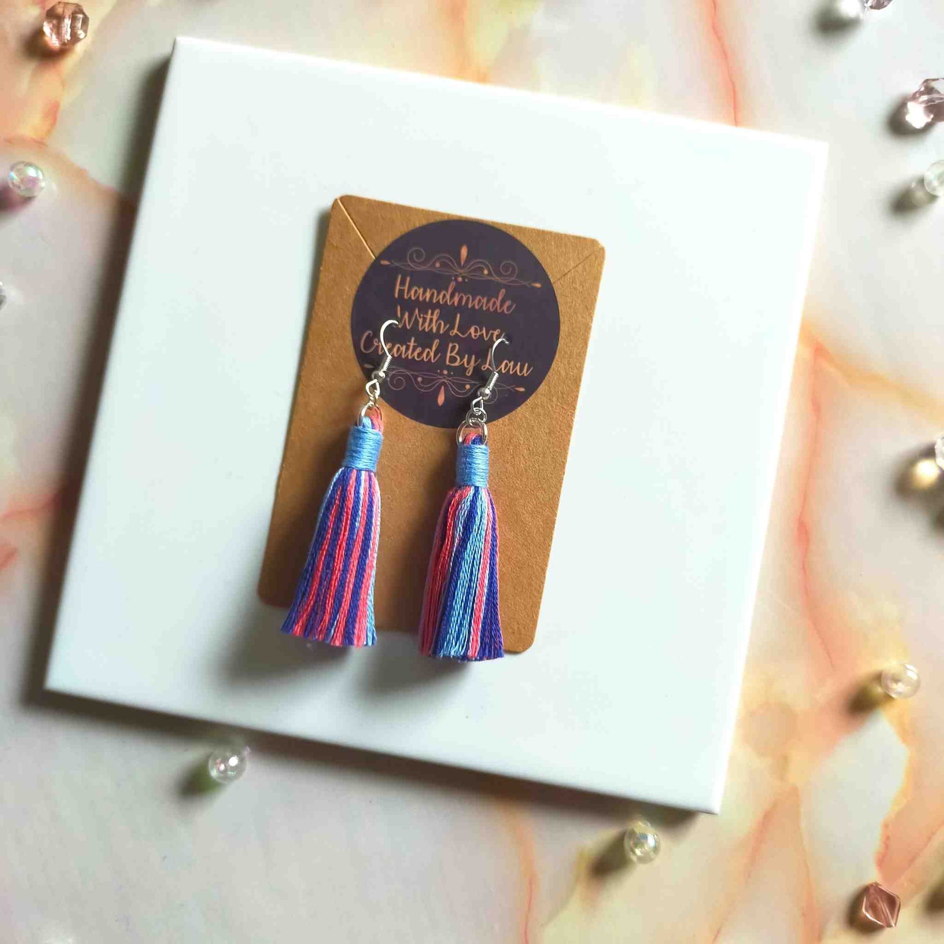This limited edition "Fallon Mini" tassel earrings are created in bold colours of sky blue, royal blue and coral to give the wearer the perfect addition to any summer outfit. Perfect for your summer holidays or any festival that you have coming up as they will complete your outfit.