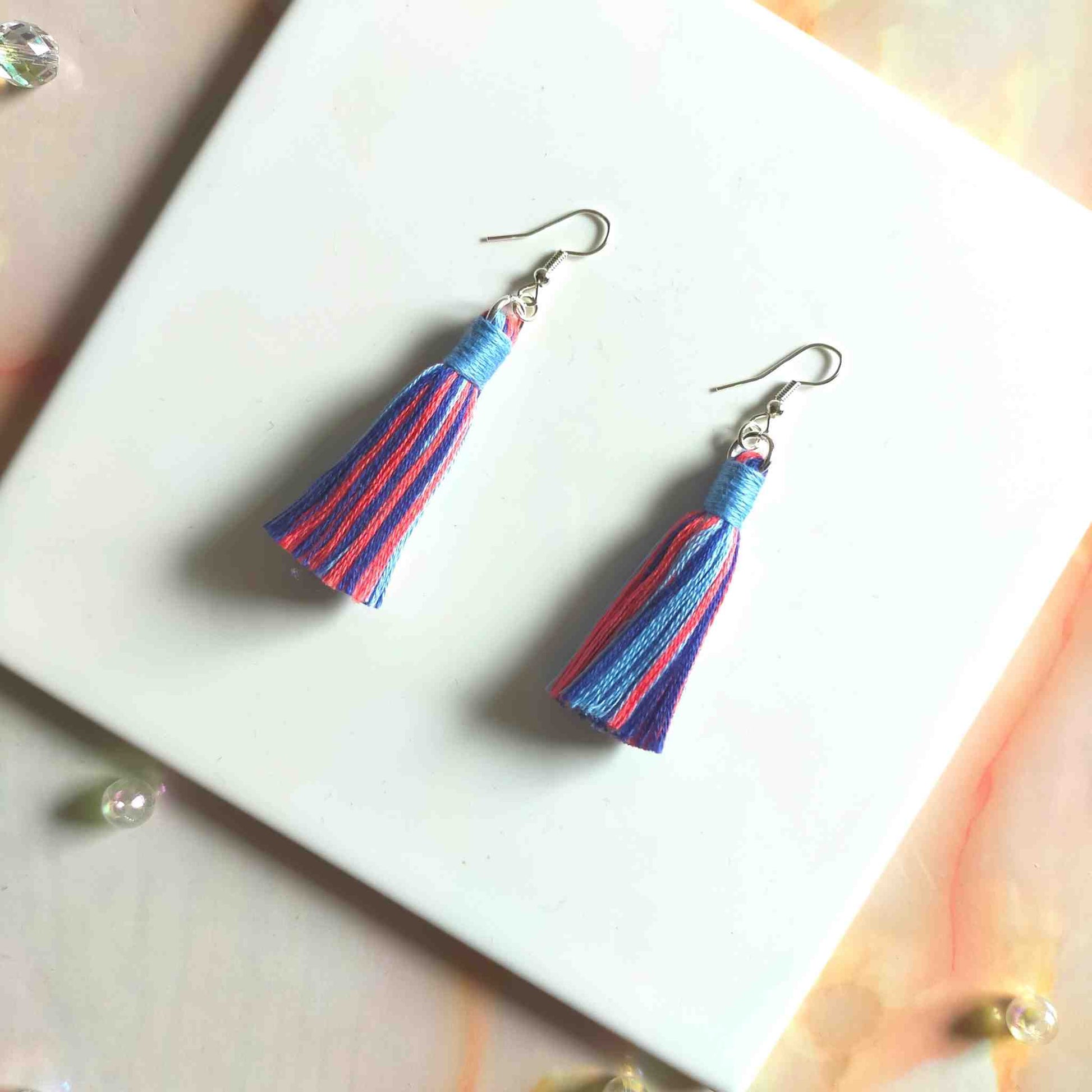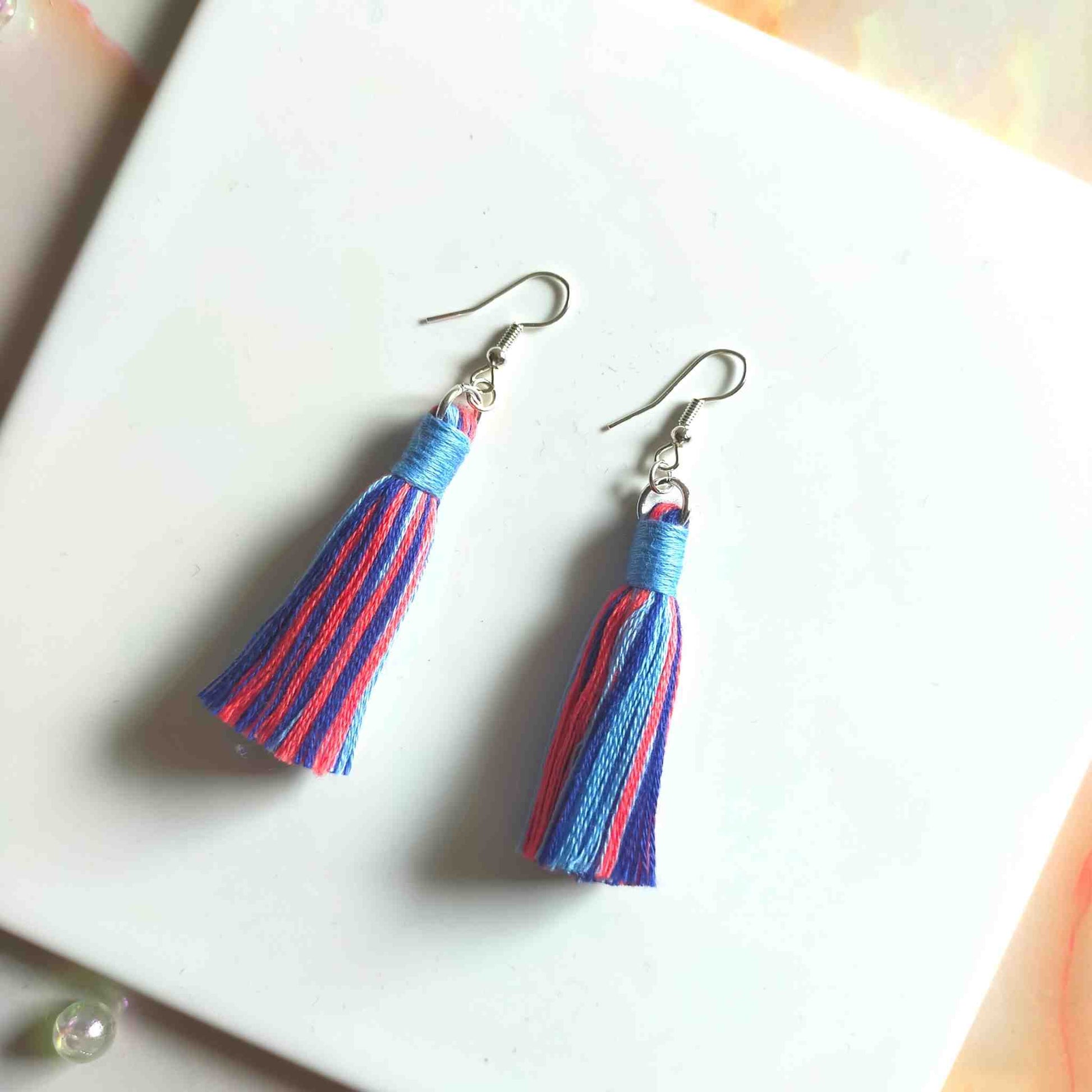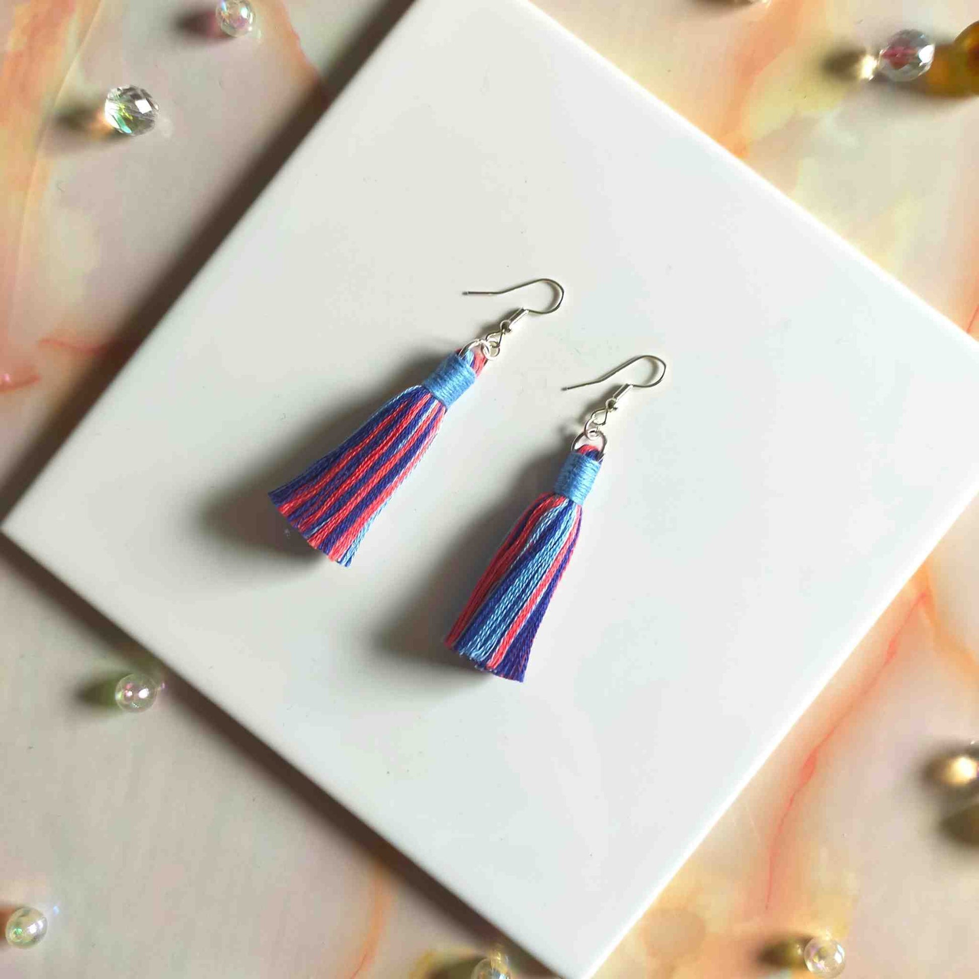 This limited edition "Fallon Mini" tassel earrings are created in bold colours of sky blue, royal blue and coral to give the wearer the perfect addition to any summer outfit. Perfect for your summer holidays or any festival that you have coming up as they will complete your outfit.