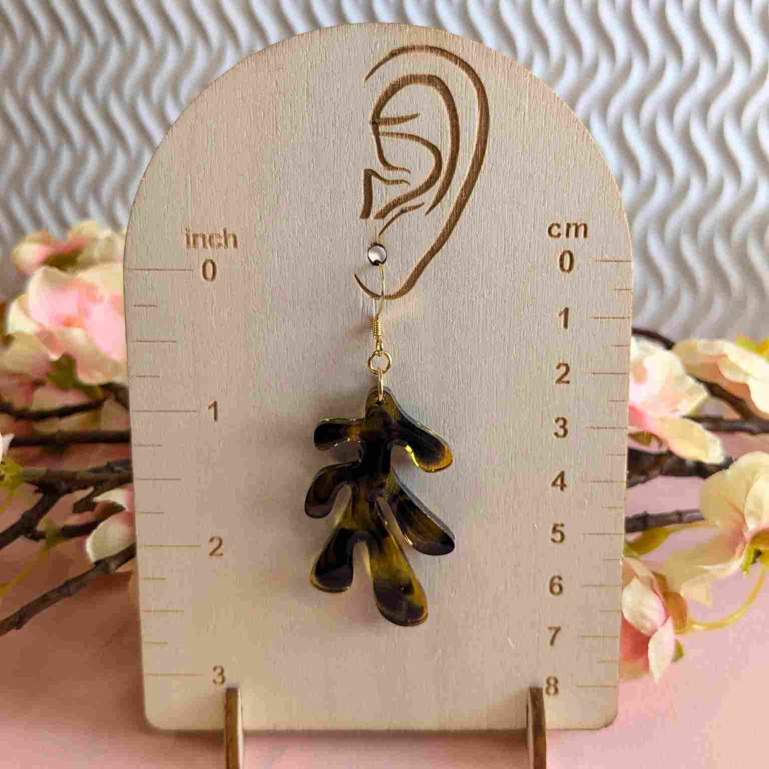 Dakota Tortoiseshell Effect Resin Organic Leaf Earrings - Gold Plated Hooks - Handmade Yorkshire