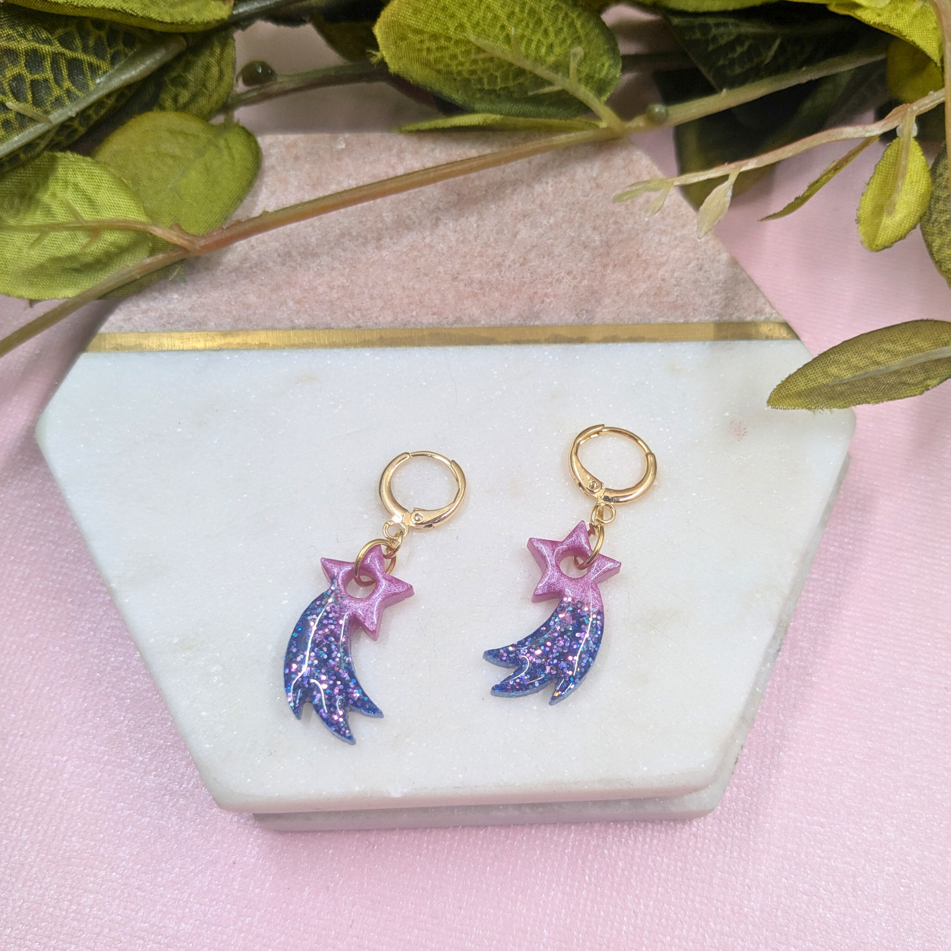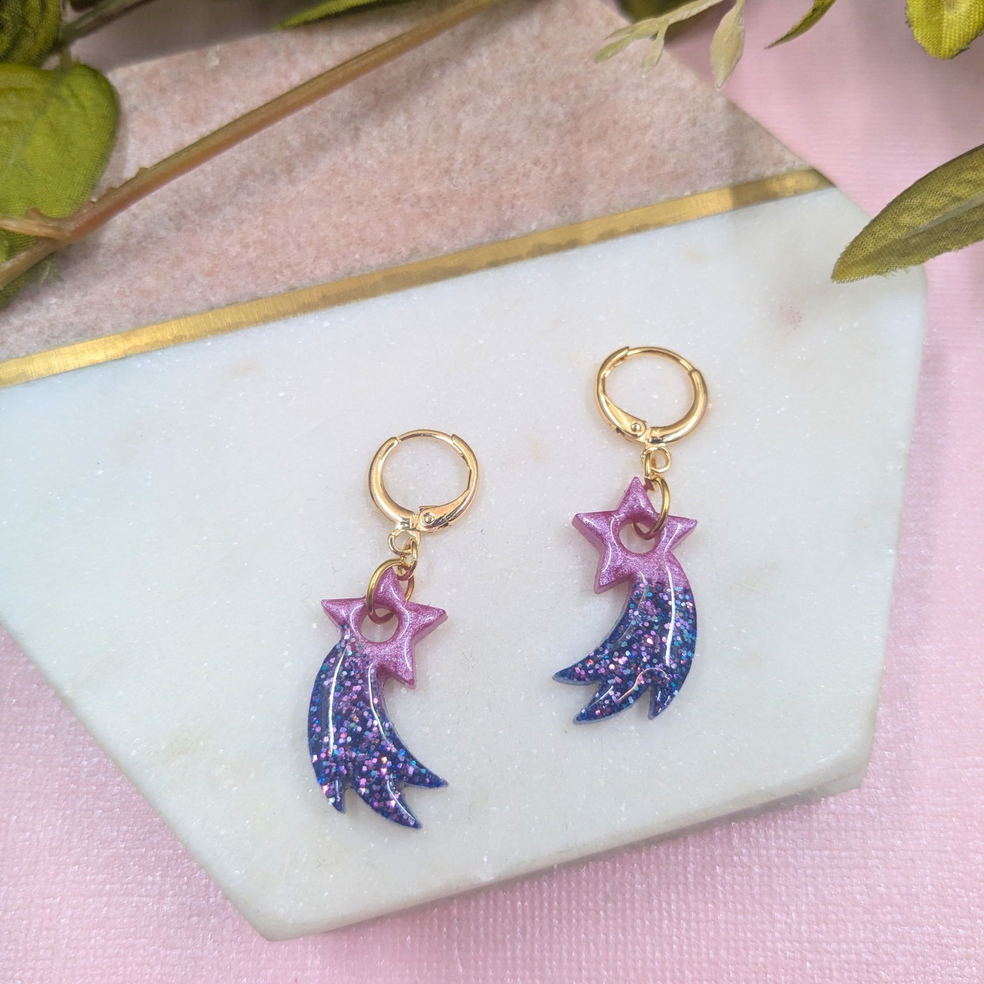 Ooh la la, get ready to add a sprinkle of magic to your ears with our brand new "Estrella" sleepers! These little beauties are handmade with love right here in Yorkshire, featuring a dreamy combo of rich navy glitter and a playful pink shooting star design.