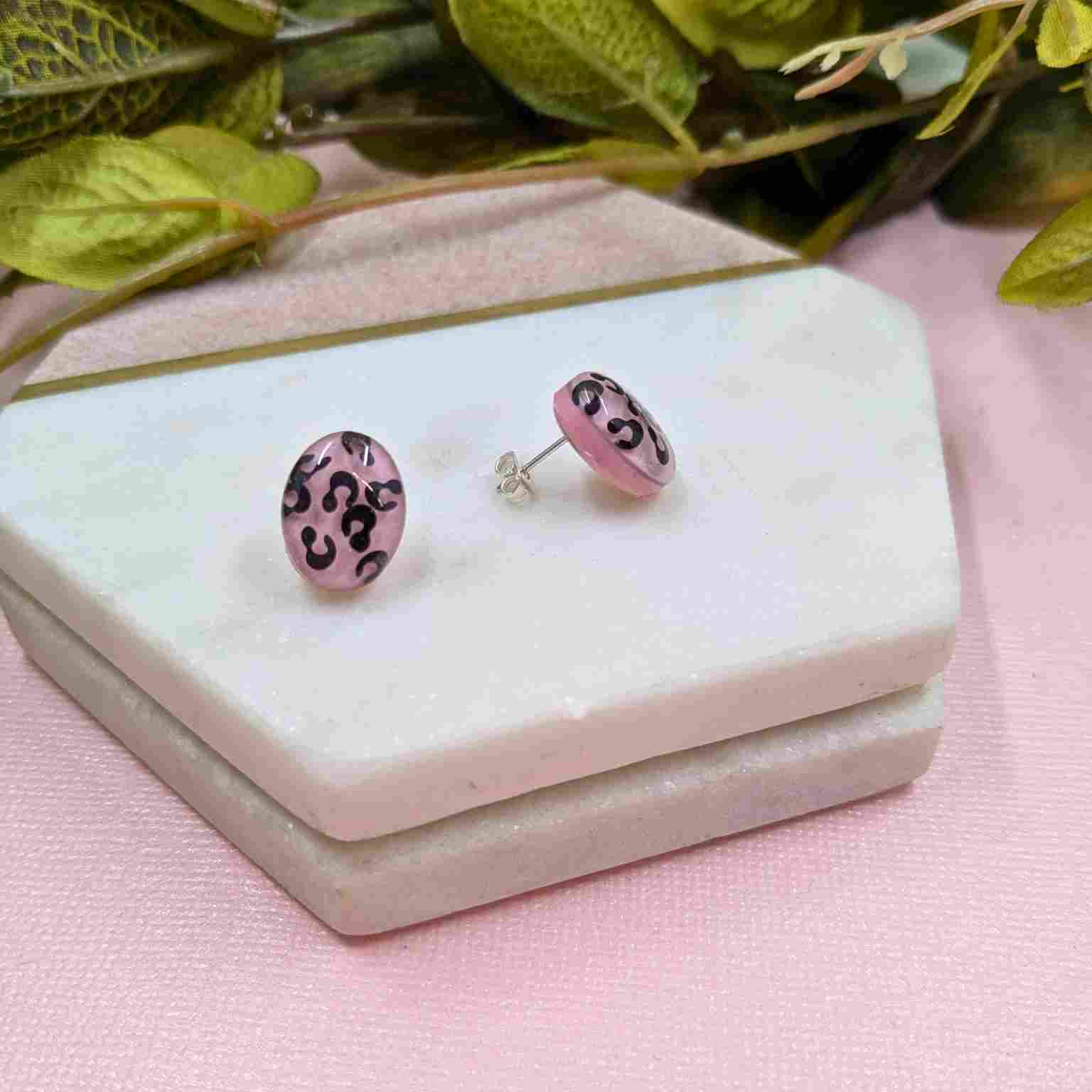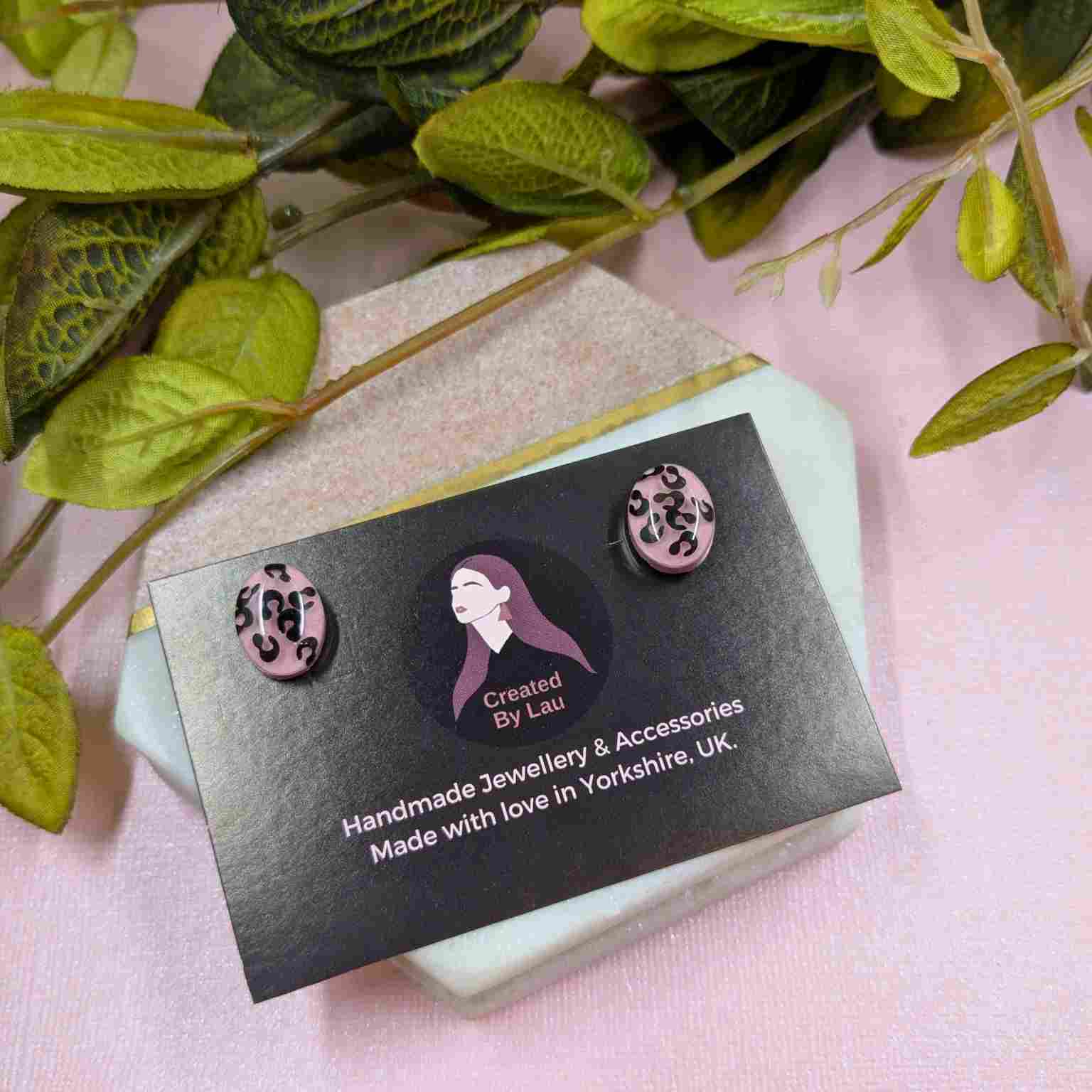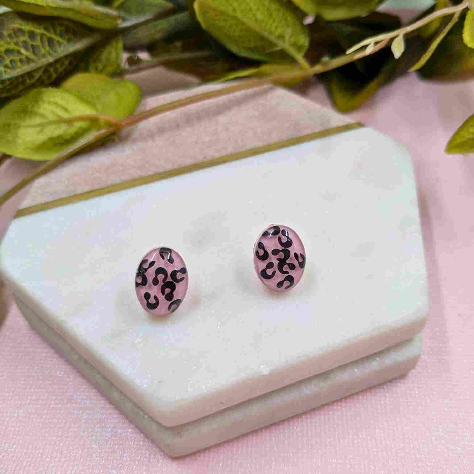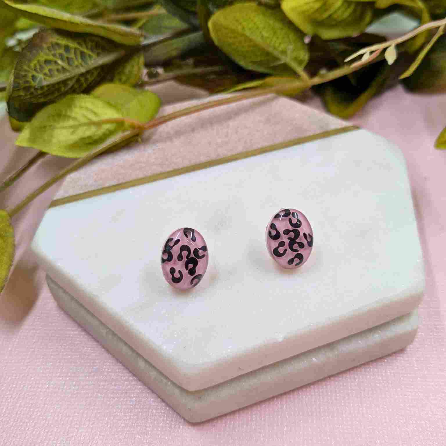 Georgina Animal Print Glitter Pink Oval Stud Earrings - Handmade UK