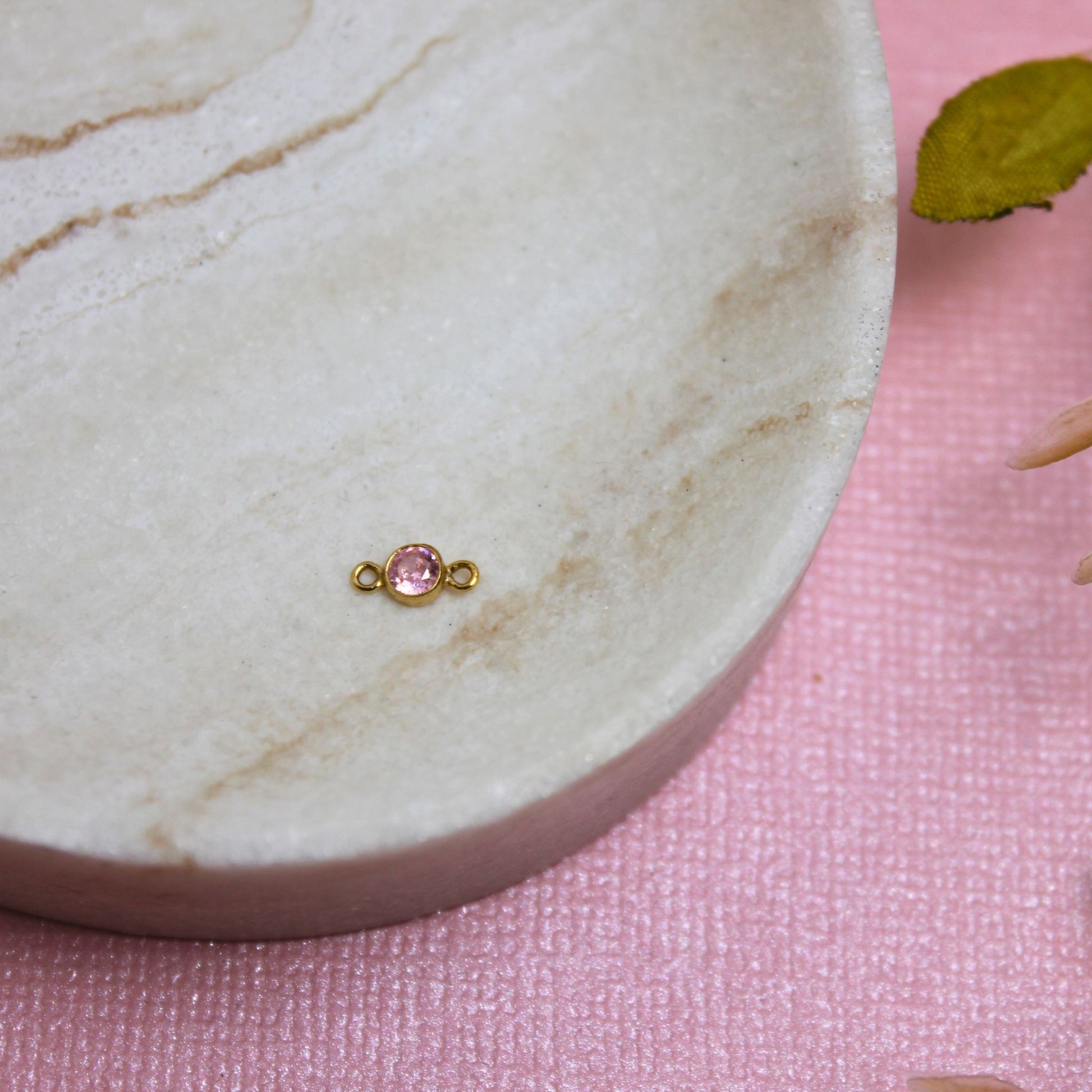 Elevate your jewellery game with our Gold-Filled Pink Crystal Connector Charm. Made with high-quality materials, this charm adds a touch of elegance and charm to any bracelet or necklace. The stunning pink crystal gives off a delicate and luxurious vibe, making it the perfect accessory for any occasion.