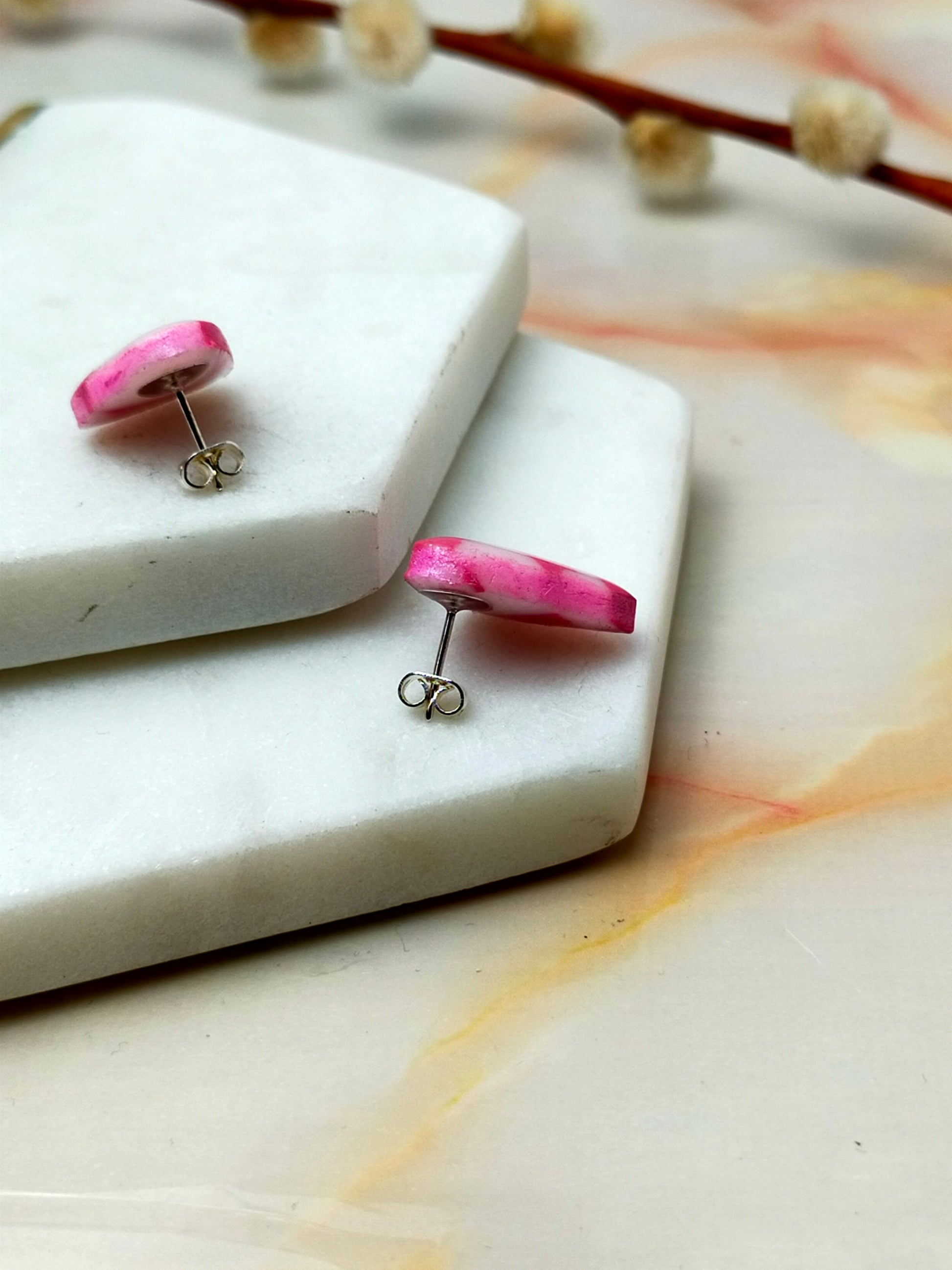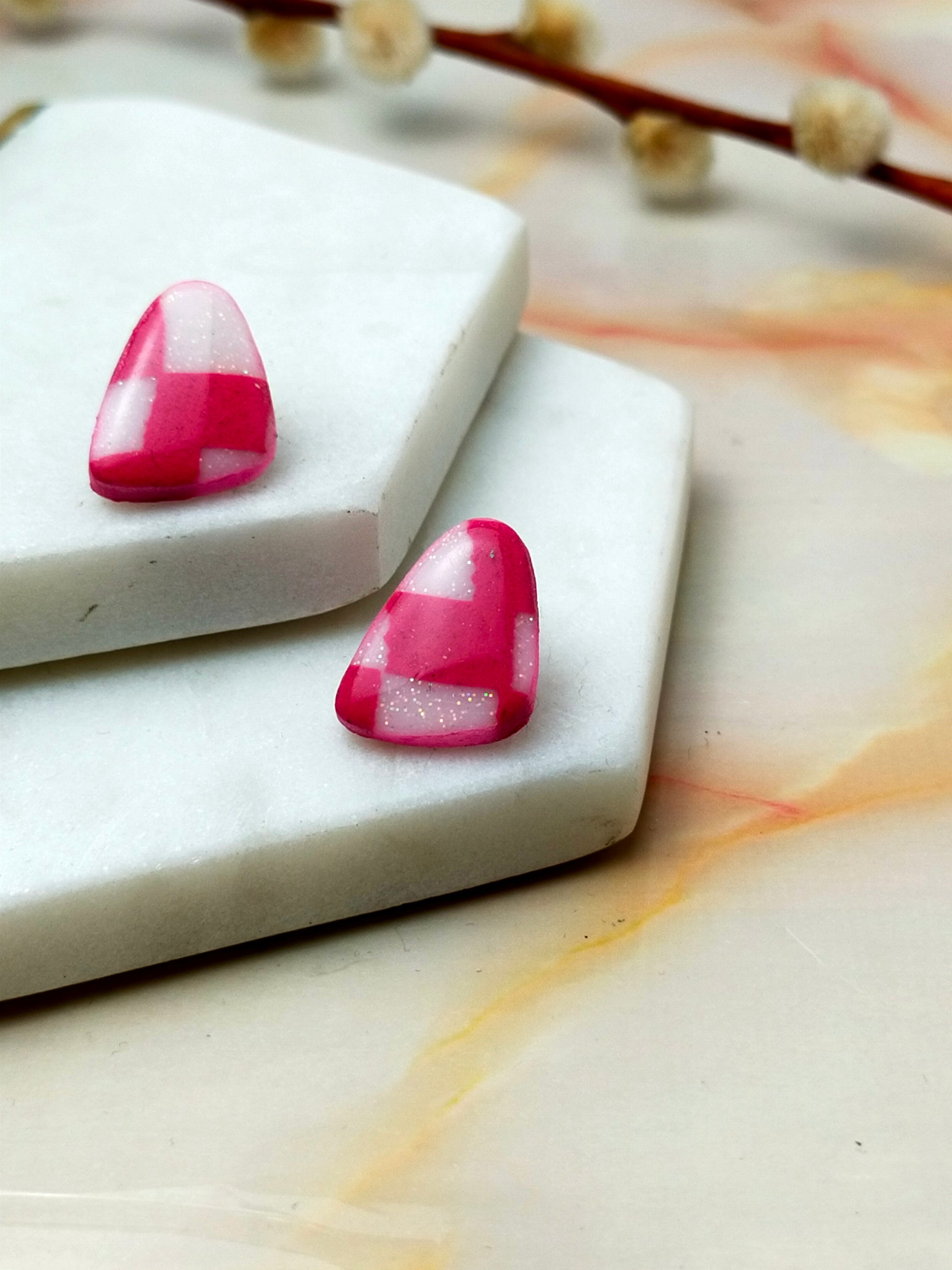 "Helena" Pink & White Checkerboard Abstract Stud Earrings