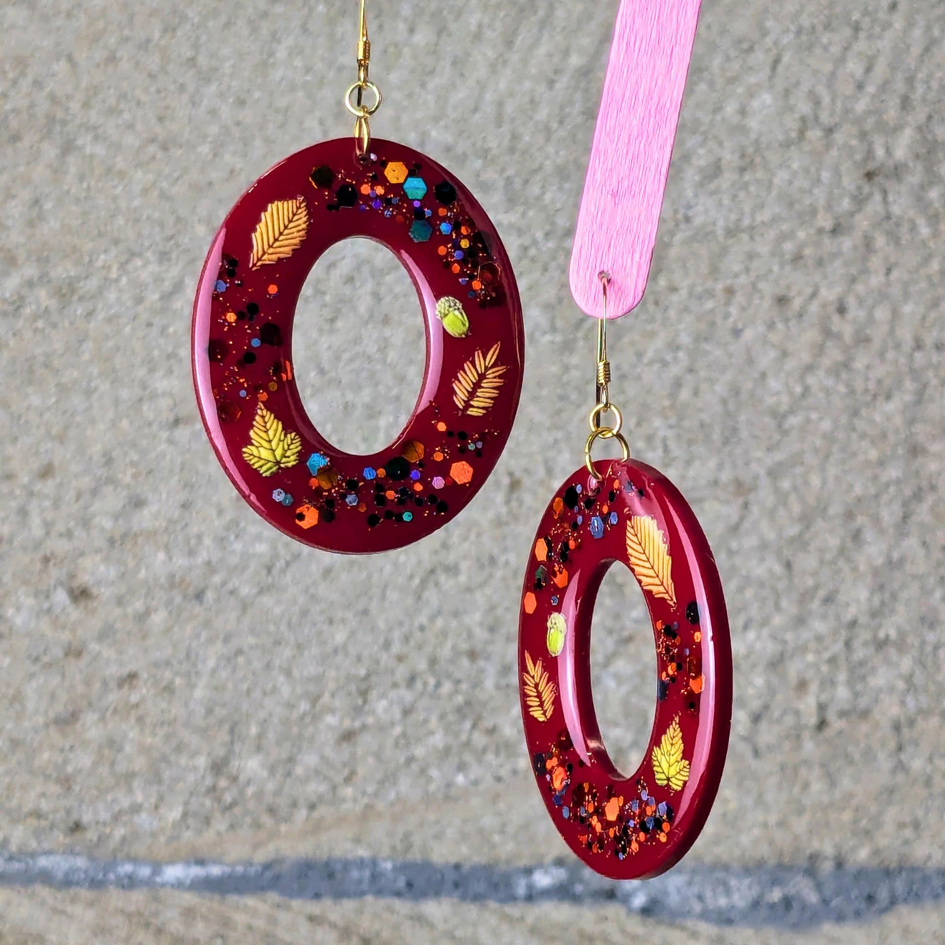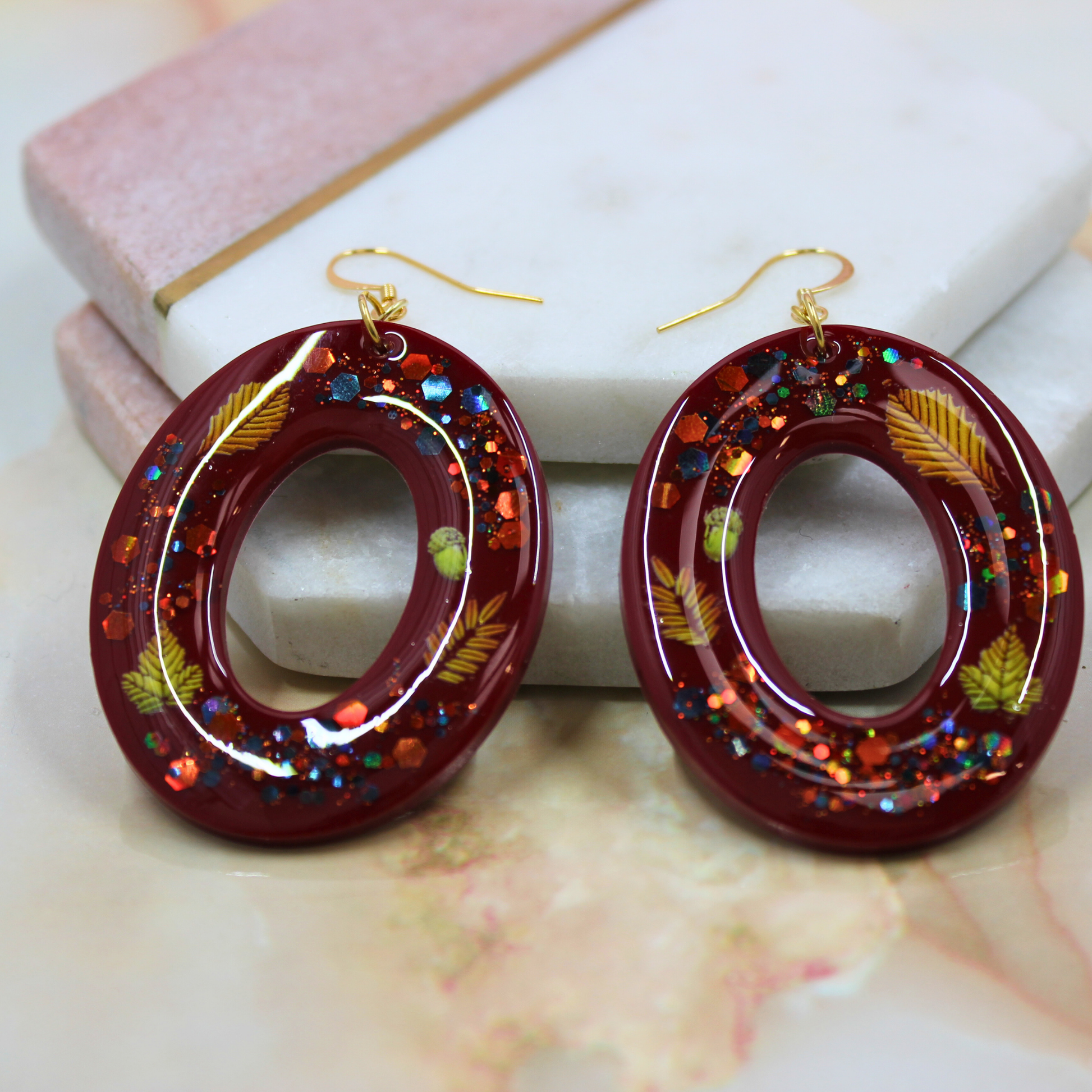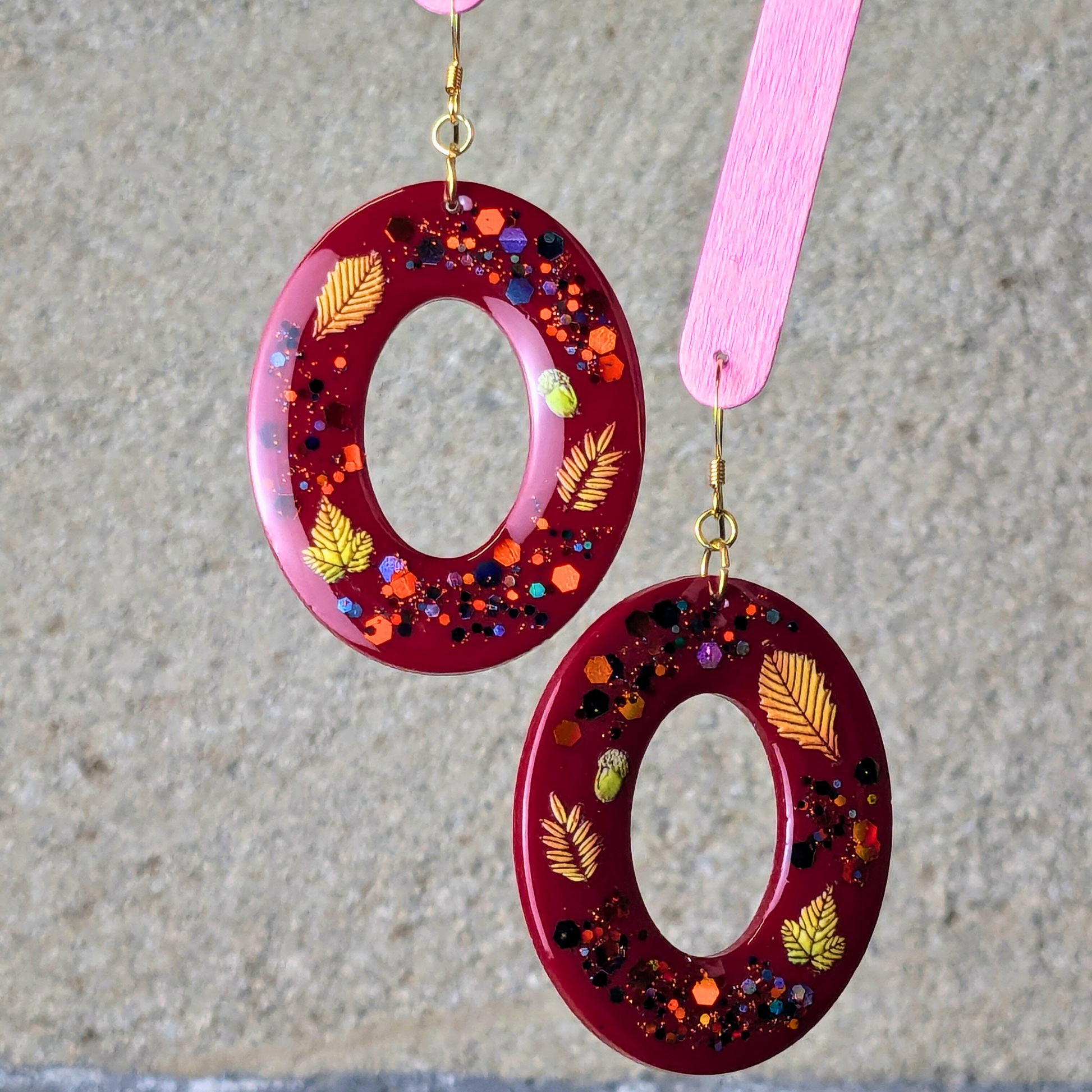 "Jorah" Autumn Leaves Mulberry Wine Dangle Resin Earrings