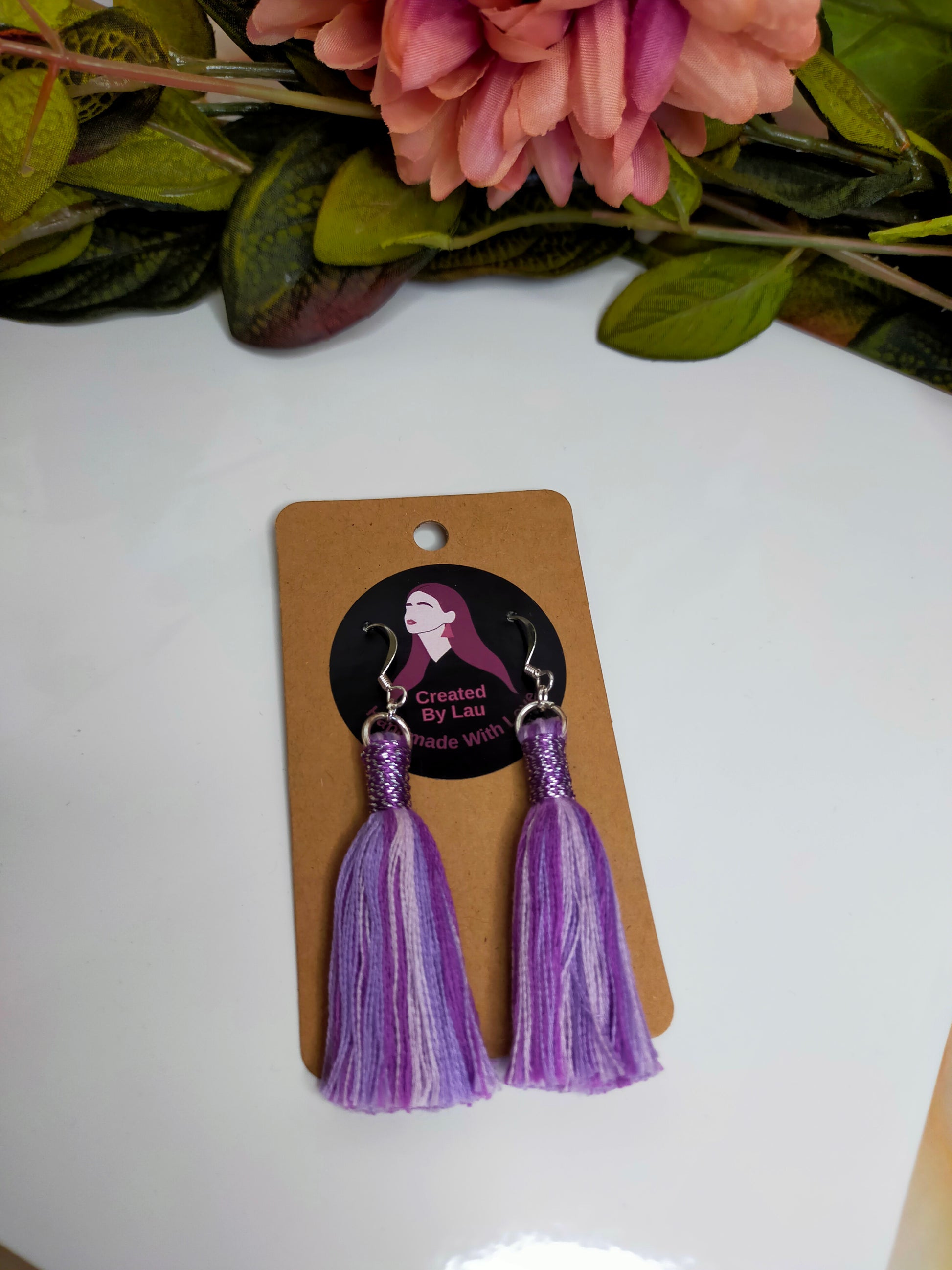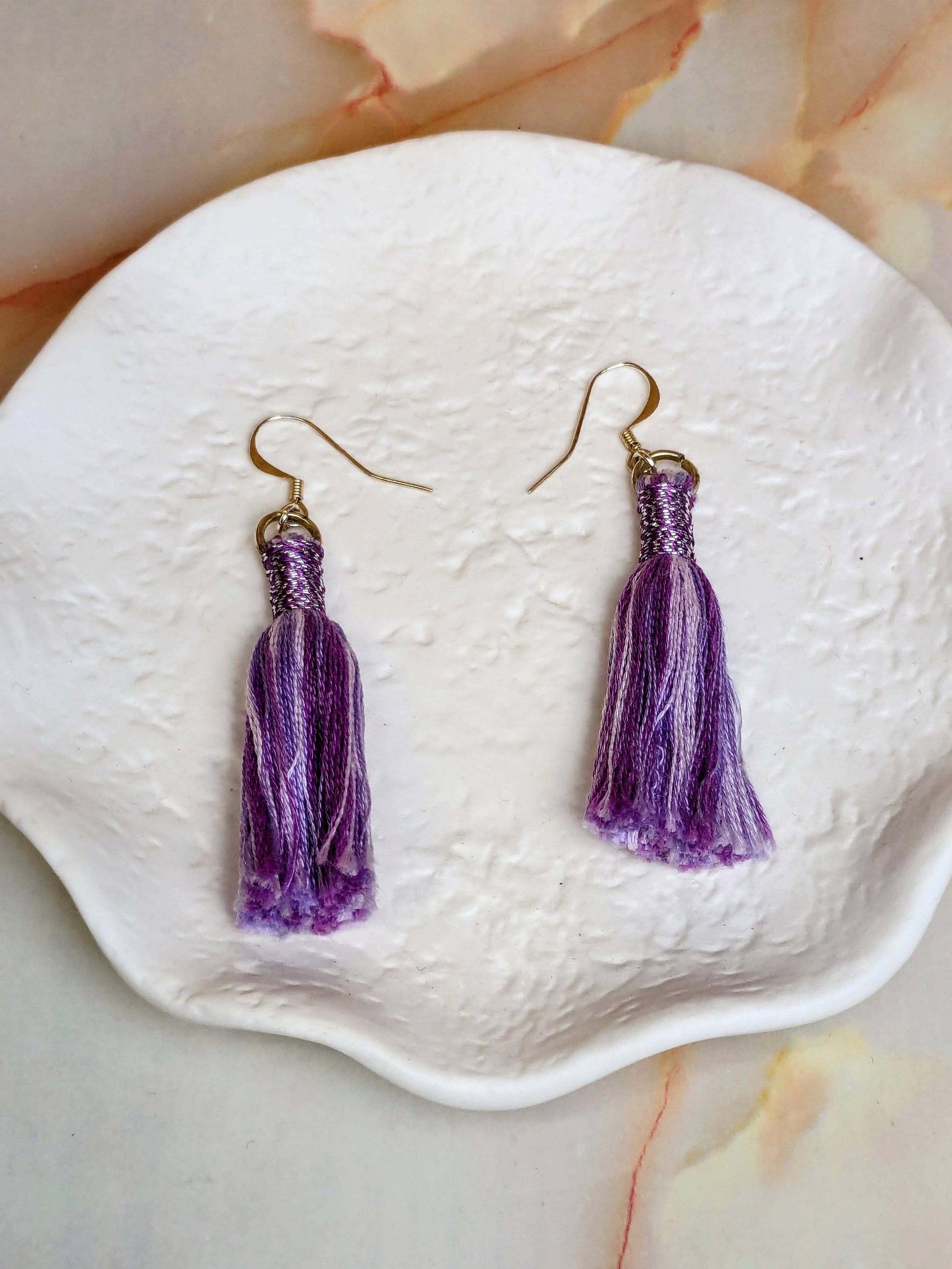 "Kaylee Mini" Purple Tassel Earrings with Metallic Wrap