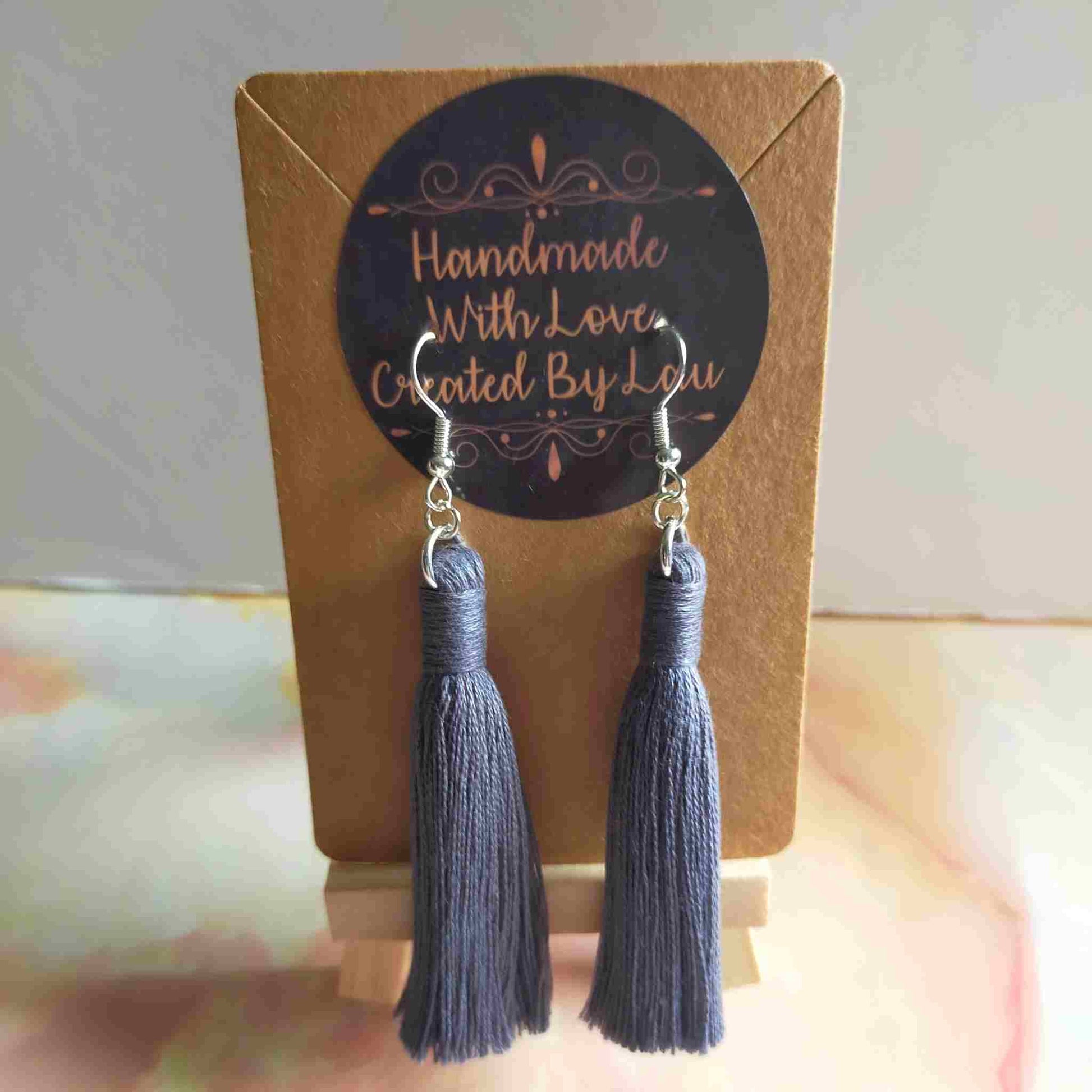 The "Lia" earrings, entirely handmade from 100% cotton thread, add a unique accent to any ensemble. Colourful tassels are self-wrapped and feature a silver earring hook that is lightweight and comfortable to wear.