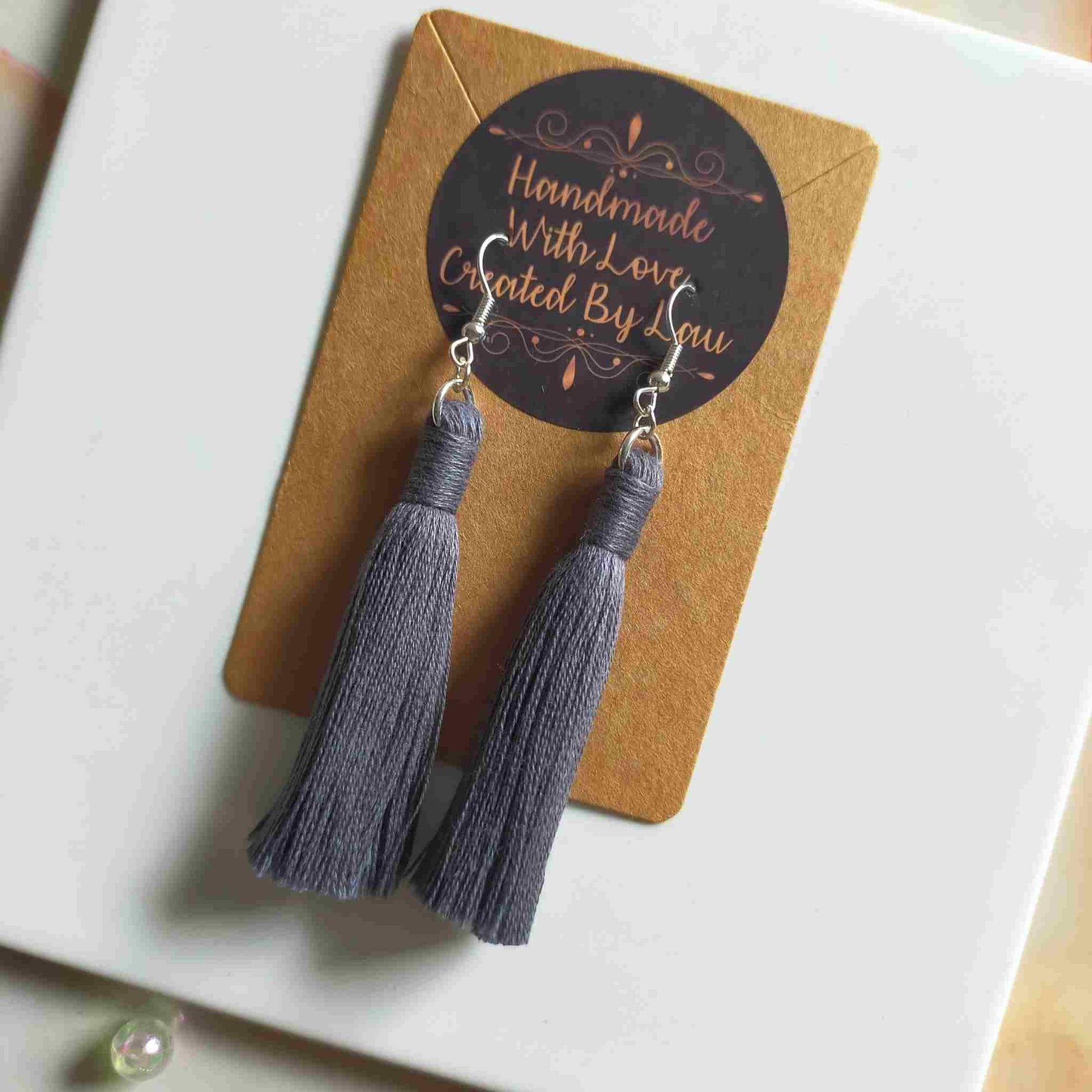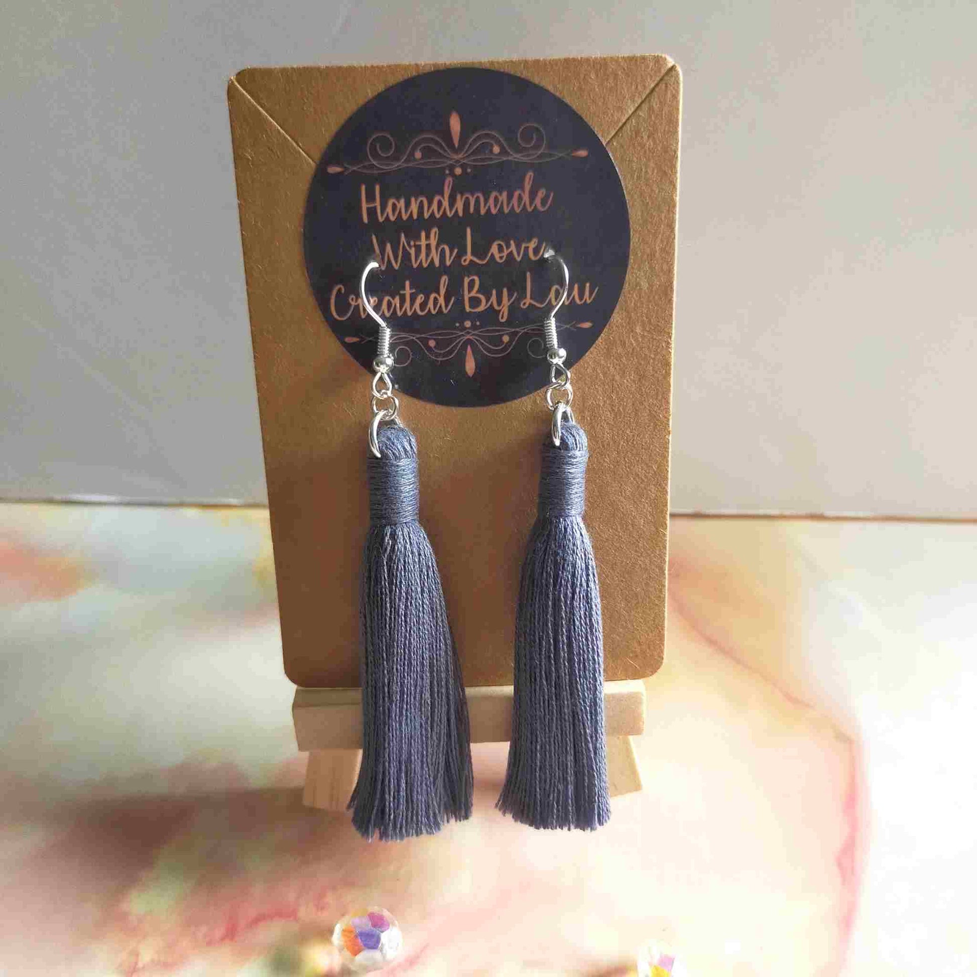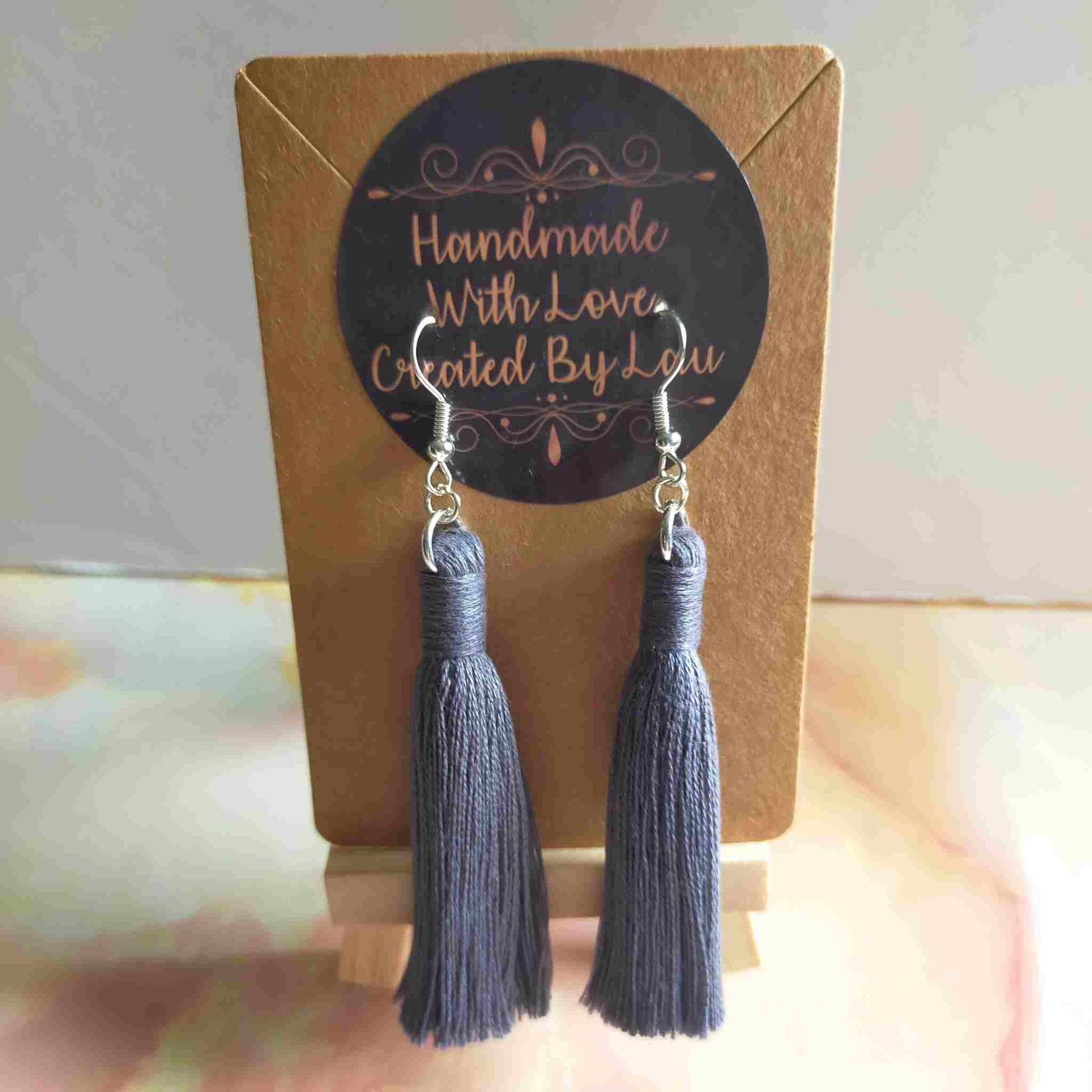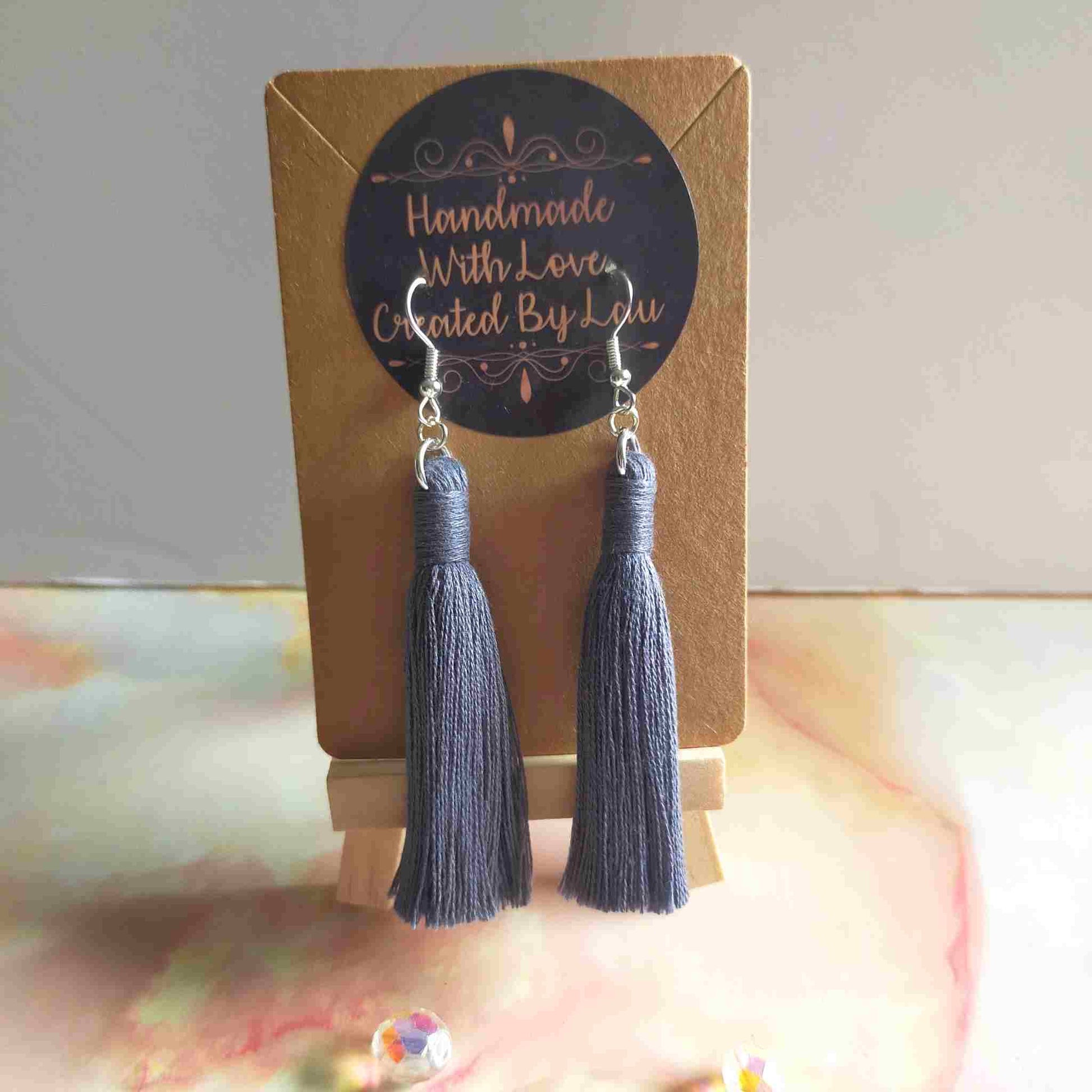 "Lia" Grey Silver Plated Cotton Macramé Tassel Earrings