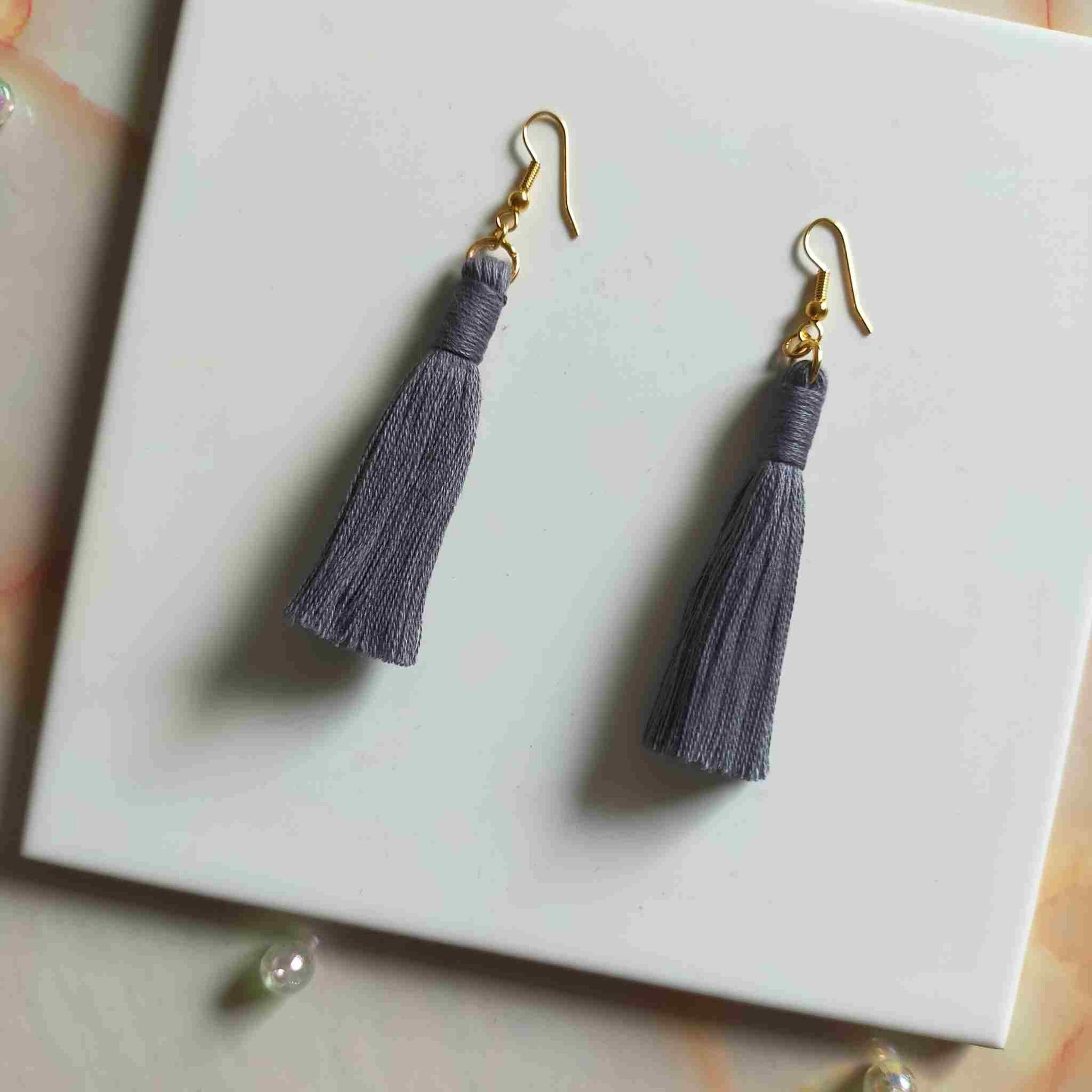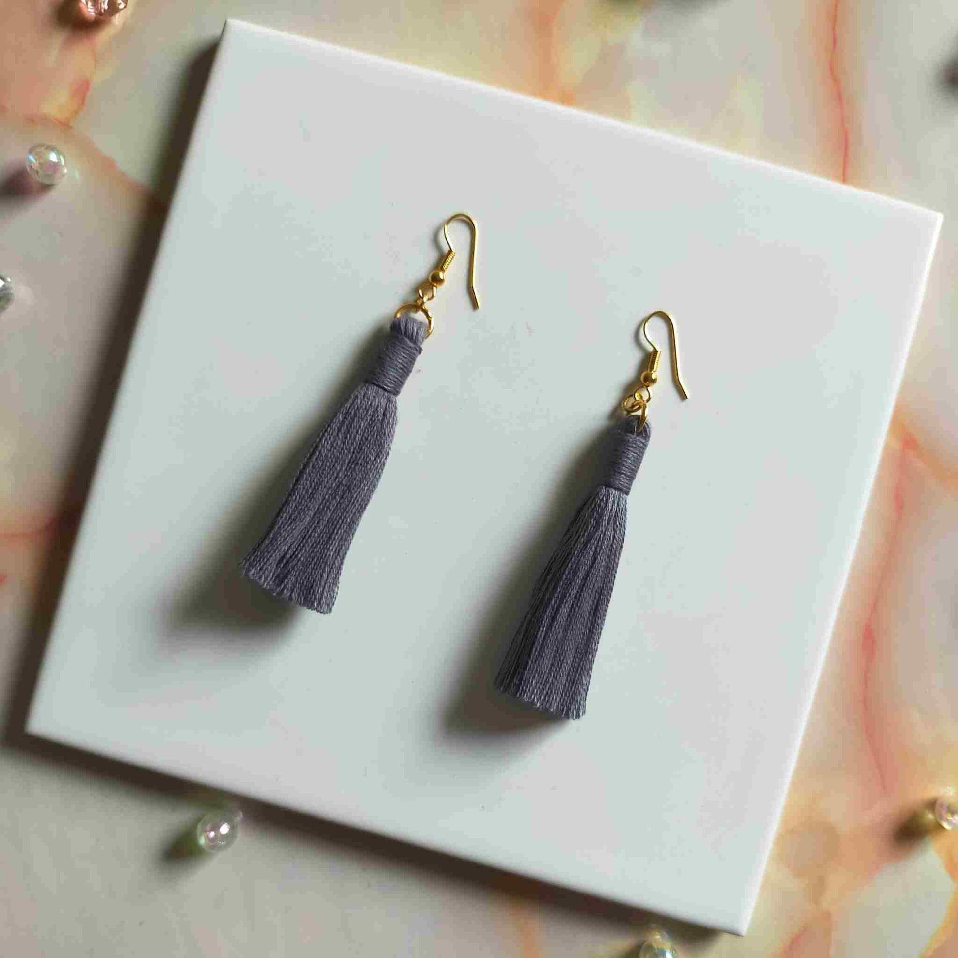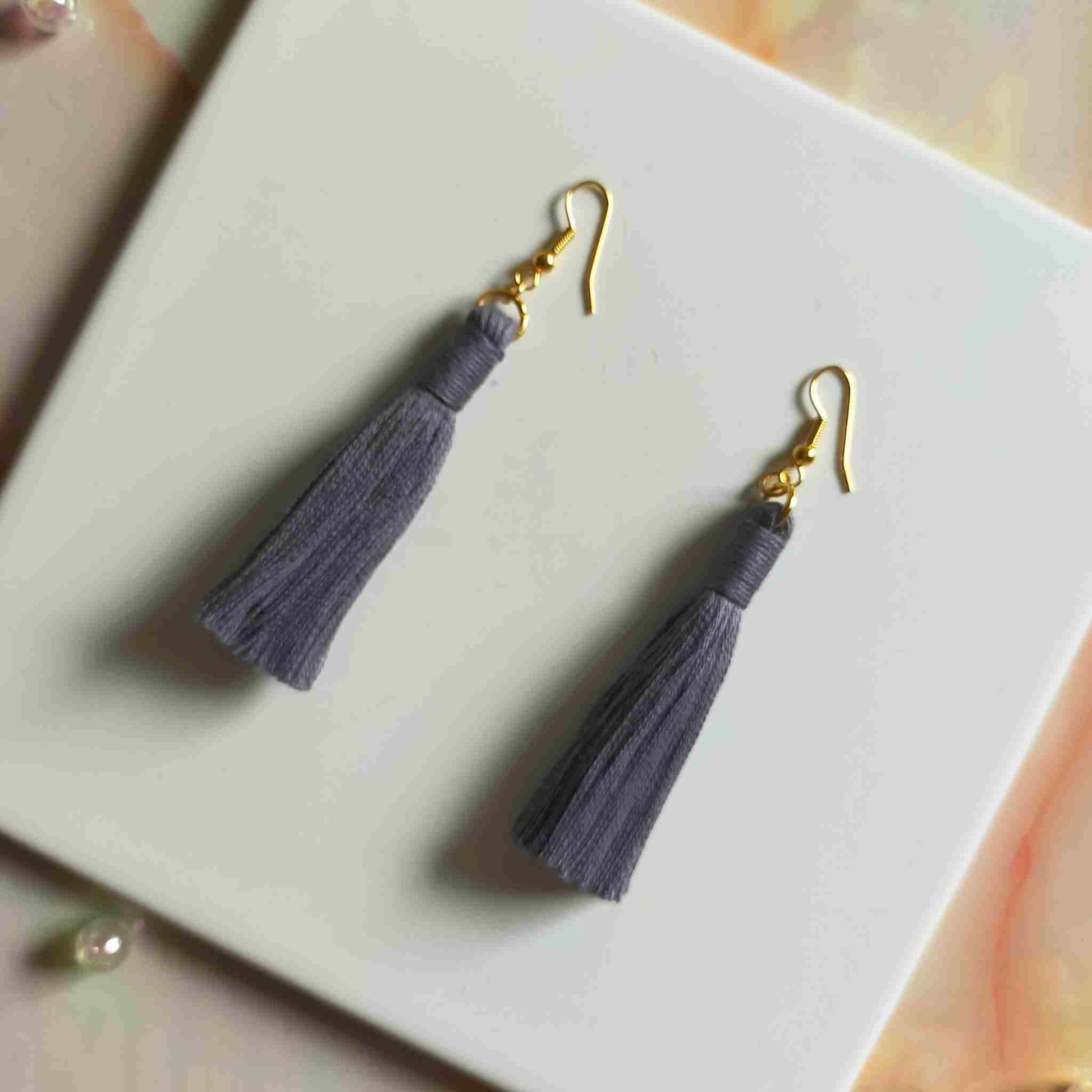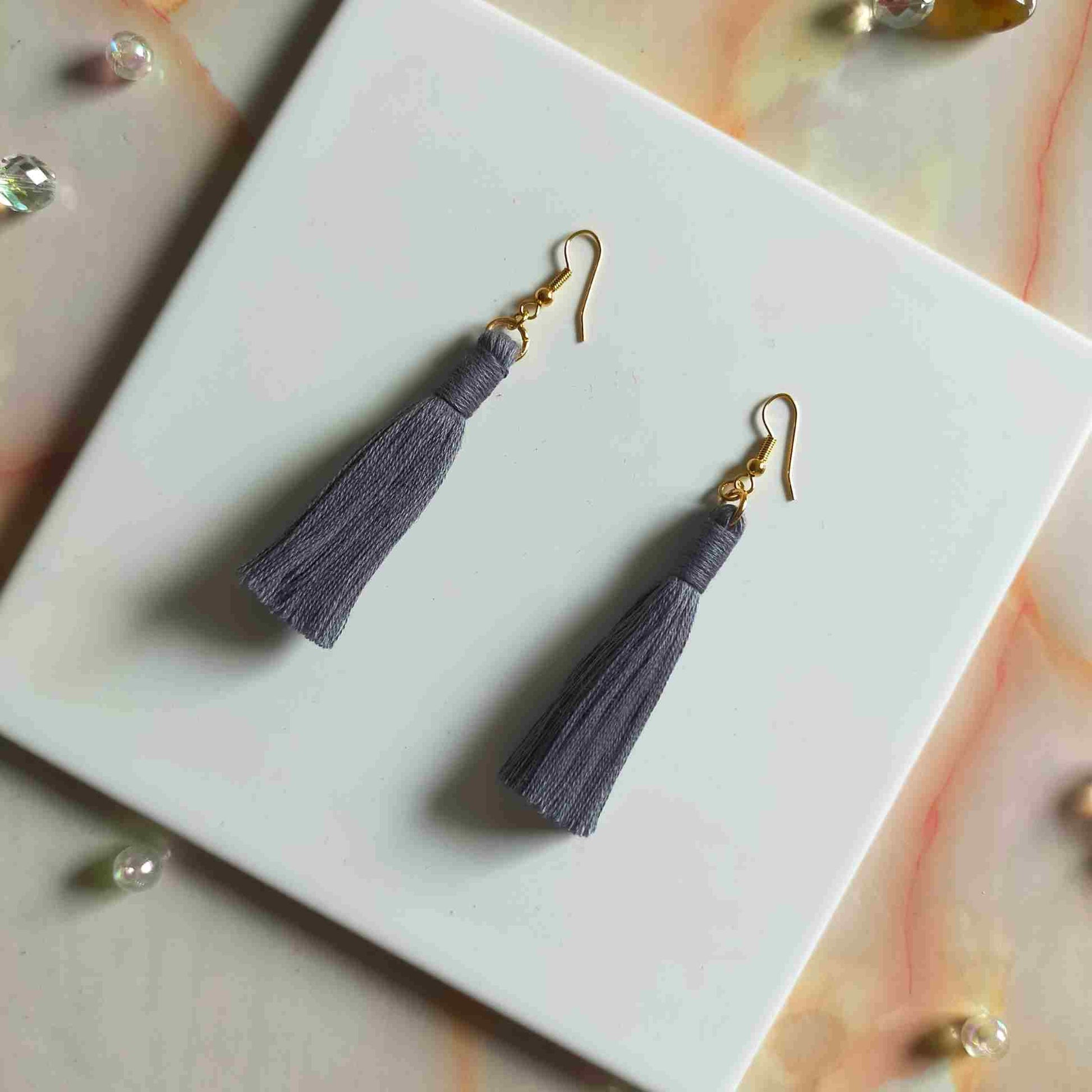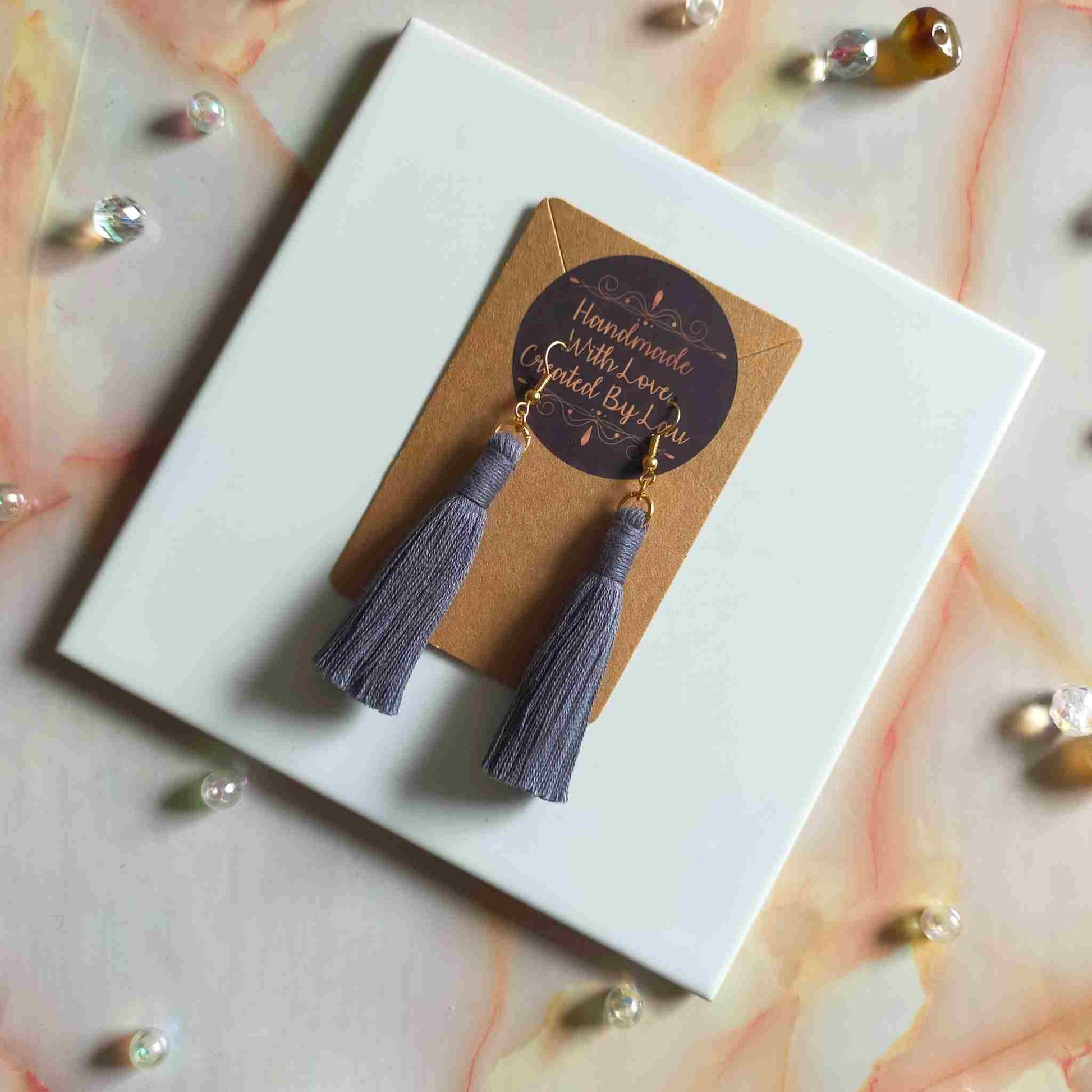 "Lia" Grey Gold Plated Cotton Macramé Tassel Earrings