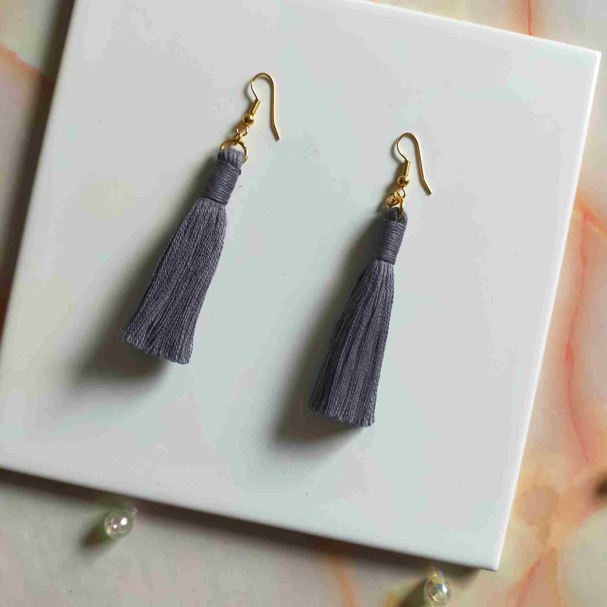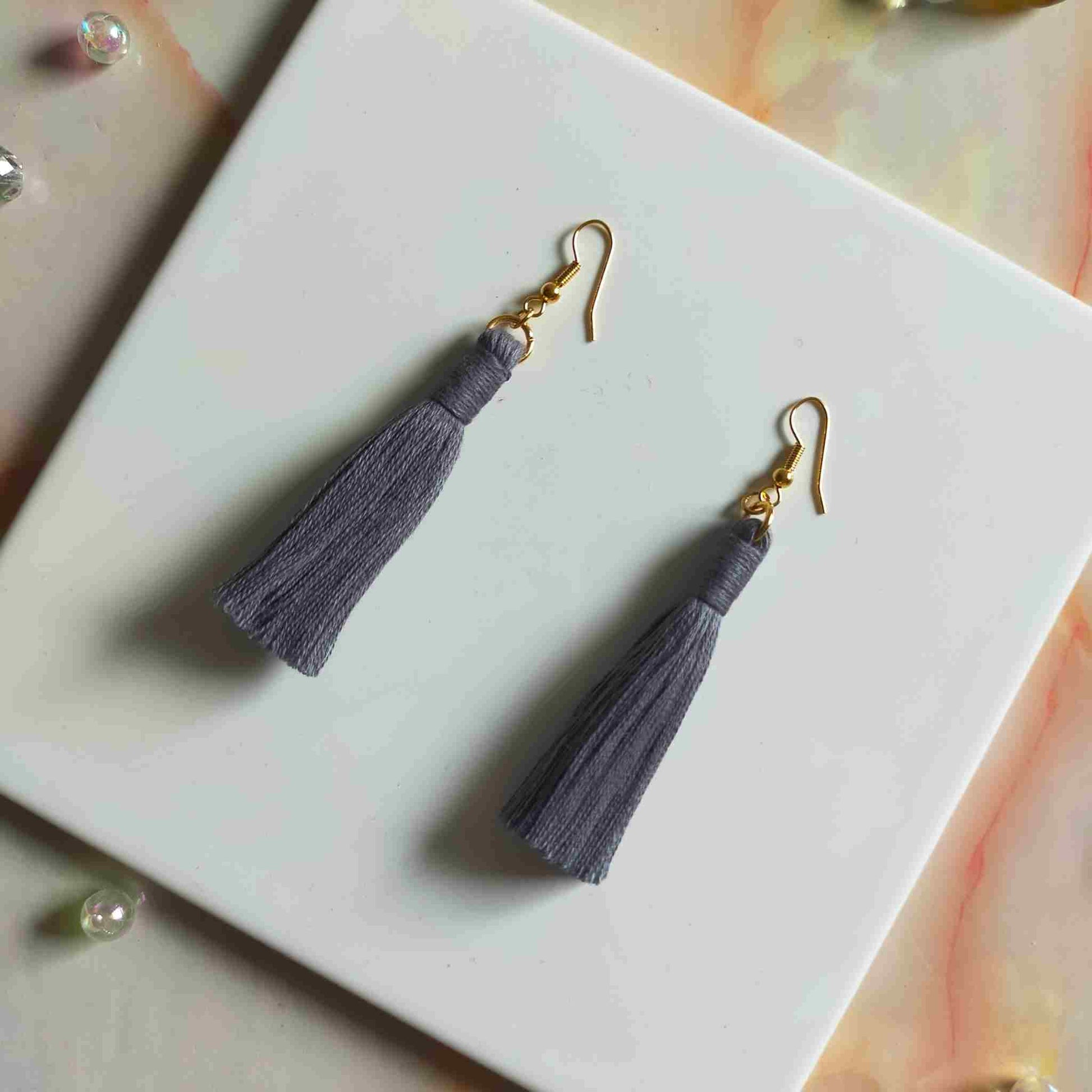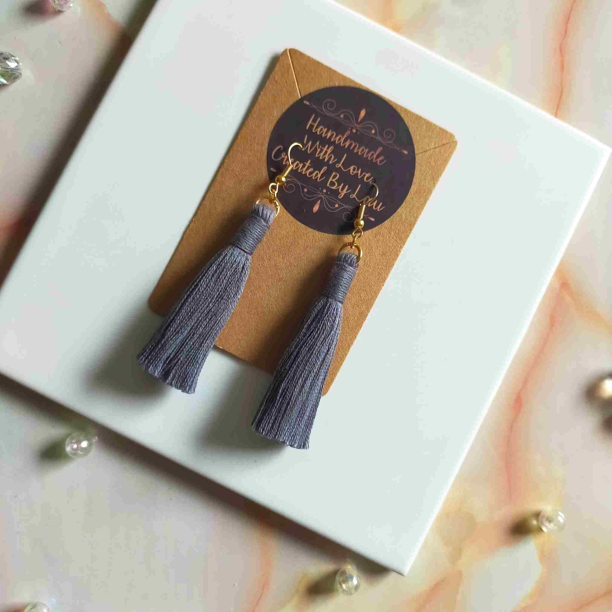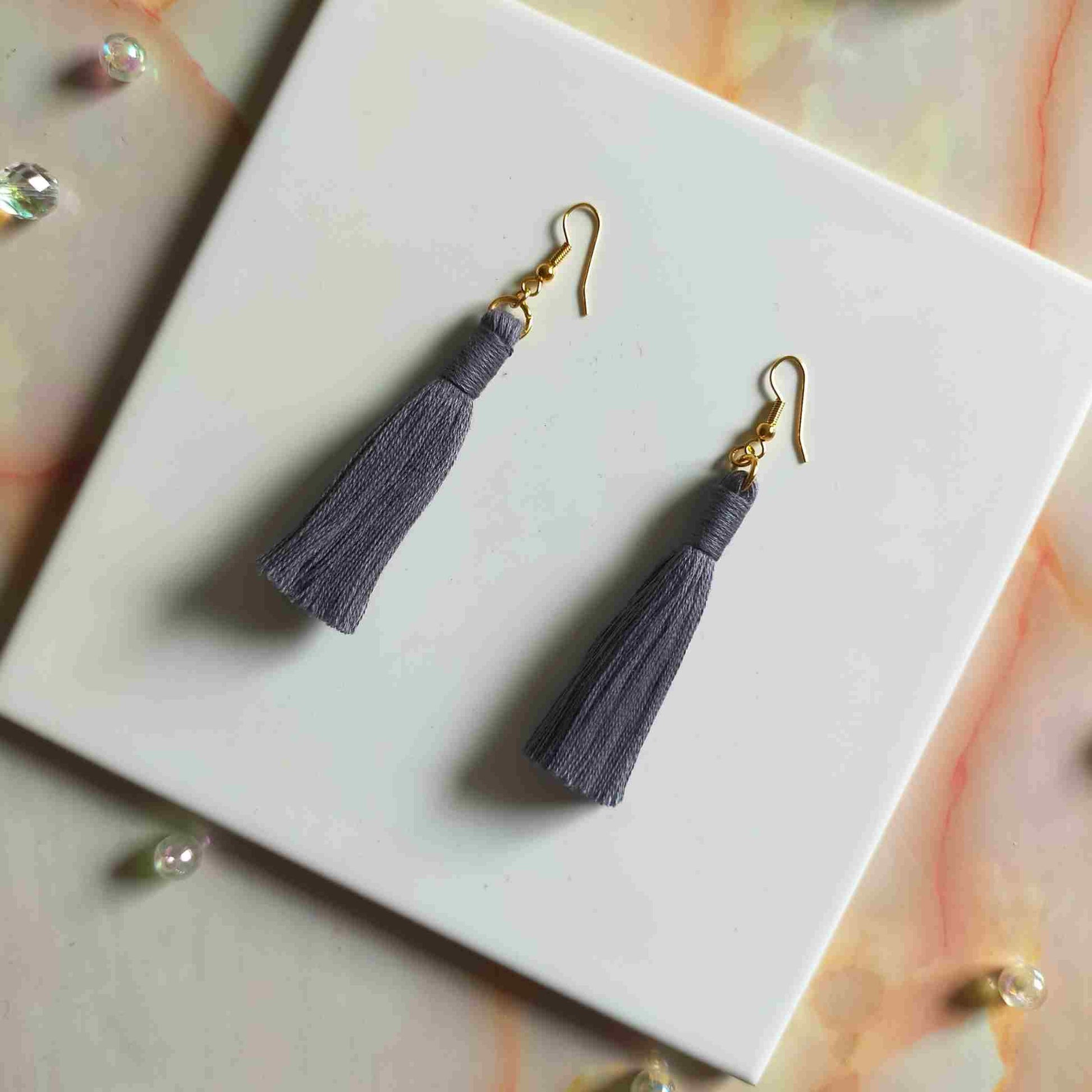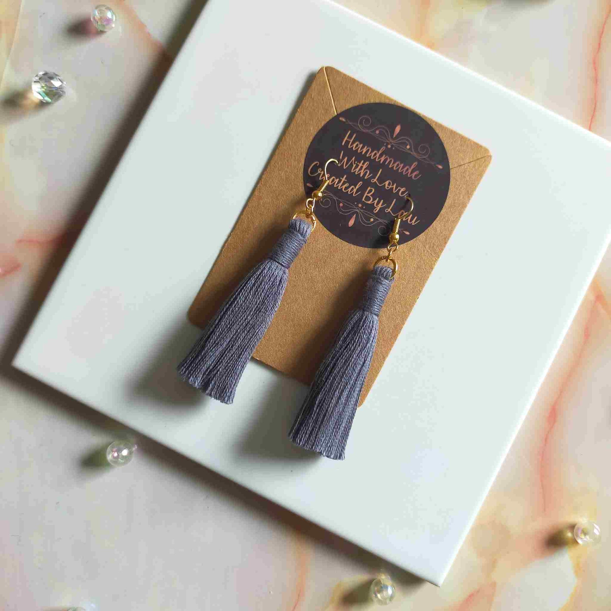 "Lia" Grey Gold Plated Cotton Macramé Tassel Earrings