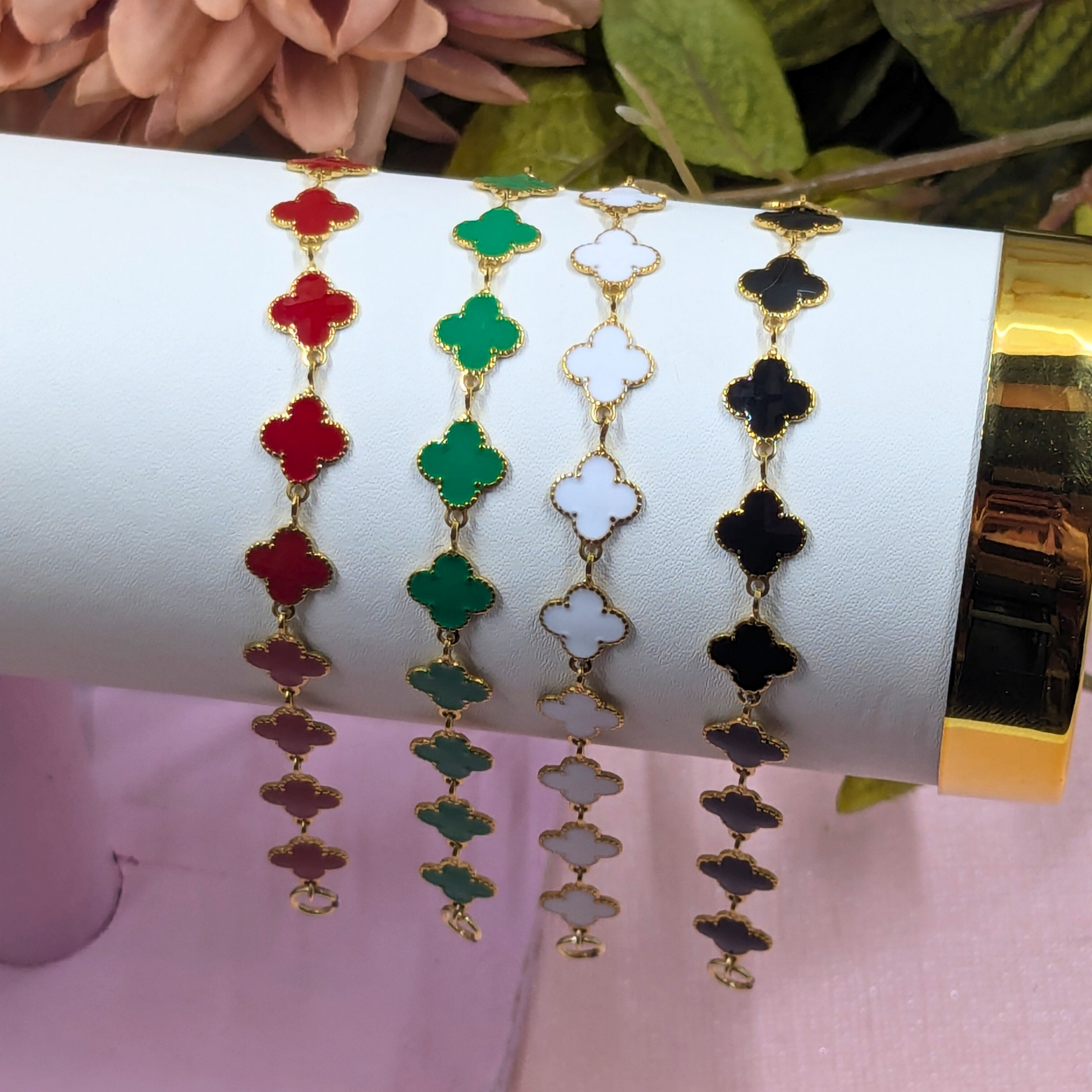 Why you'll adore the "Lyon" Gold Red Clover Bracelet: