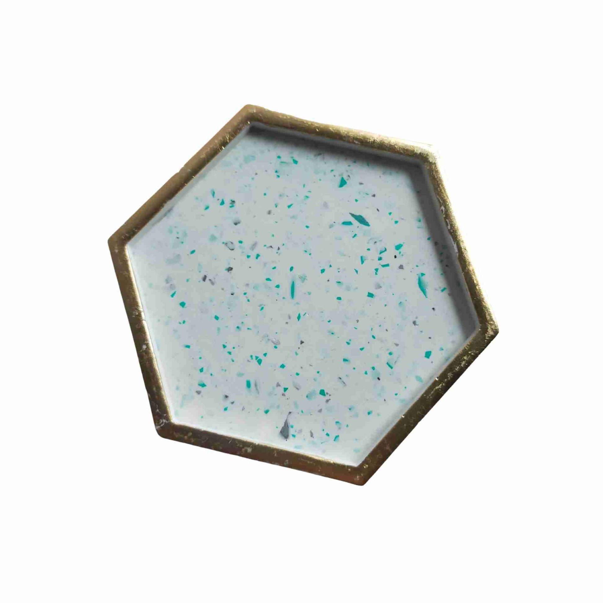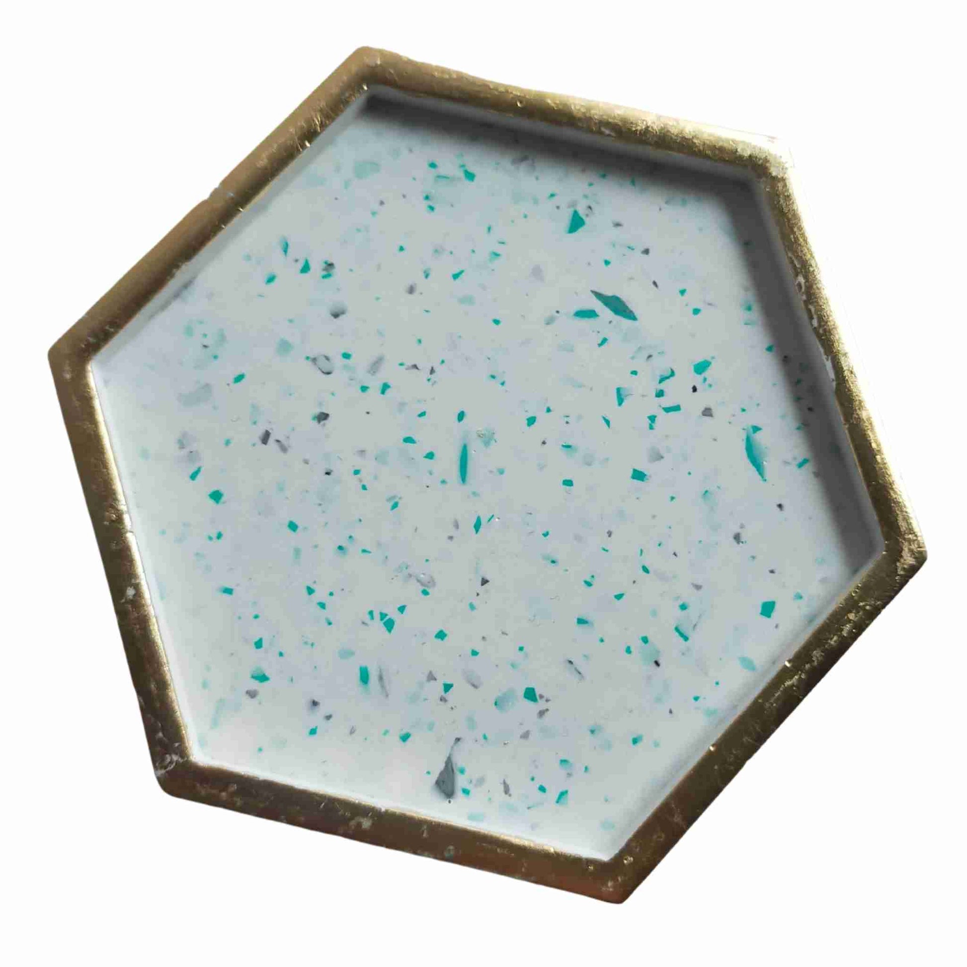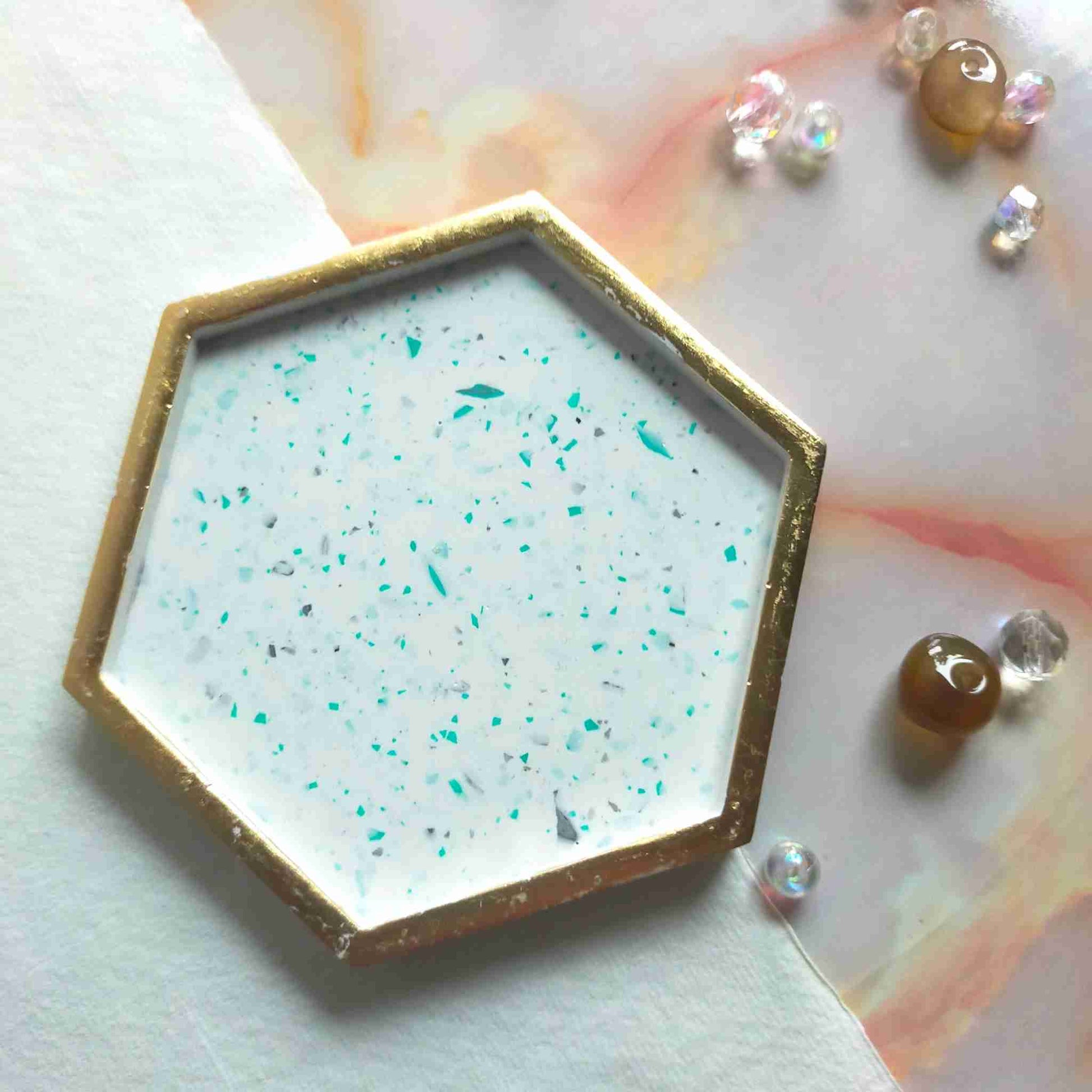 "Flint" Terrazzo & Gold Leaf Hexagon Jewellery Trinket Tray