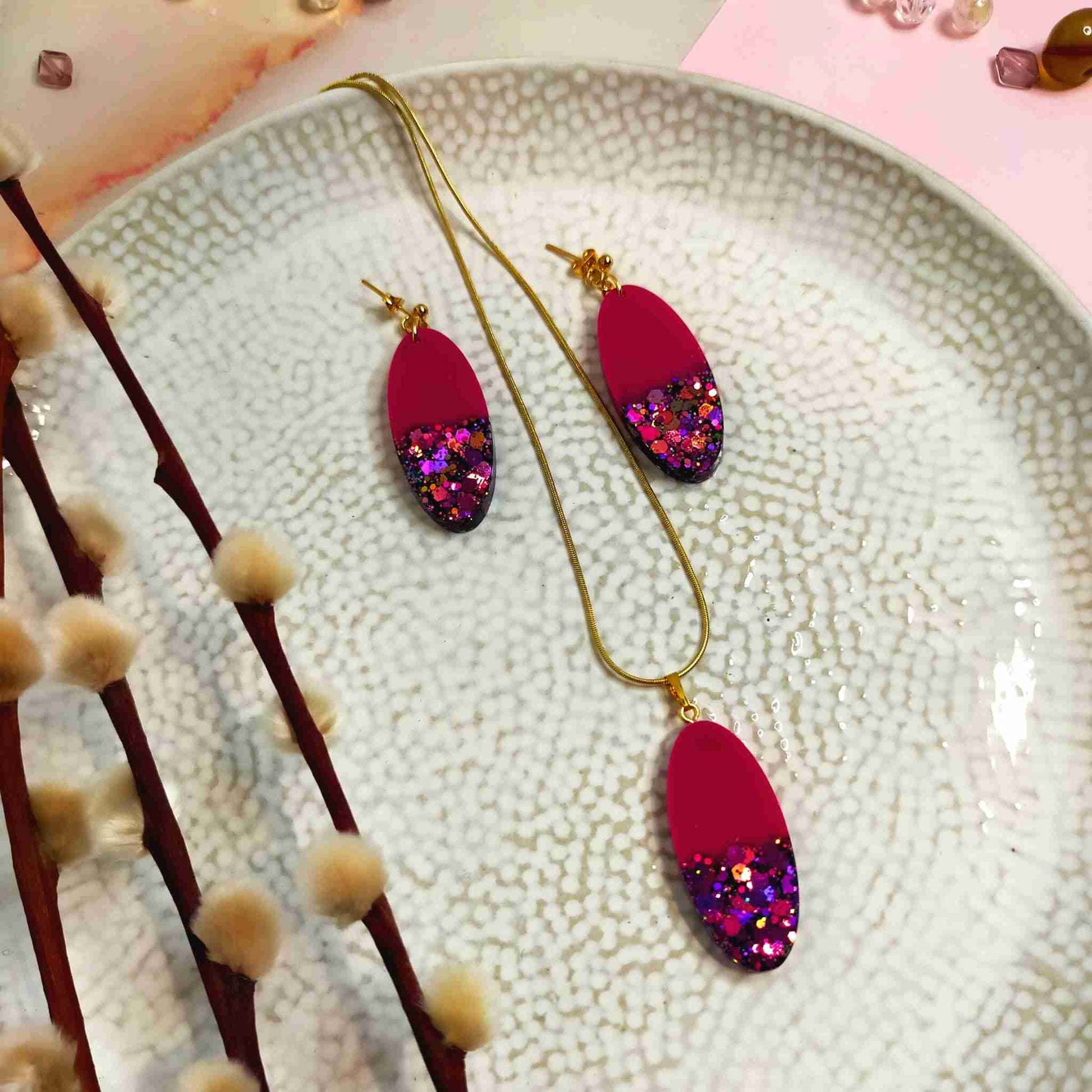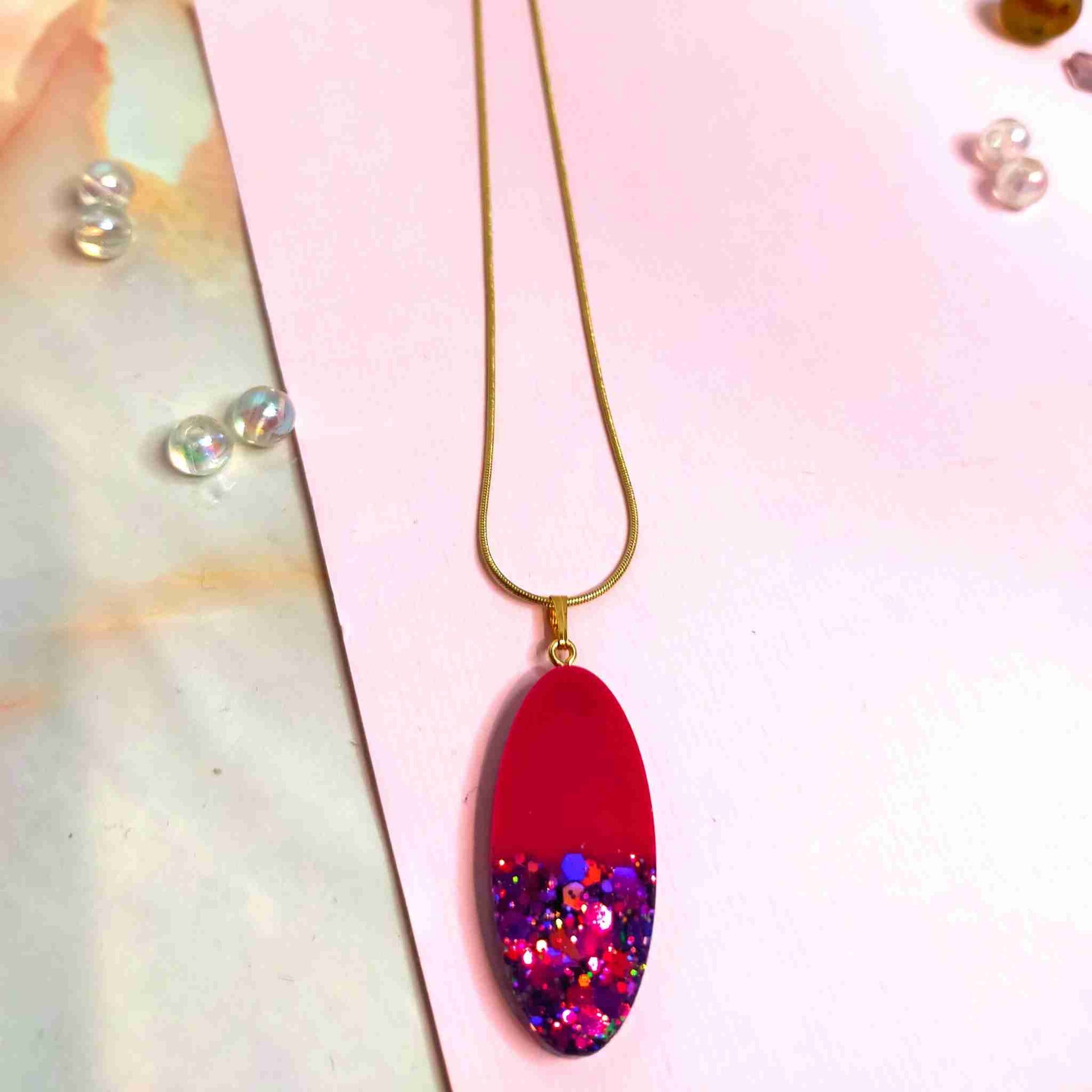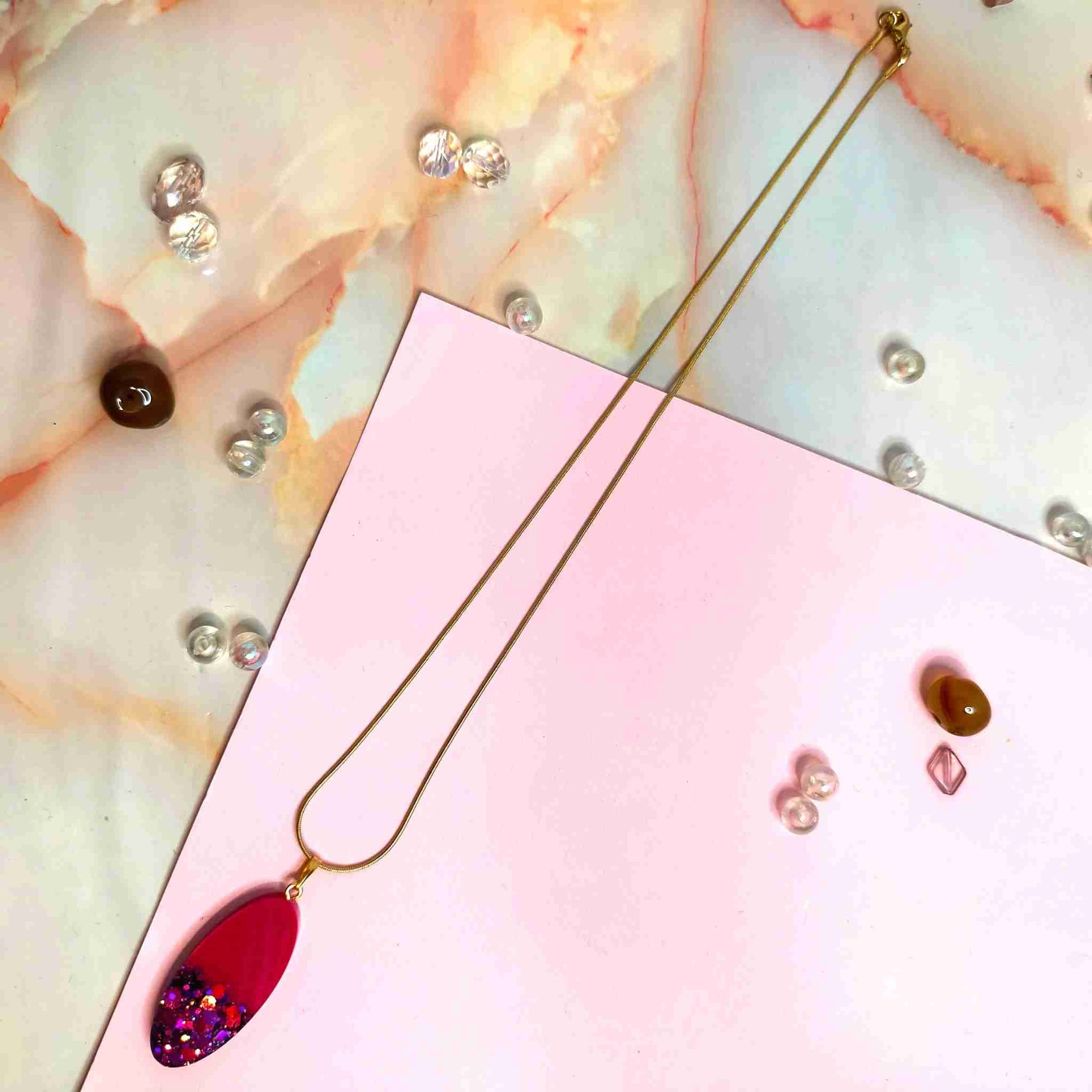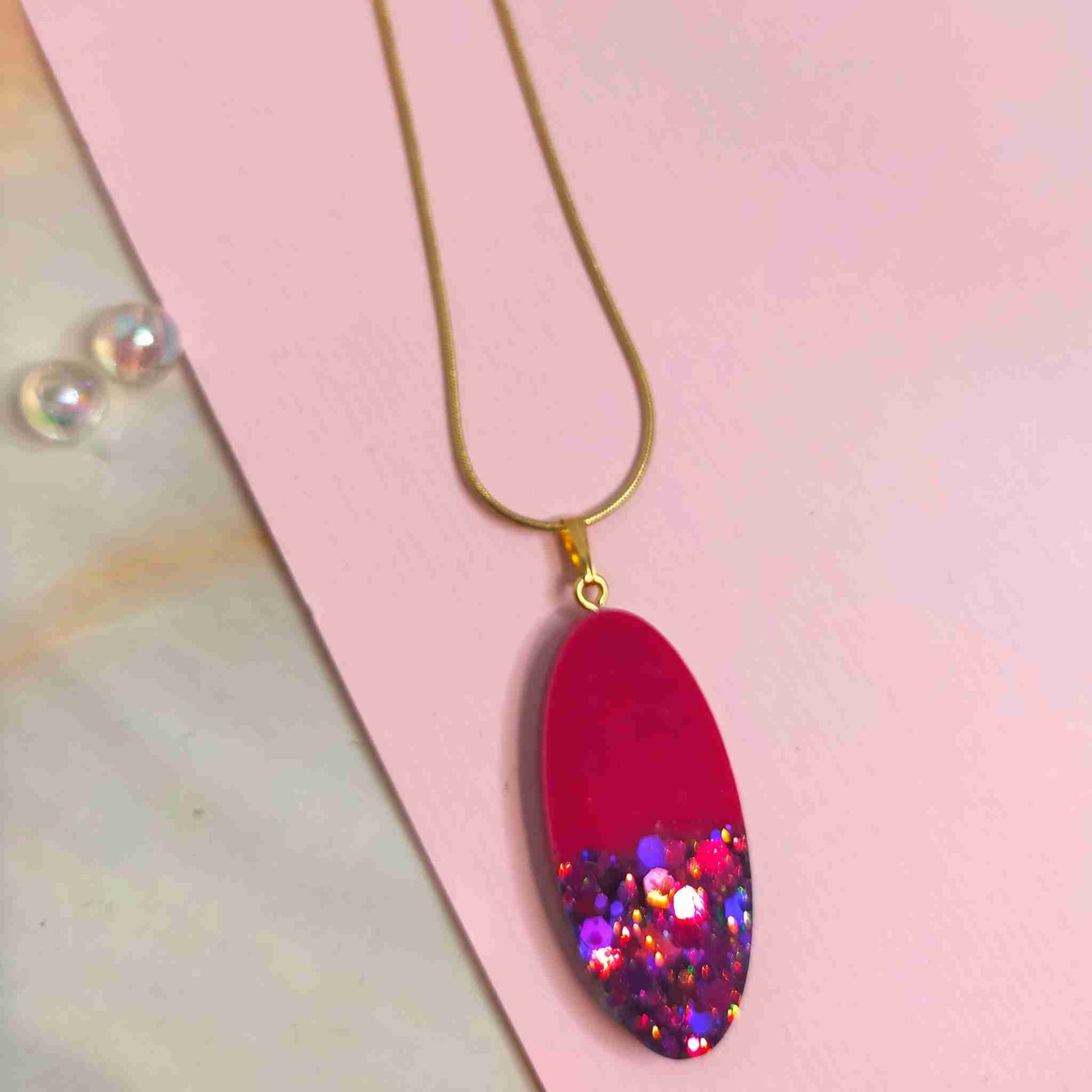 This one-of-a-kind pink glitter resin necklace is made with love in Yorkshire. It looks great as a stand-alone statement piece or as an extra pop of colour for your outfits and makes the perfect addition to any outfit.