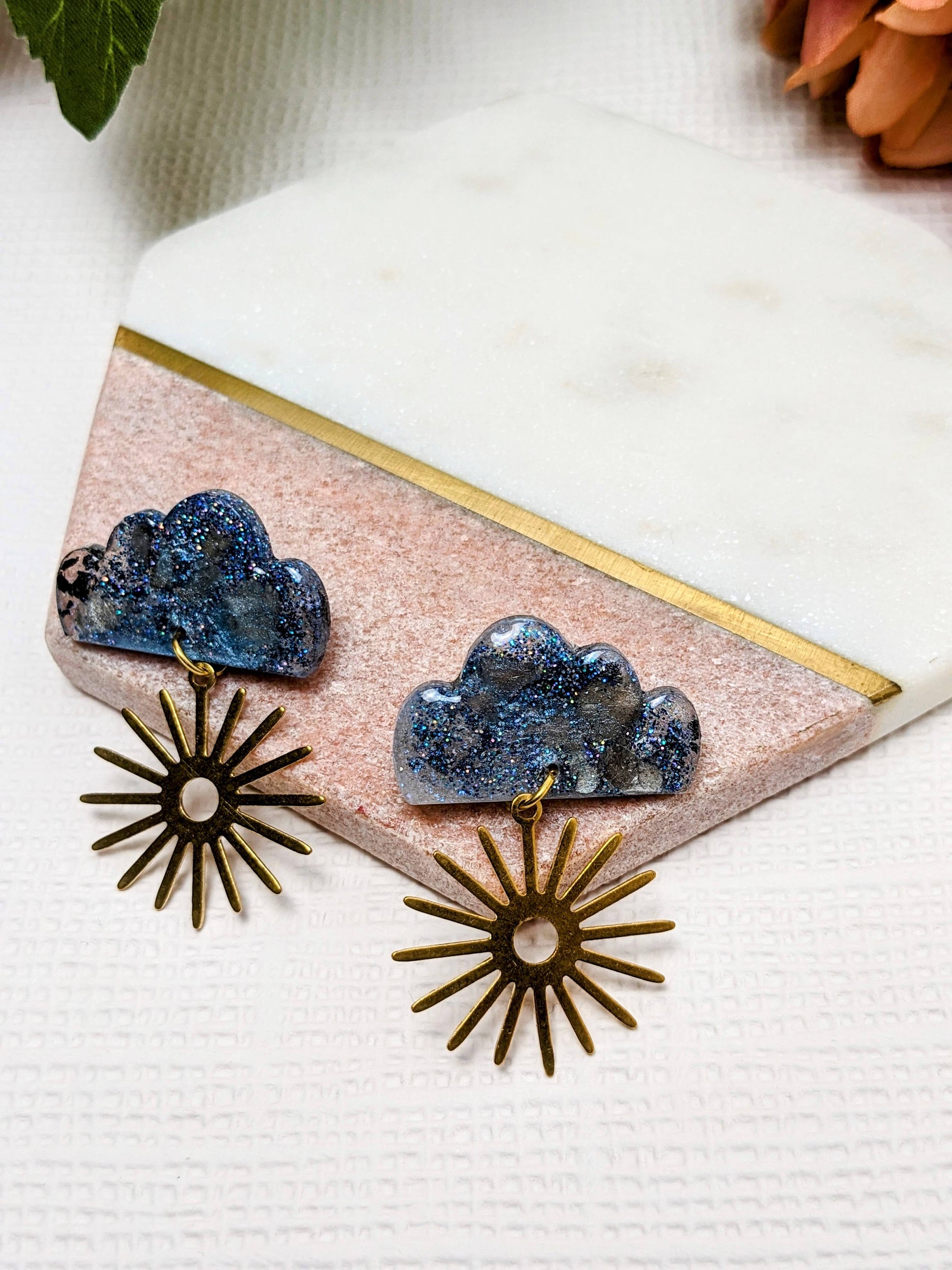 "Megha" Moon Stud Earrings with Sun Brass Charm