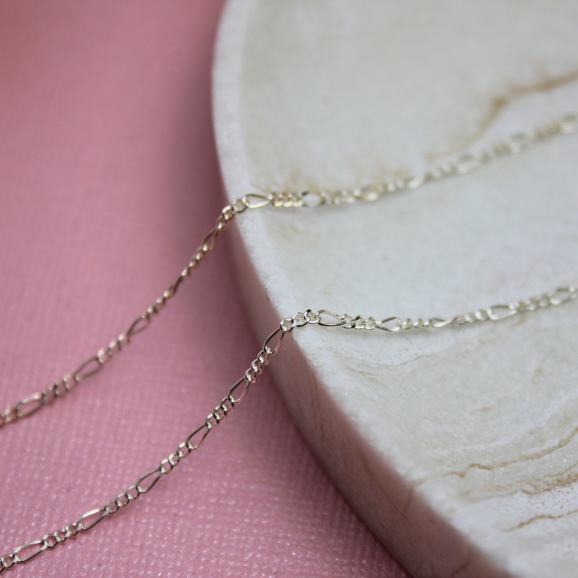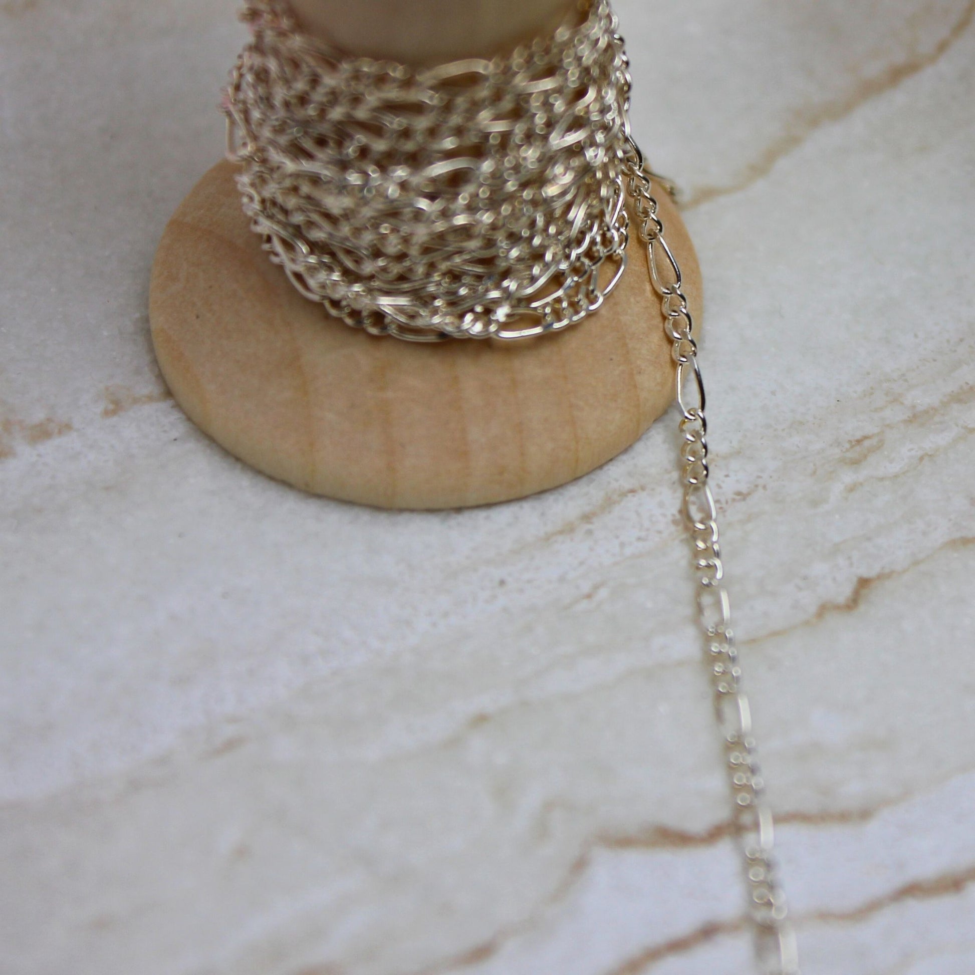 Indulge in the exquisite "Milan" Sterling Silver Figaro Chain, a stunning and luxurious piece that adds elegance and style to any outfit. Feel the weight of the premium silver links and revel in the craftsmanship of this iconic chain. A must-have for any fashion-forward individual!
