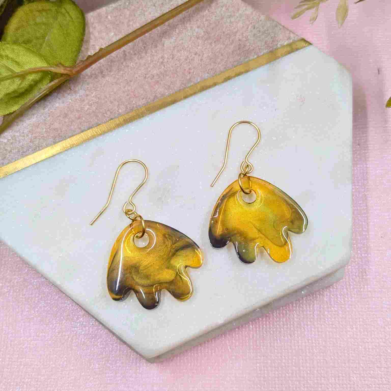 Renee Tortoiseshell Petal Dangle Earrings - Handmade Resin UK