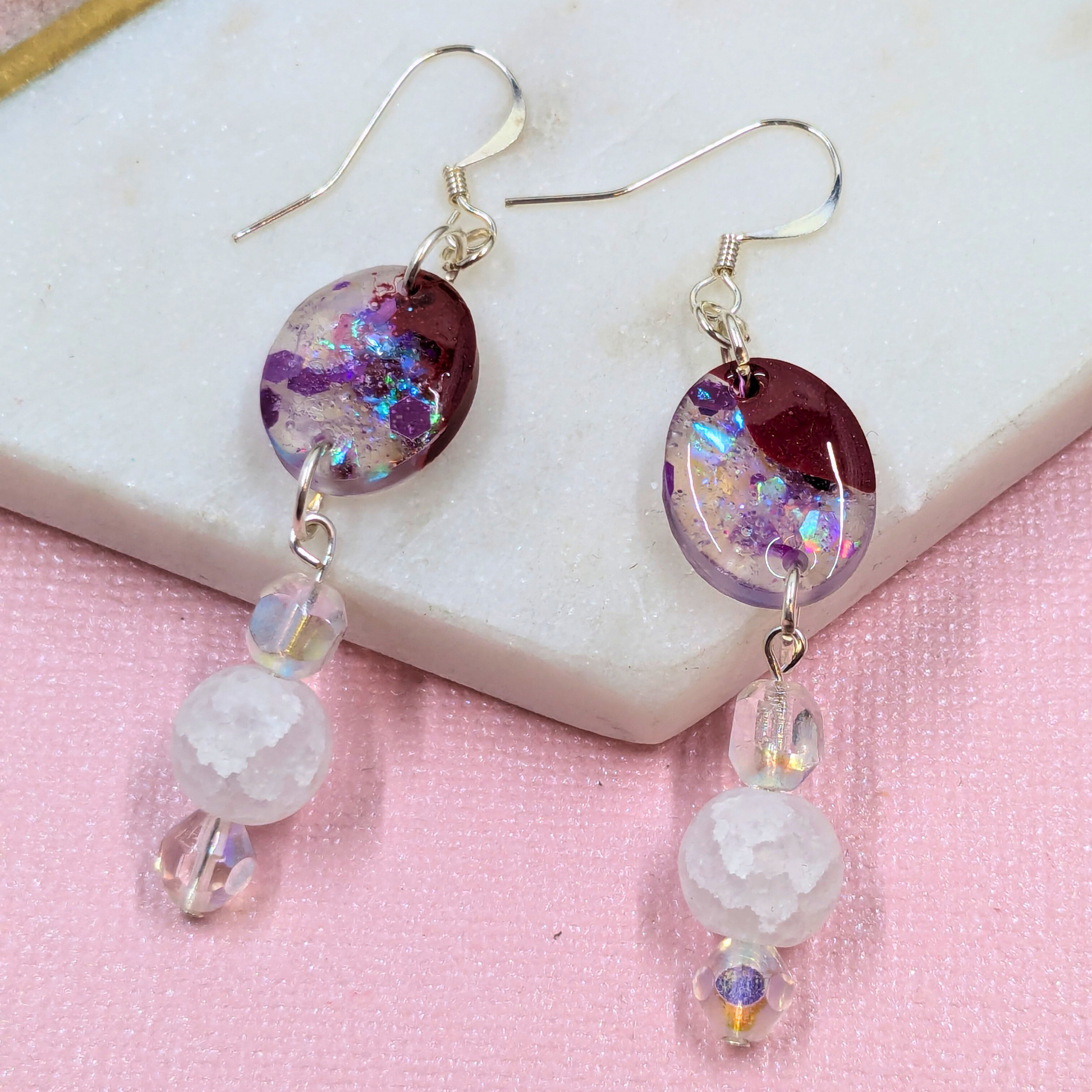 Introducing "Roxy" Mystical & Mulberry Oval, a truly unique accessory with beautiful crackle detailing and ethically sourced no waste recycled beads. Handmade with love in our Shipley studio, each "Roxy" piece tells its own story and embodies our commitment to sustainability. Elevate your style with this stunning oval design while making a positive impact. Part of our special no waste collection, "Roxy" is a statement in both style and conscious creation.