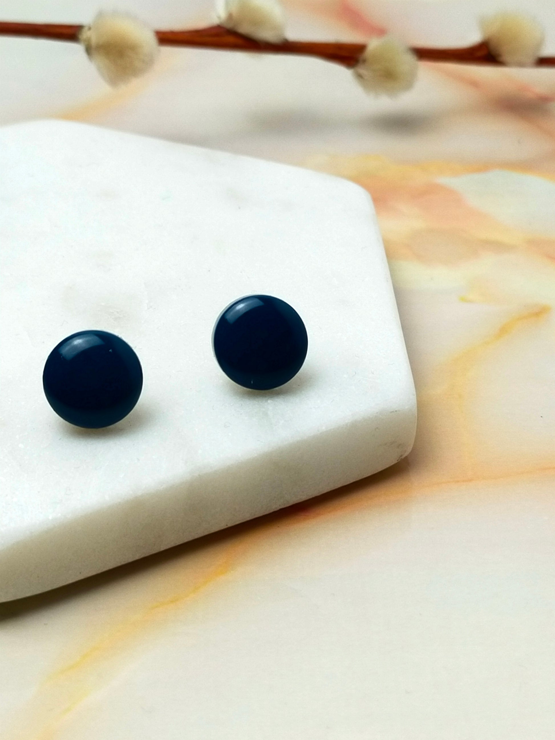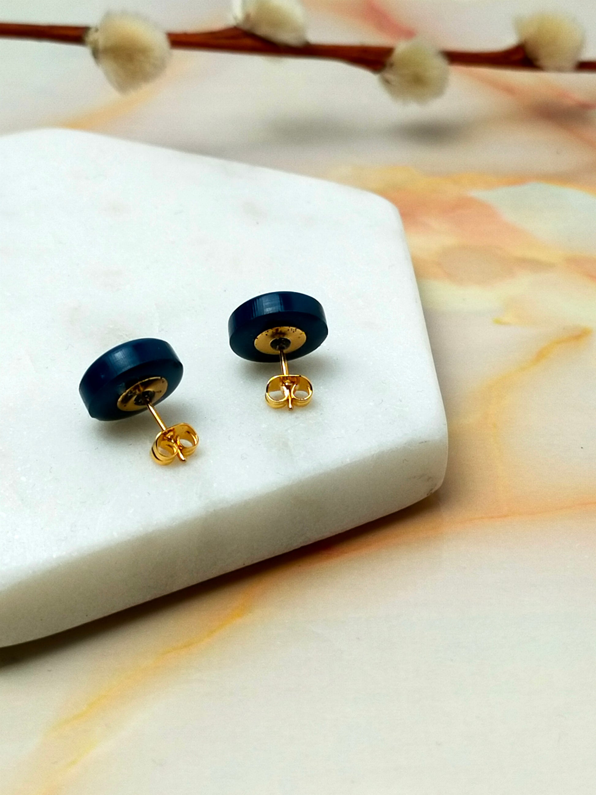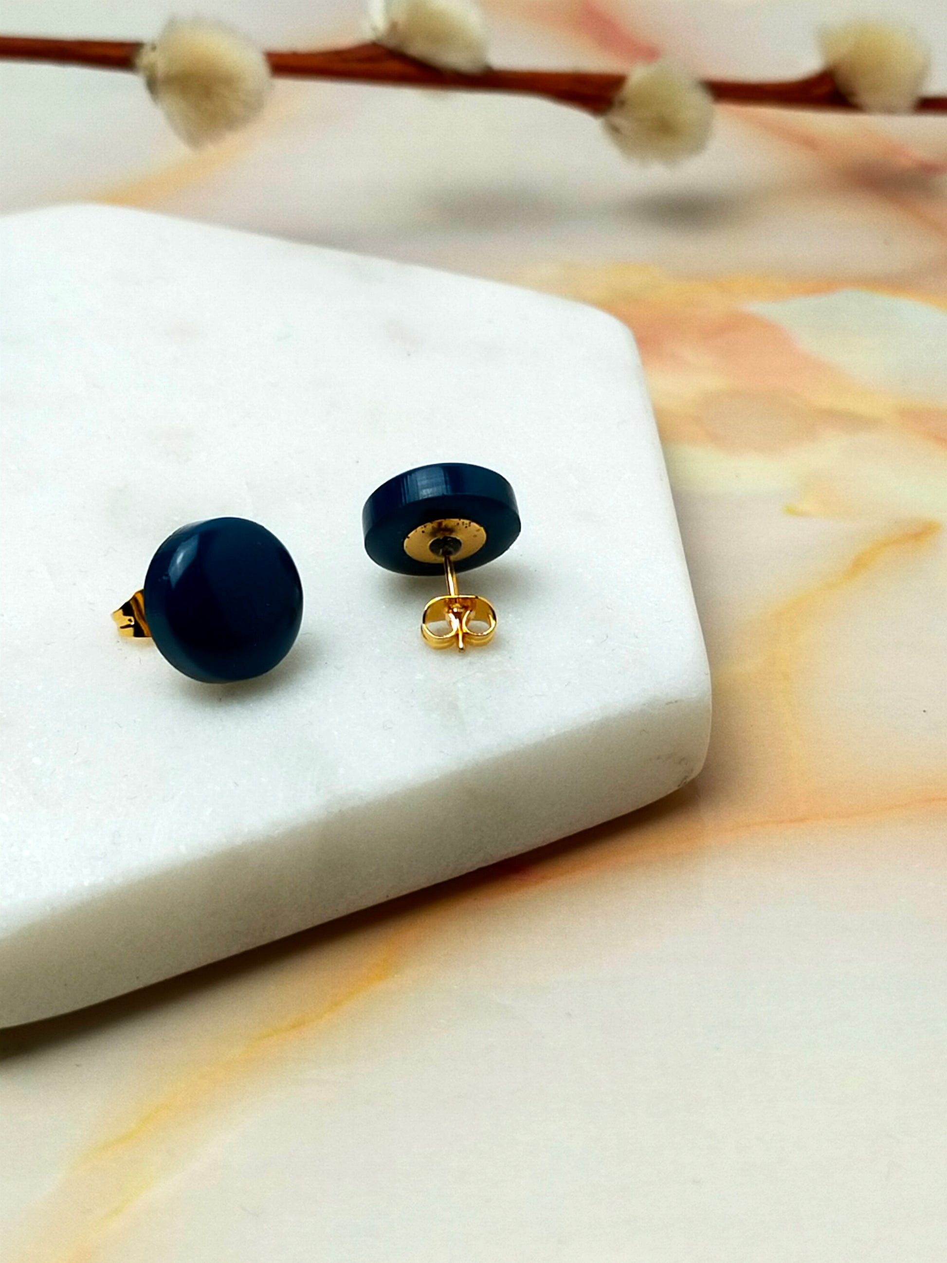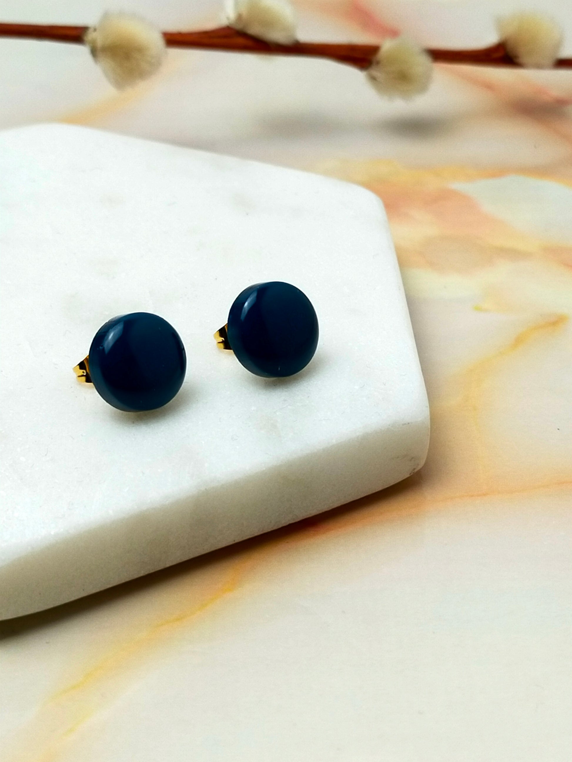 "Sabrina" Teal Small Circle Resin Stud Earrings