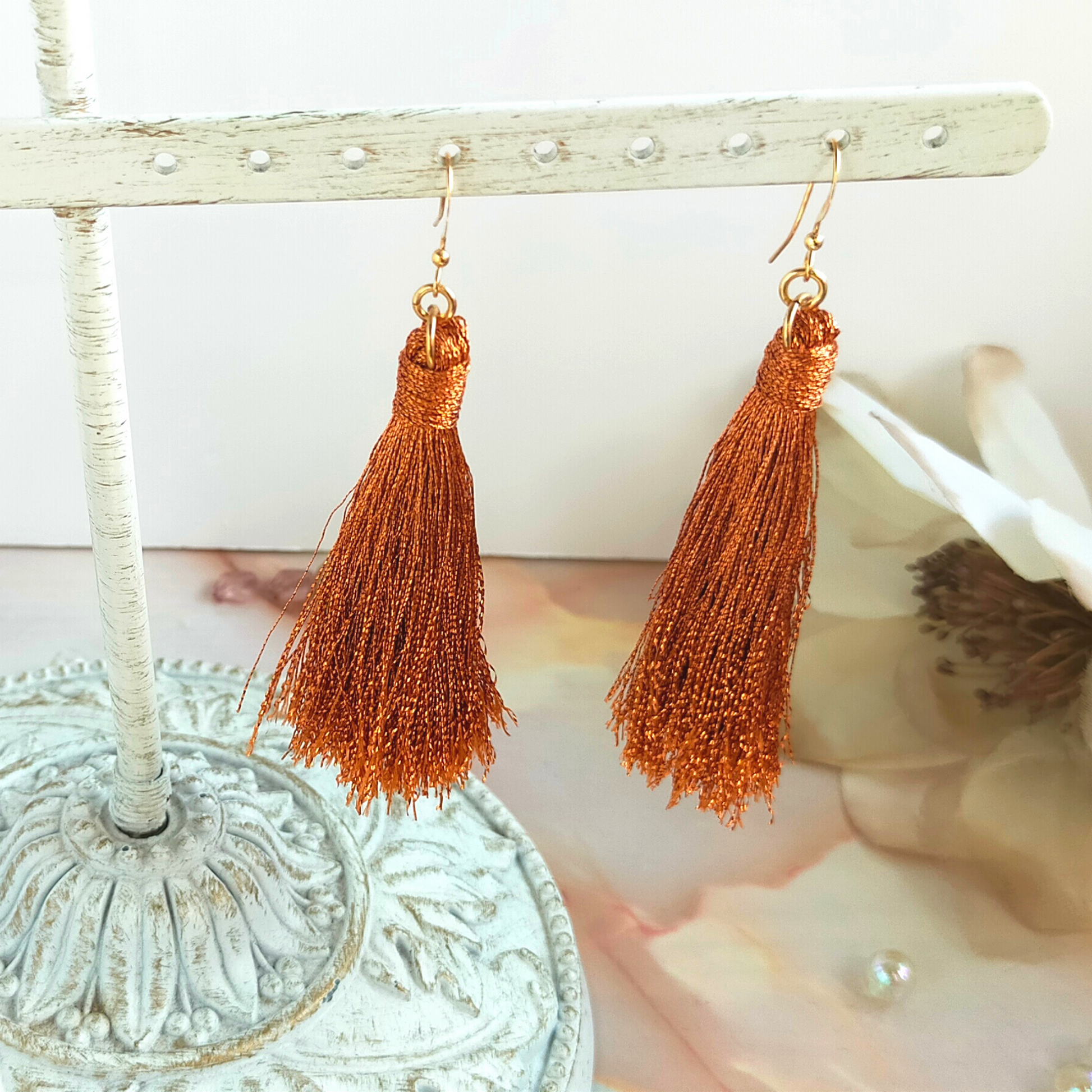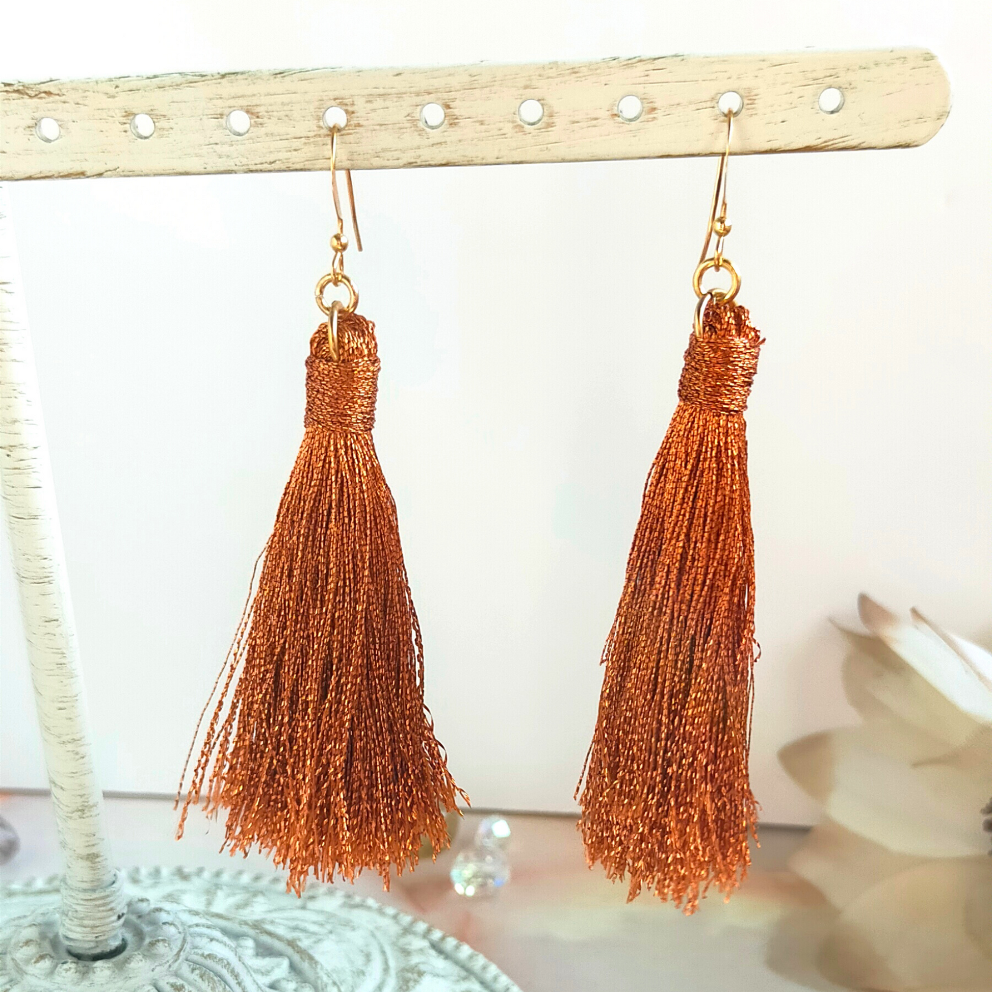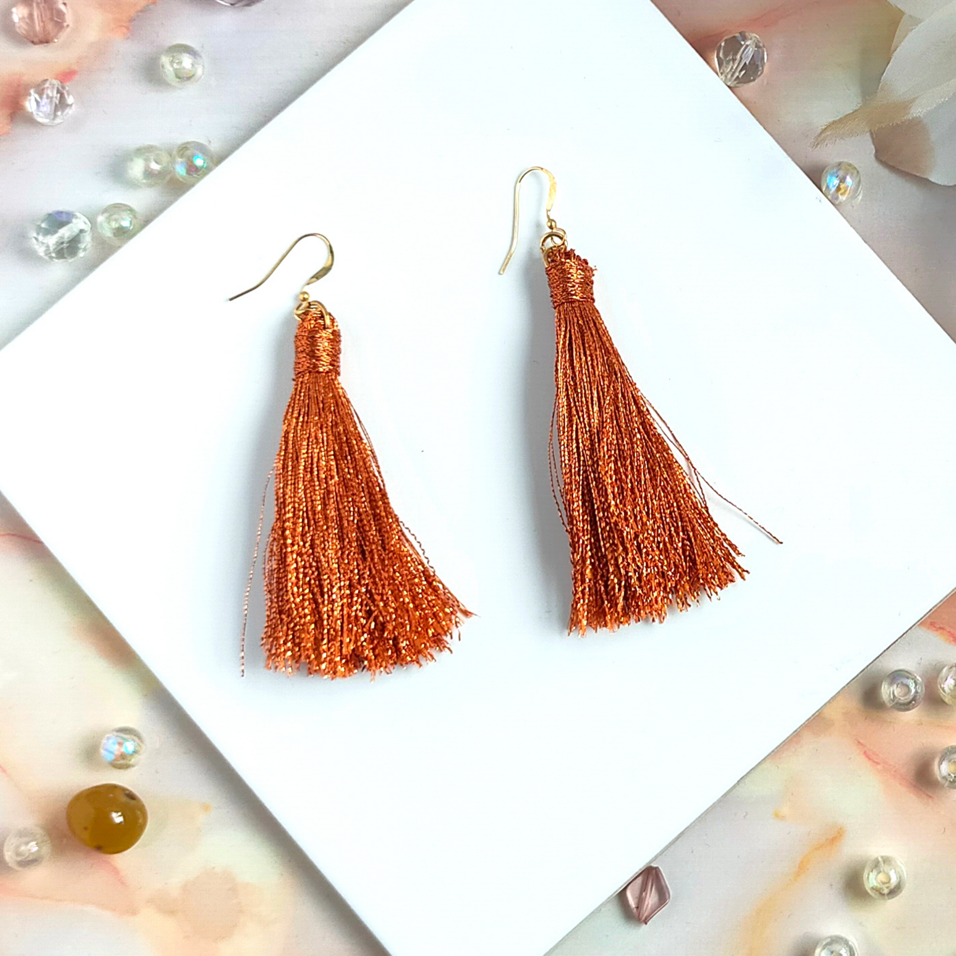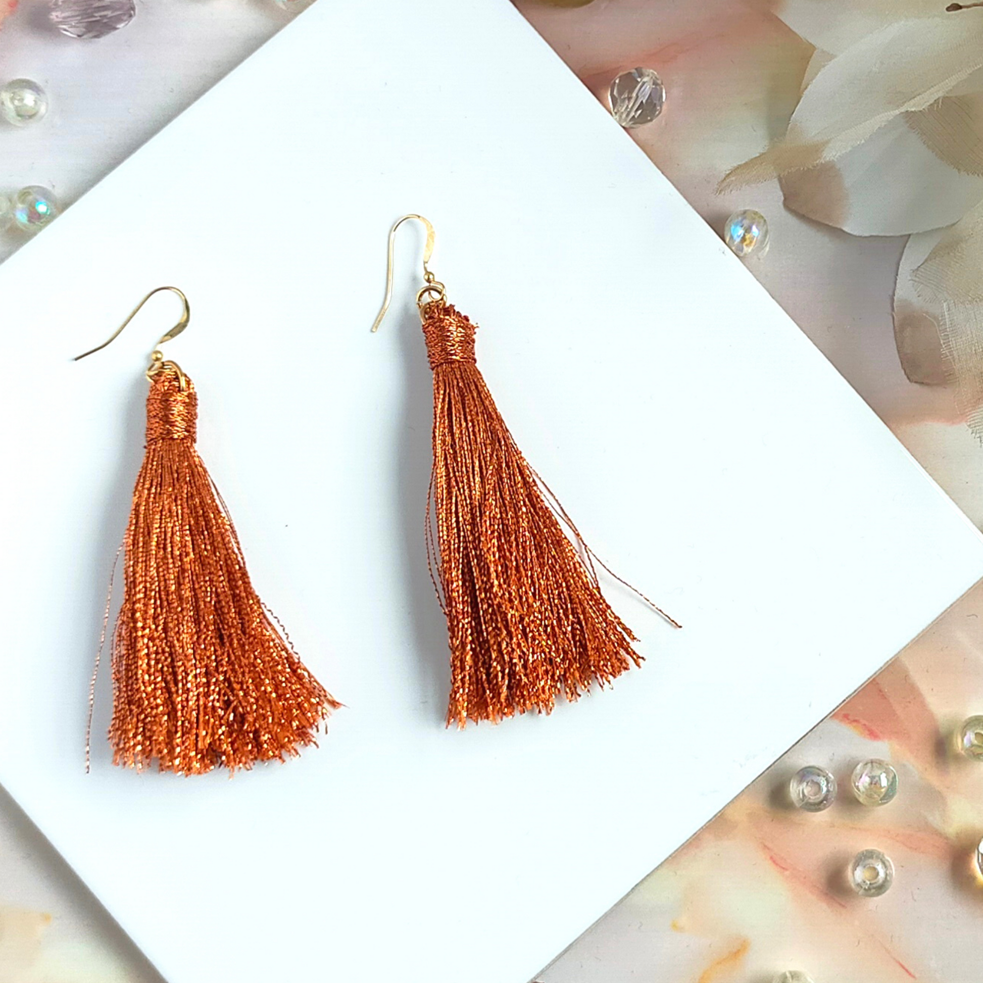 "Saffron" 14K Gold Filled Copper Metallic Tassel Earrings