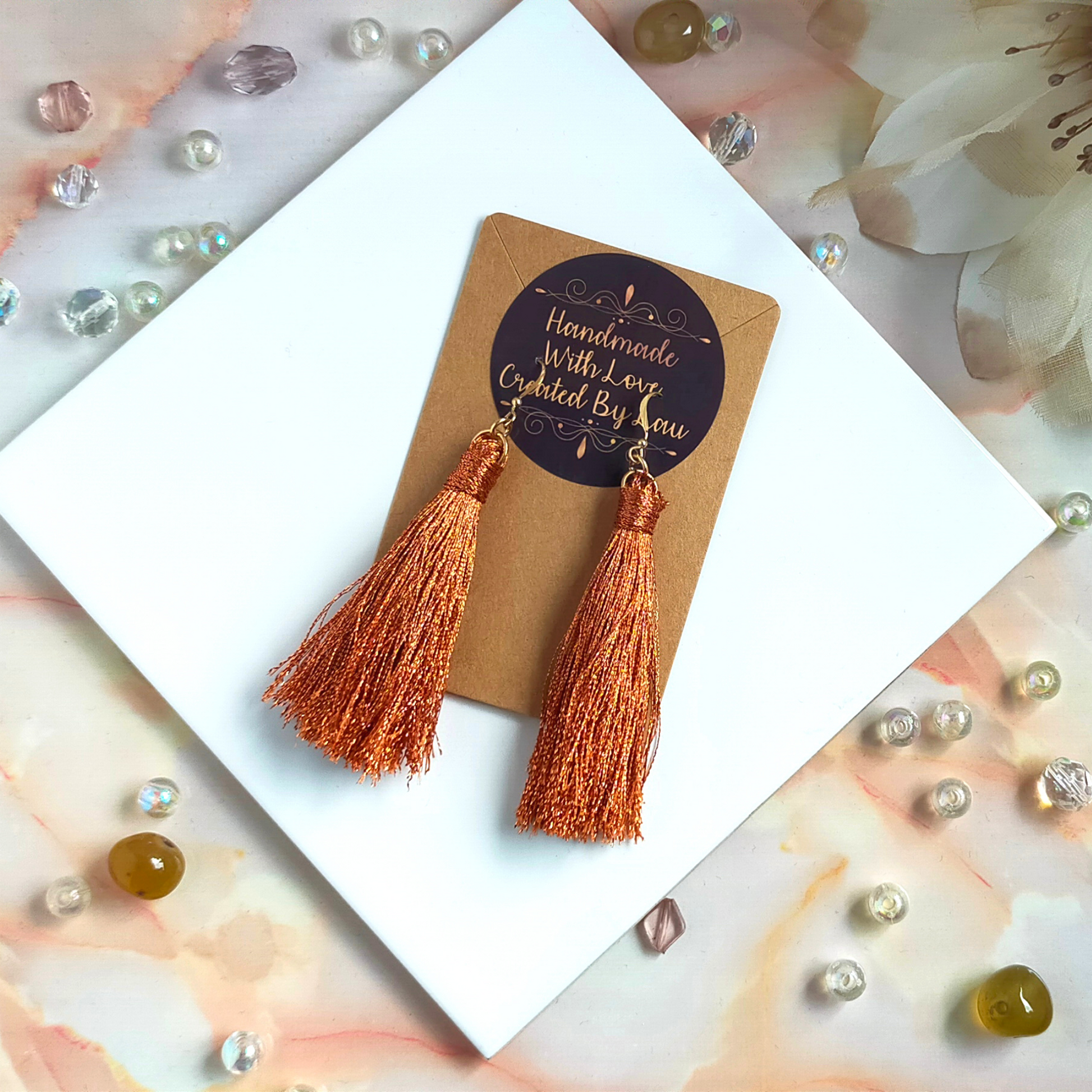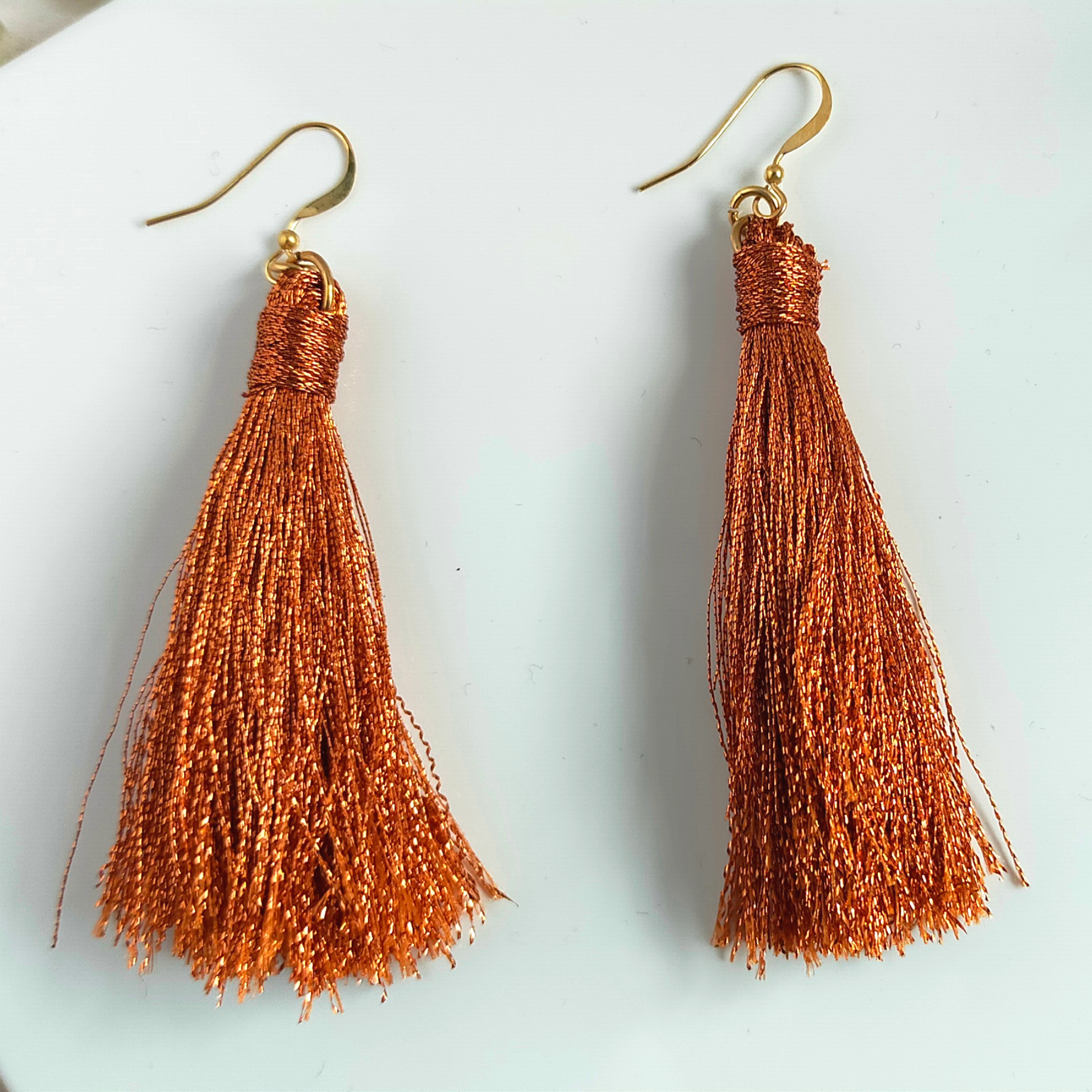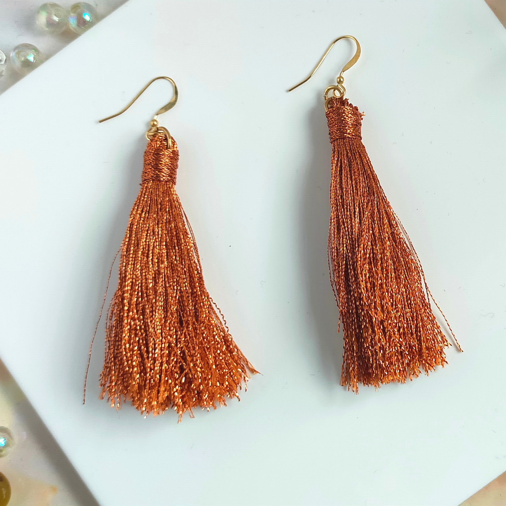 The "Saffron" features a metallic single colour design in copper. Due to this each tassel is individual and has been matched as best as possible to make a pair.