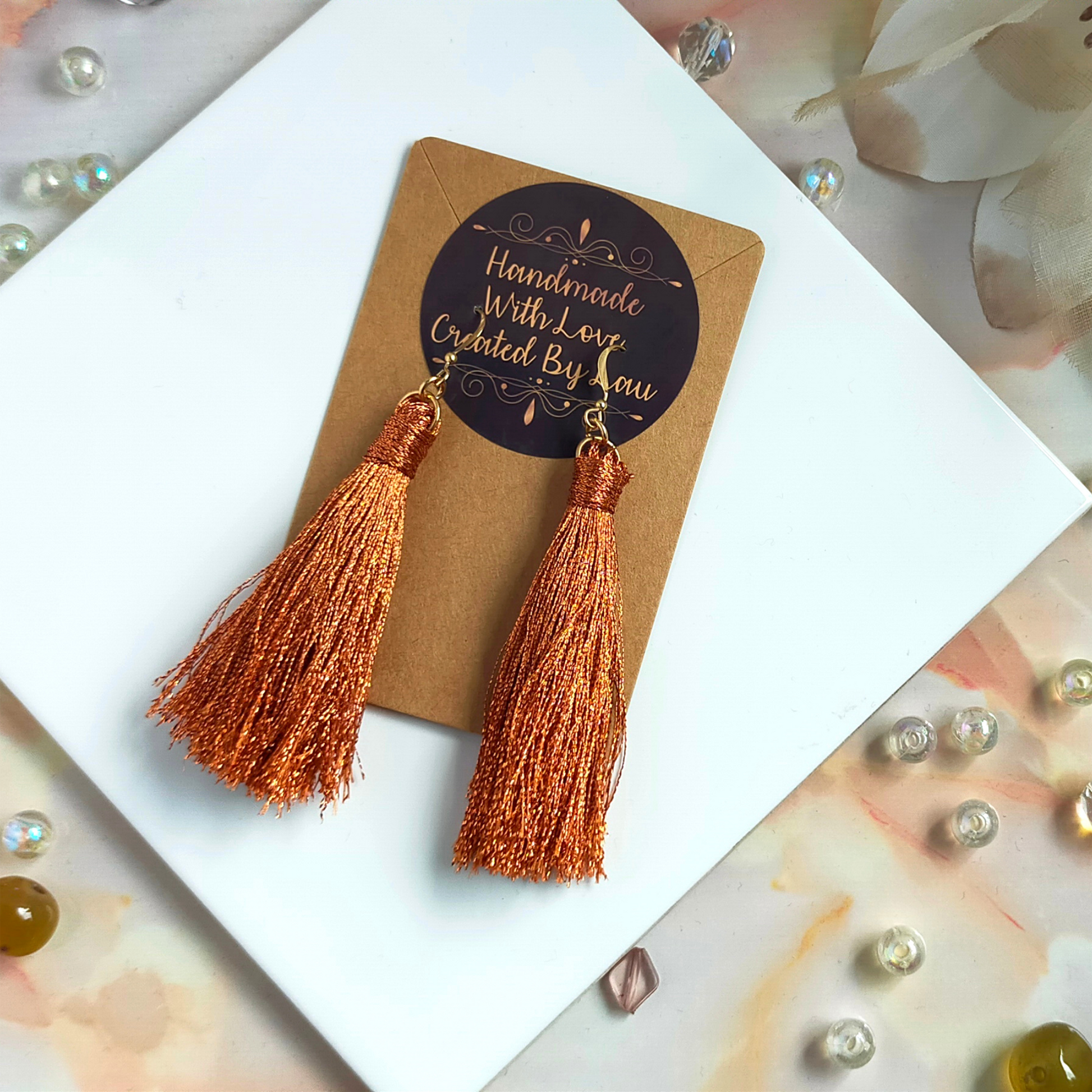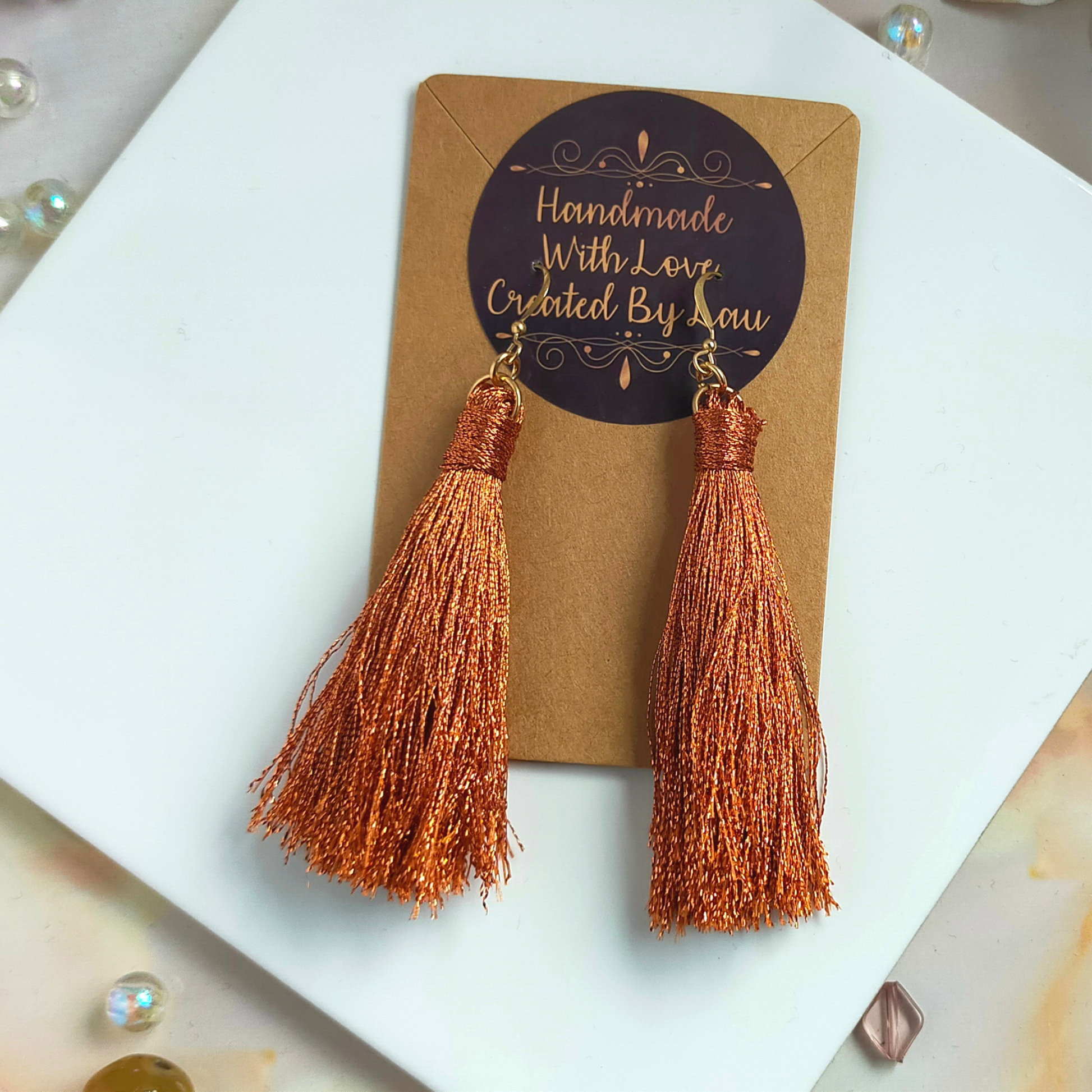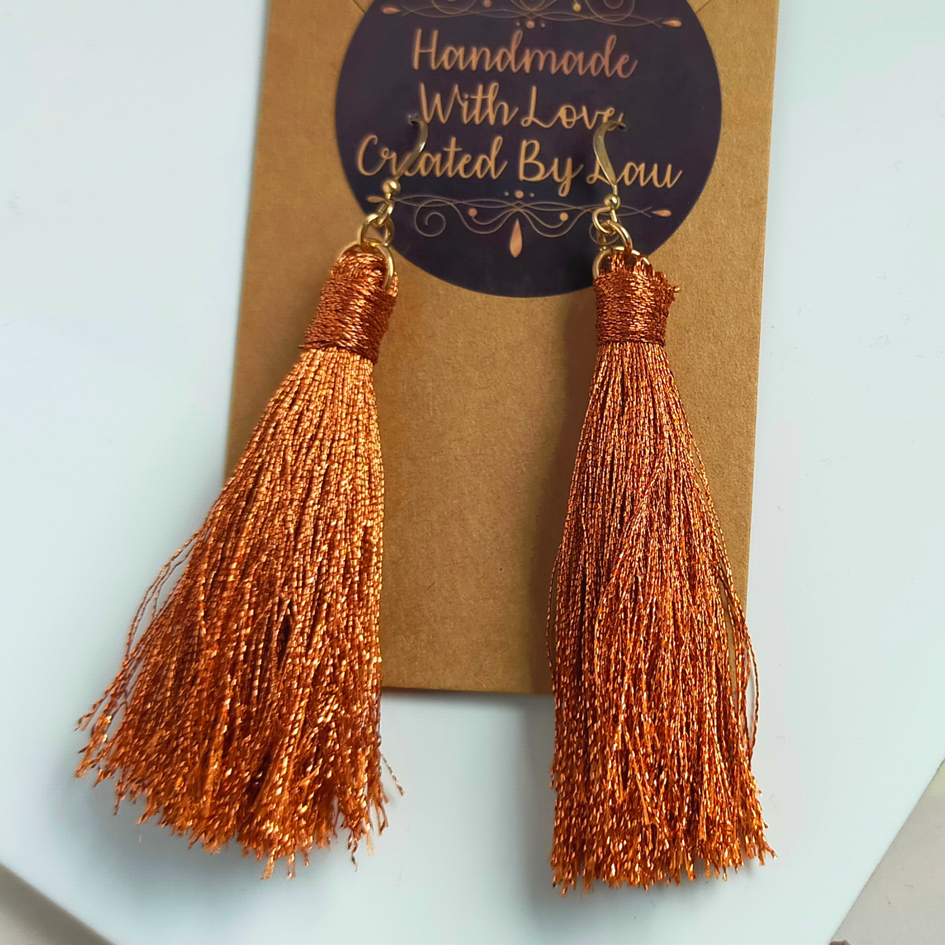 The "Saffron" features a metallic single colour design in copper. Due to this each tassel is individual and has been matched as best as possible to make a pair.