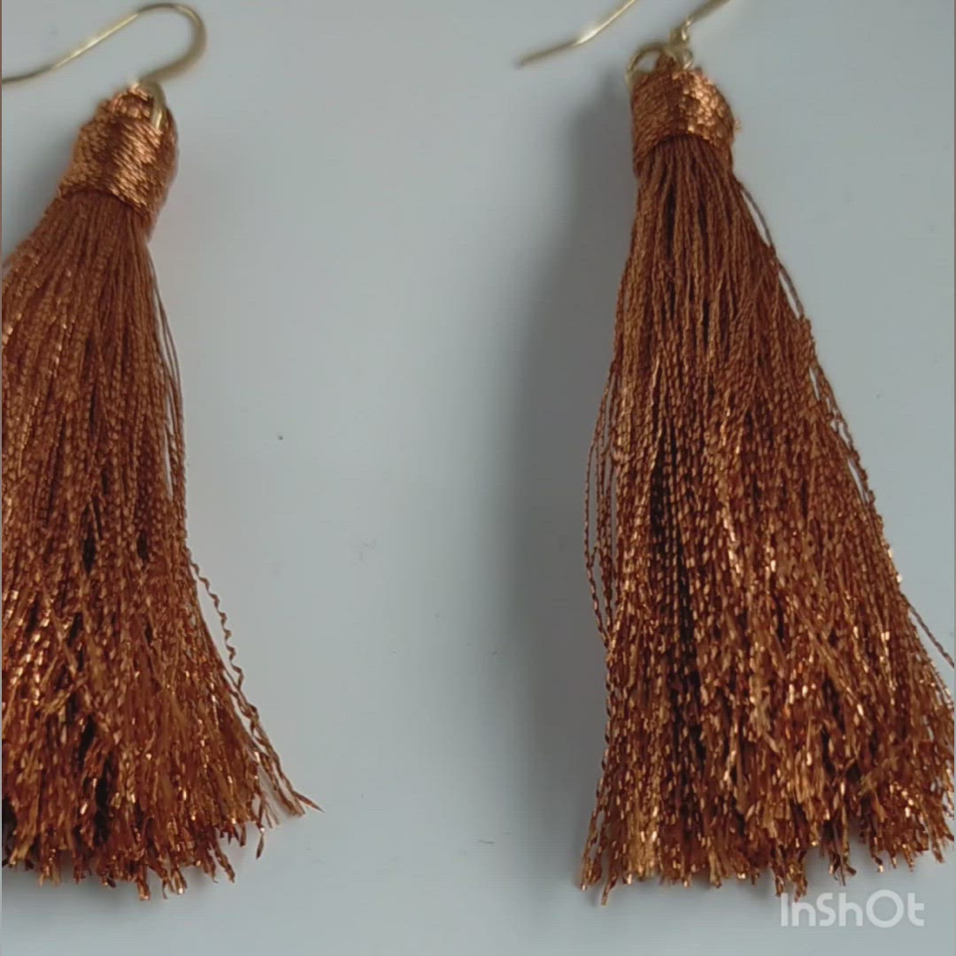 Each tassel has been created using premium 100% polyester thread to create this unique design, super light earring which is perfect for this party season. It also features a 14K gold-filled earring hook and jump rings.