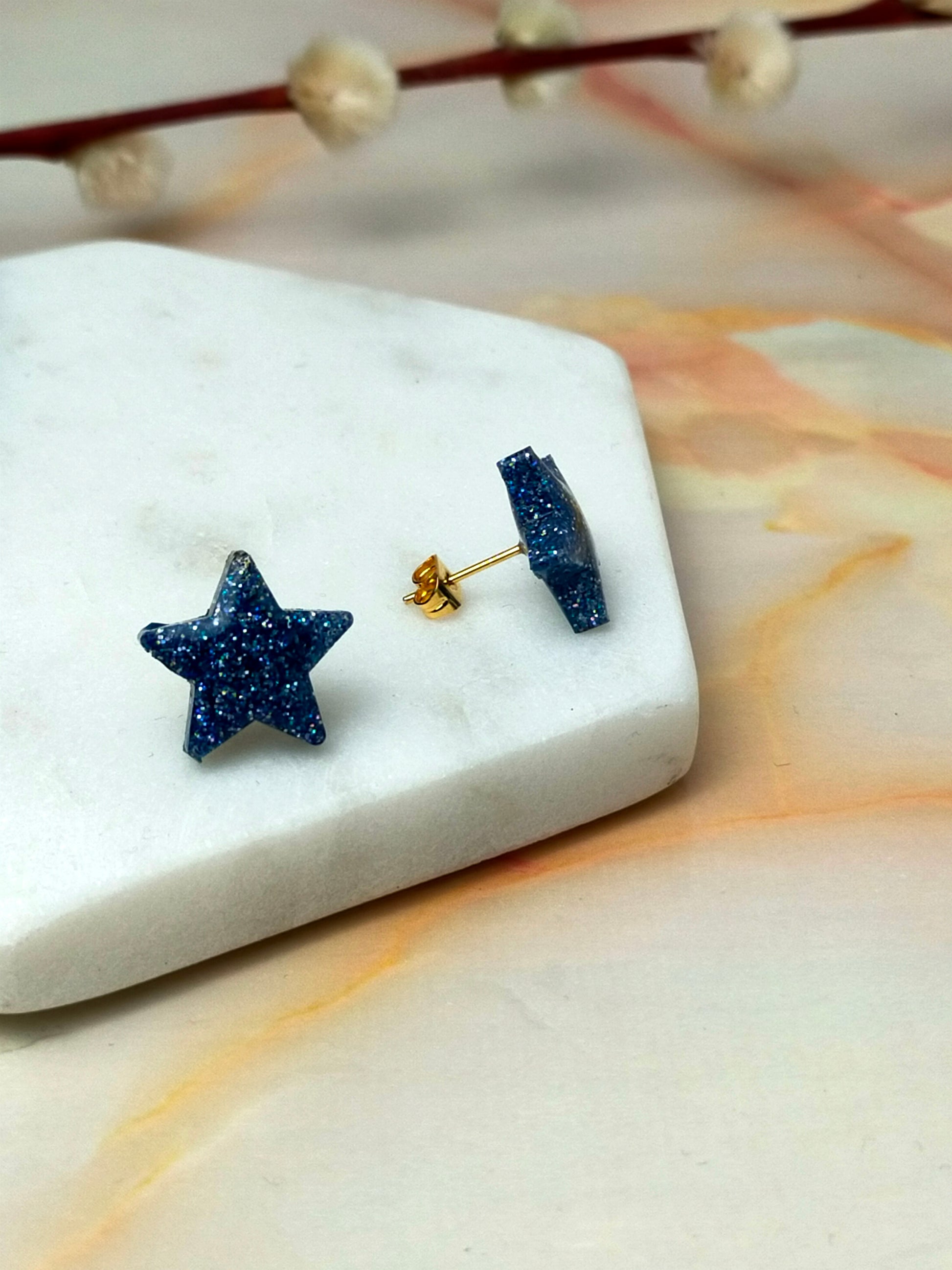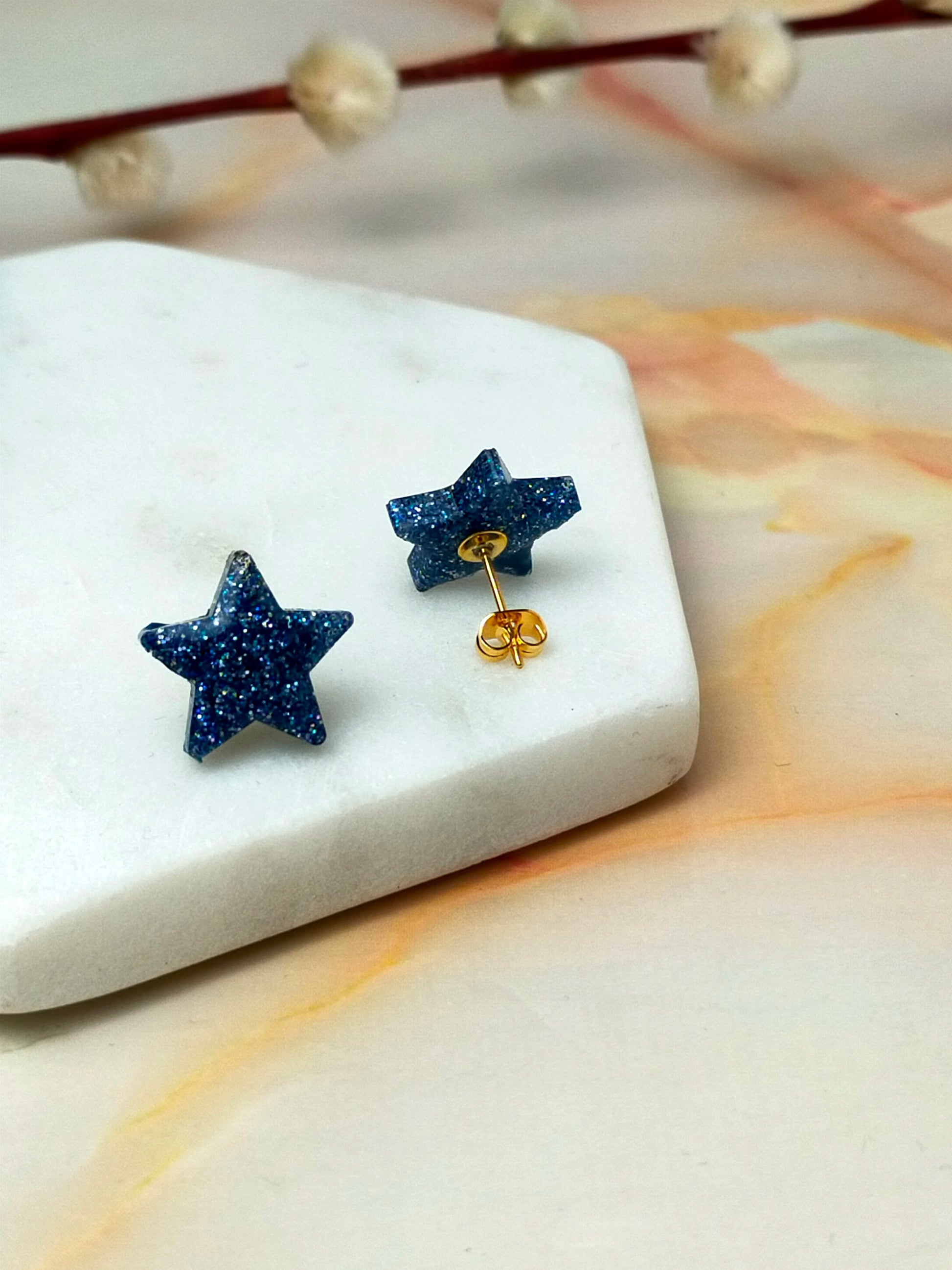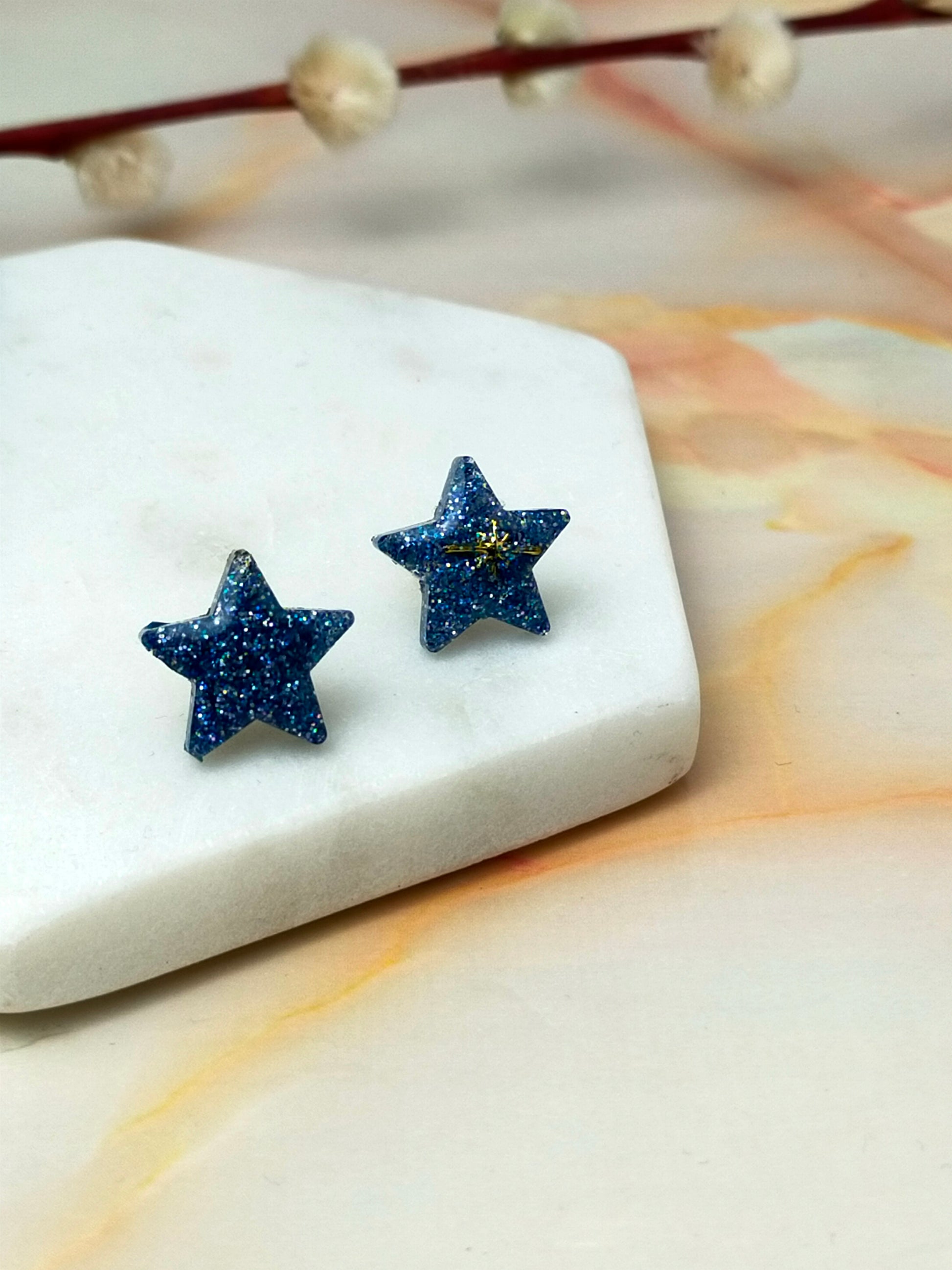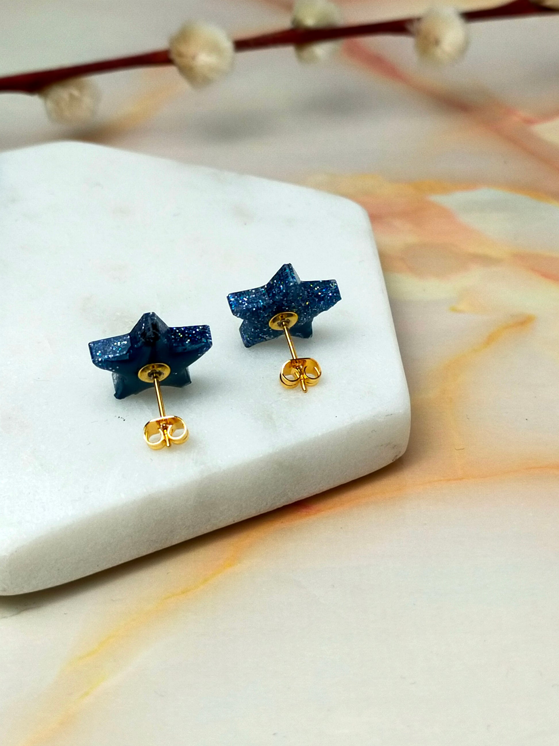 "Selene" Blue Navy Glitter Star Stud Earrings