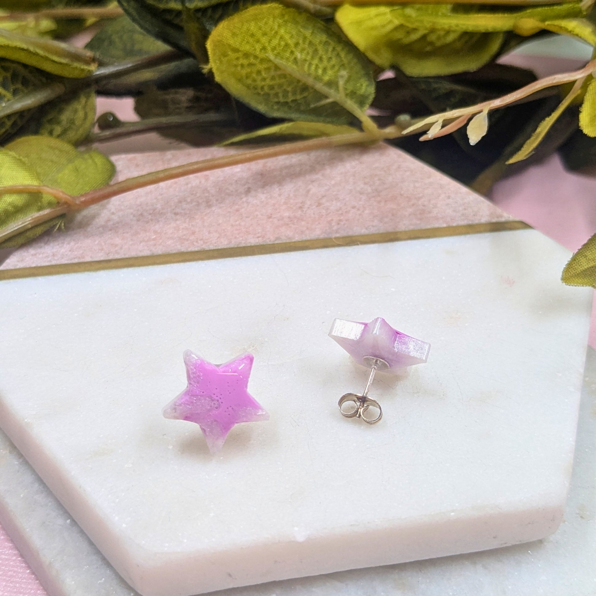 Each sweet star is lovingly made from high-quality resin, infused with gorgeous pink and white metallic pigments that shimmer beautifully in the light. They're set on durable stainless steel ear pads with secure scrolls, ensuring they're comfy for all-day wear and built to last.