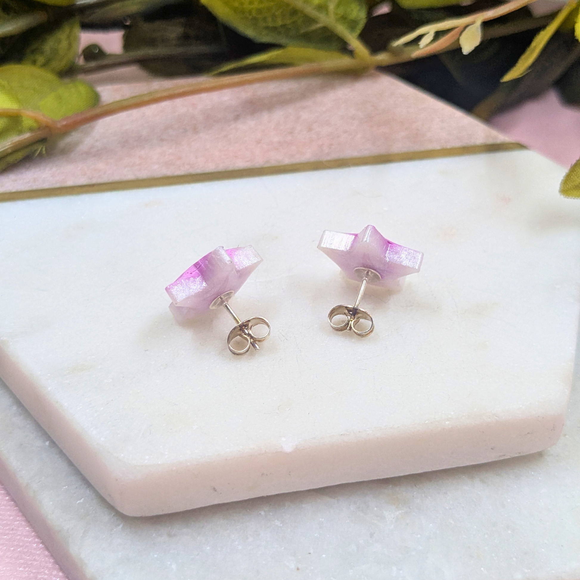 Selene Pink White Metallic Star Stud Earrings | Celestial Resin Jewellery by Created By Lau