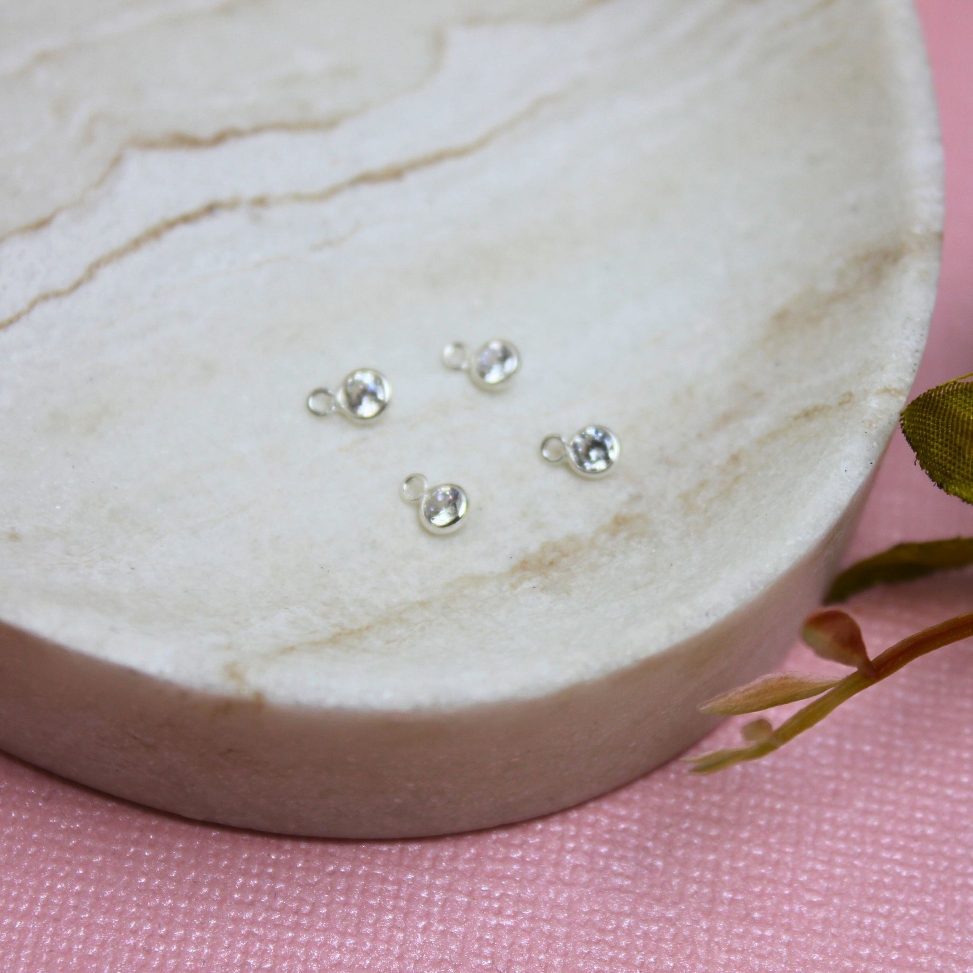 Sterling Silver 3mm Cubic Zirconia Brilliant White Charm