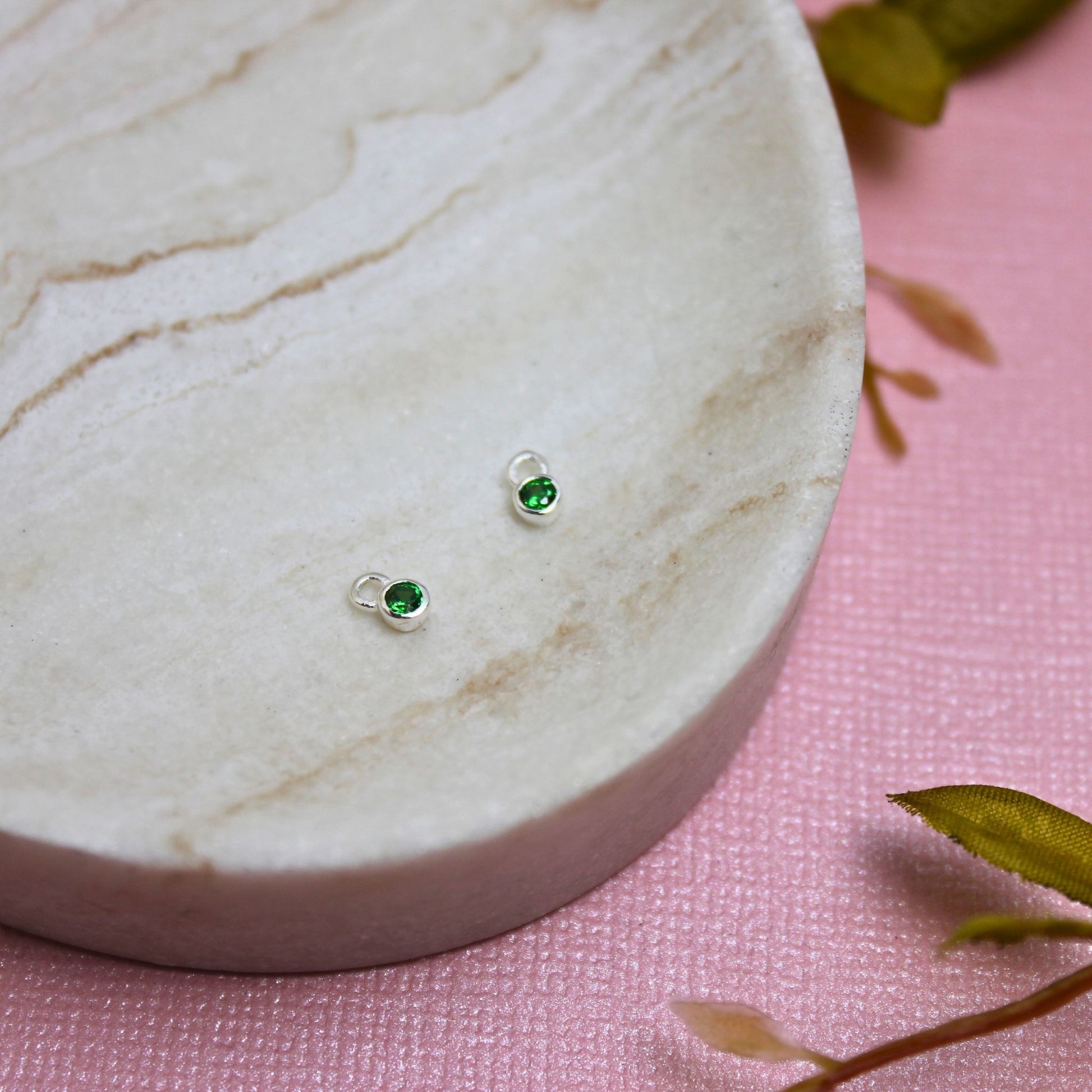 Sterling Silver 3mm Round CZ Green Birthstone May Crystal Charm