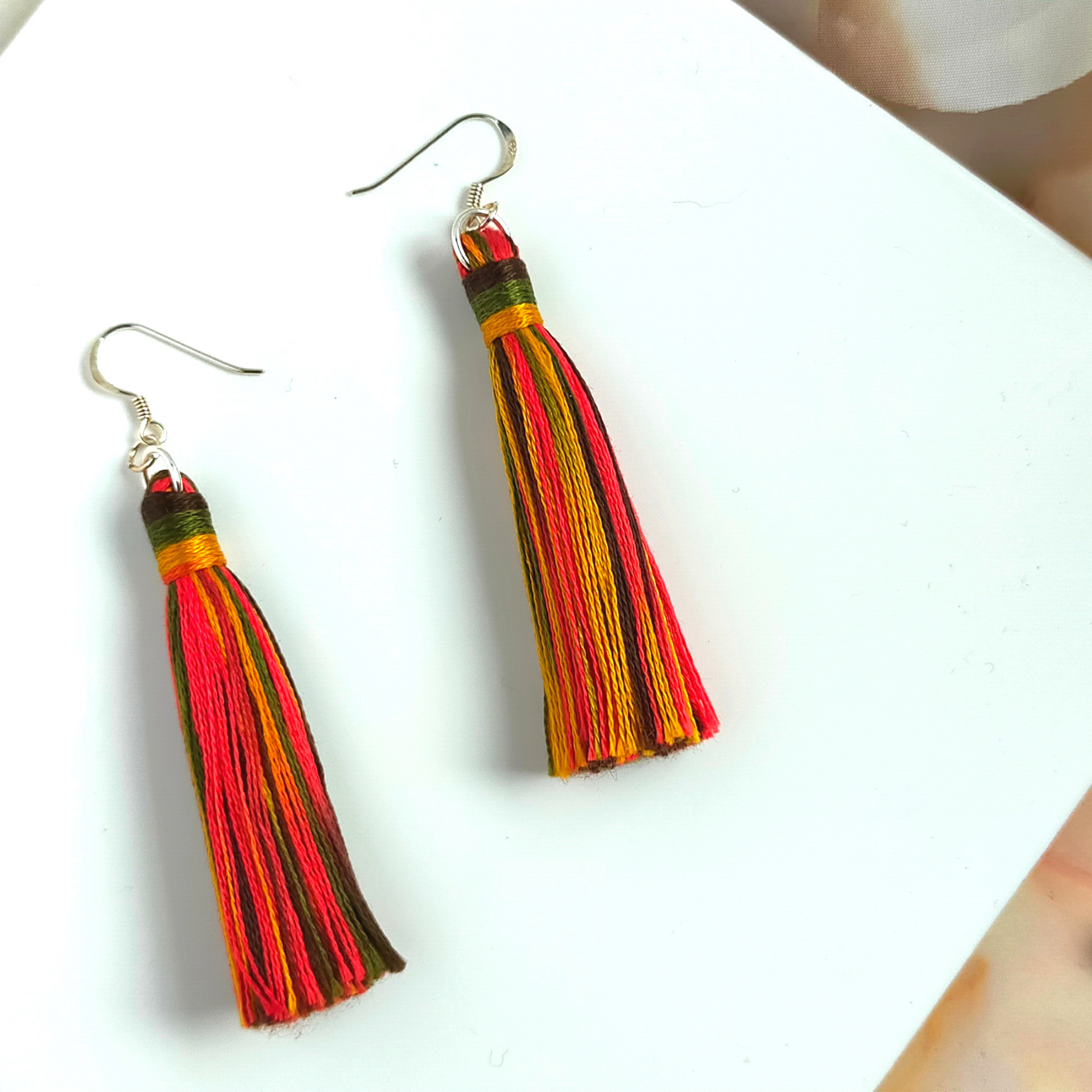 Each tassel has been created using 100% Cotton thread to create a unique design, super light earring and also features a sterling silver earring hook.