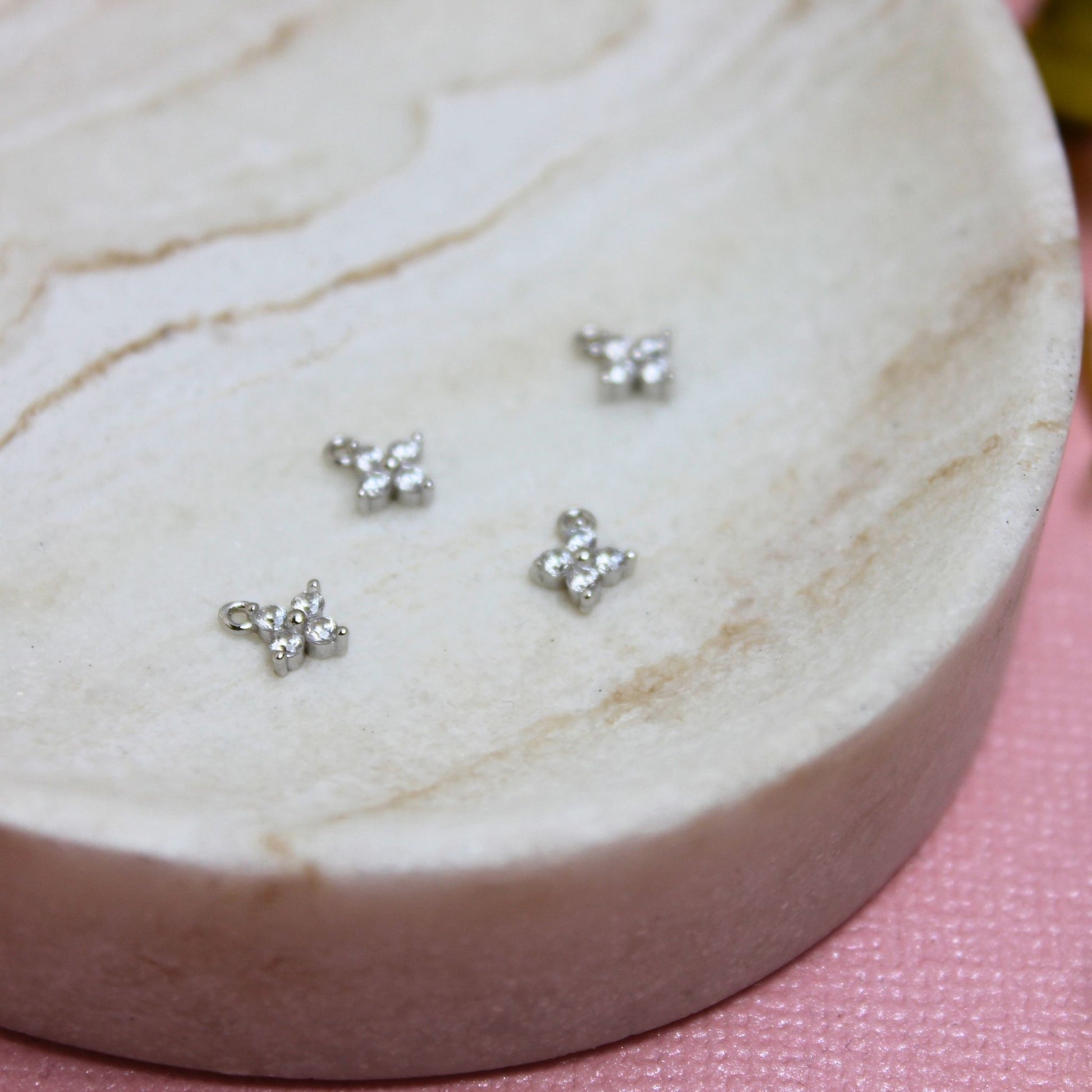 Sterling Silver Crystal Flower Blossom Pendant Charm