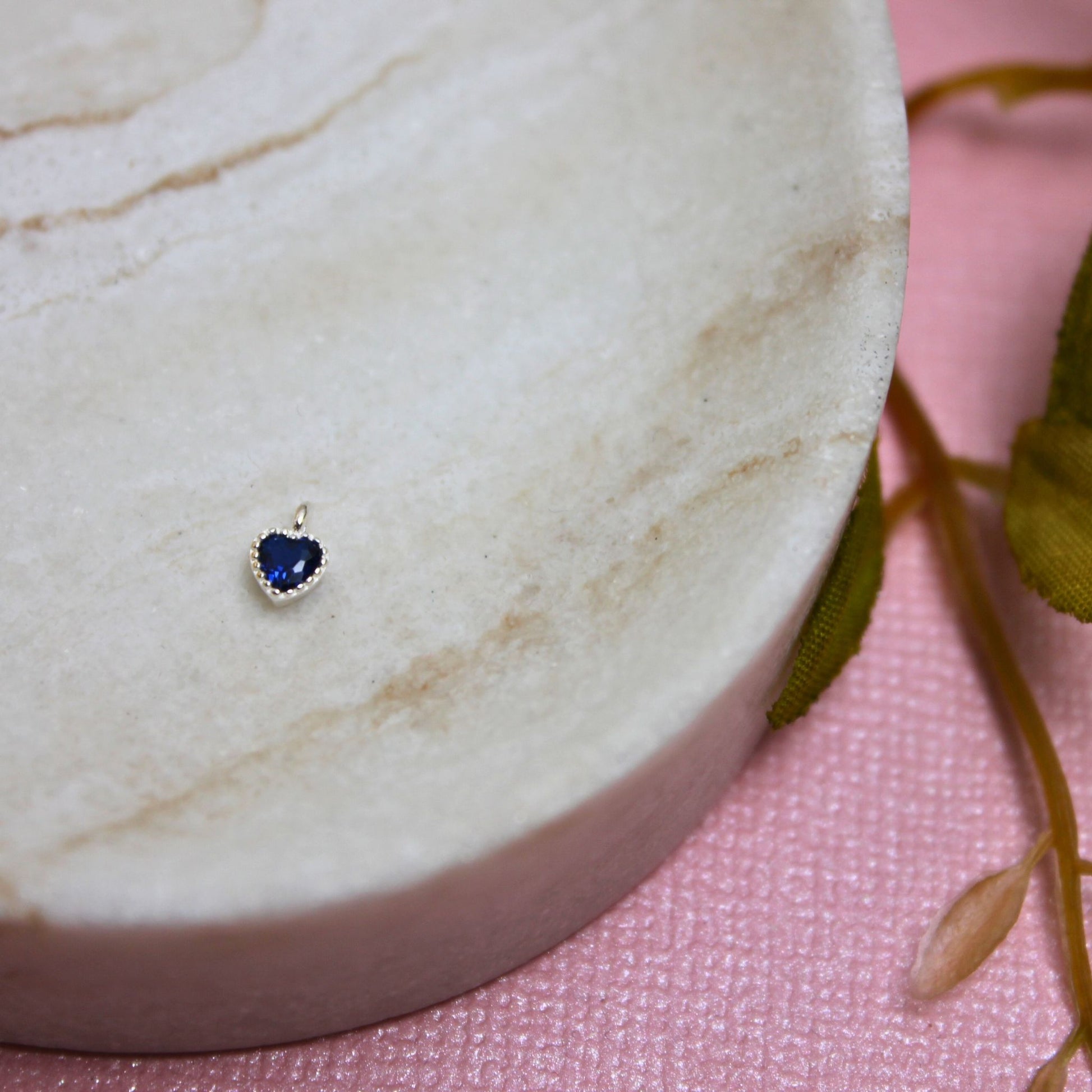 Transform any outfit with our Sterling Silver Dark Blue Crystal Heart Charm! Made with genuine sterling silver and featuring a striking dark blue crystal, this charm will add a touch of elegance and sophistication to any look. A must-have for any jewellery collection.