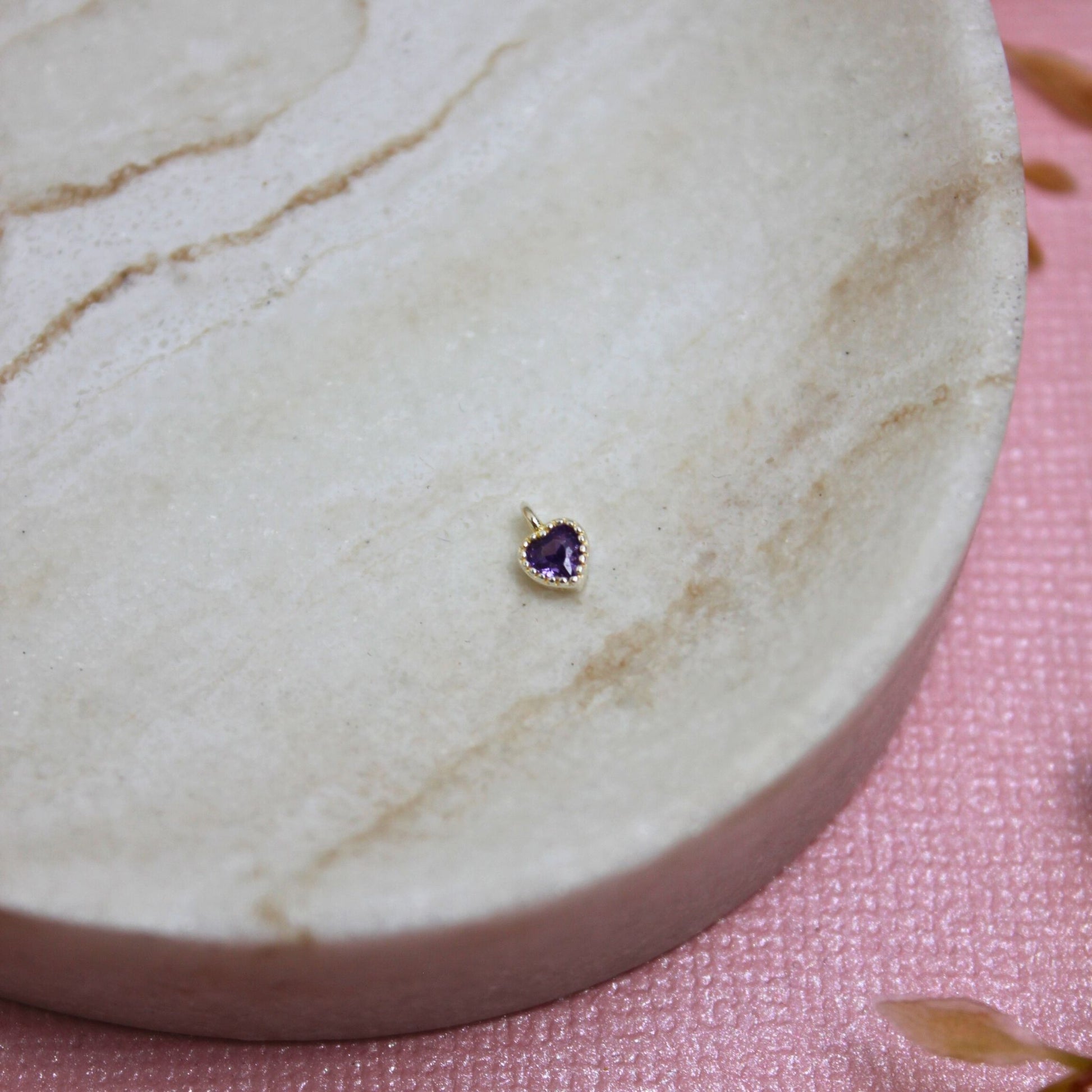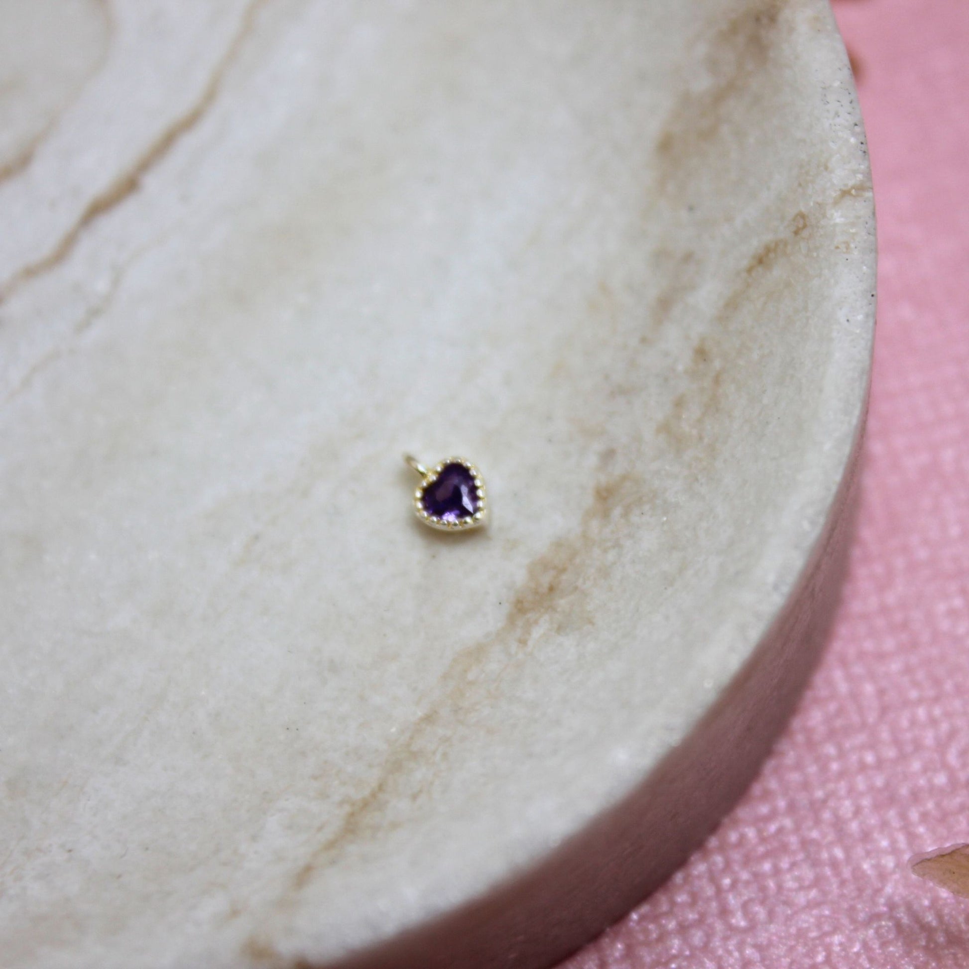 Capture your heart with our Sterling Silver Purple Crystal Heart Charm. Made of high quality sterling silver and adorned with a dazzling purple crystal, this charm is the perfect addition to any bracelet or necklace. Bring a touch of elegance and love to your jewelry collection with this stunning charm.