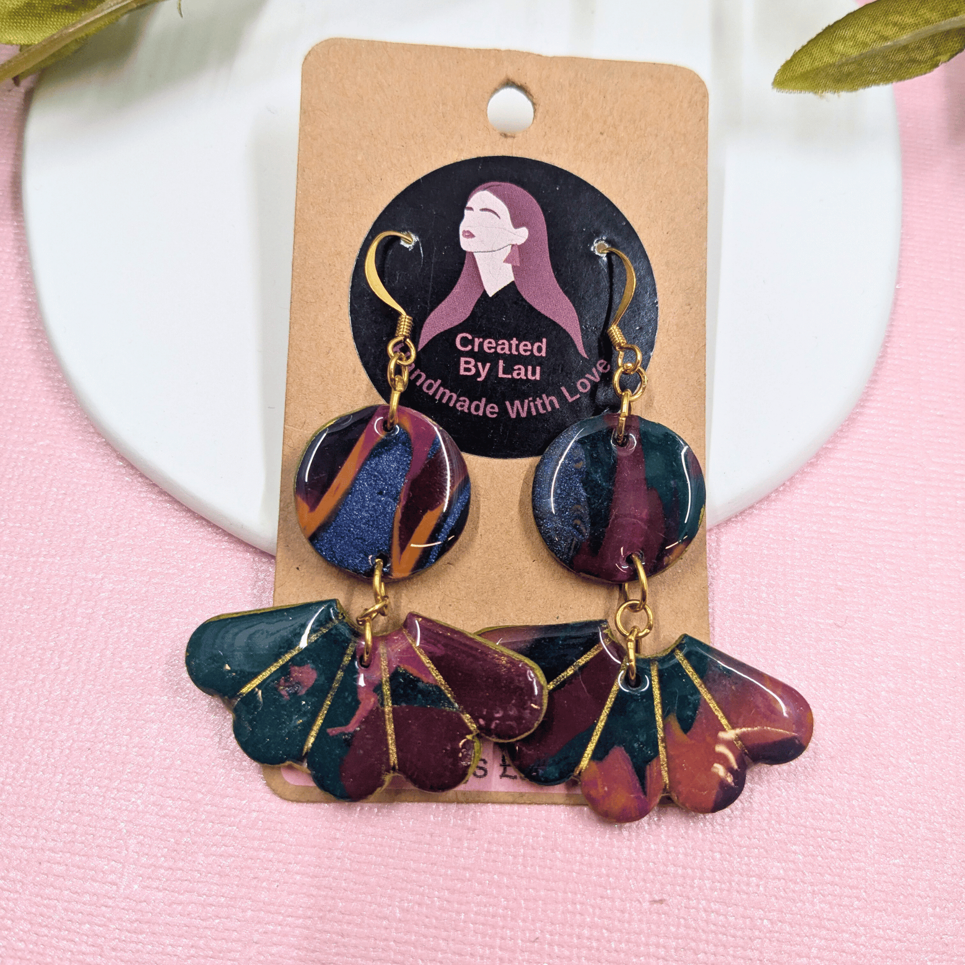 Teagan Green Multi Circle Flower Polymer Clay Dangle Earrings
