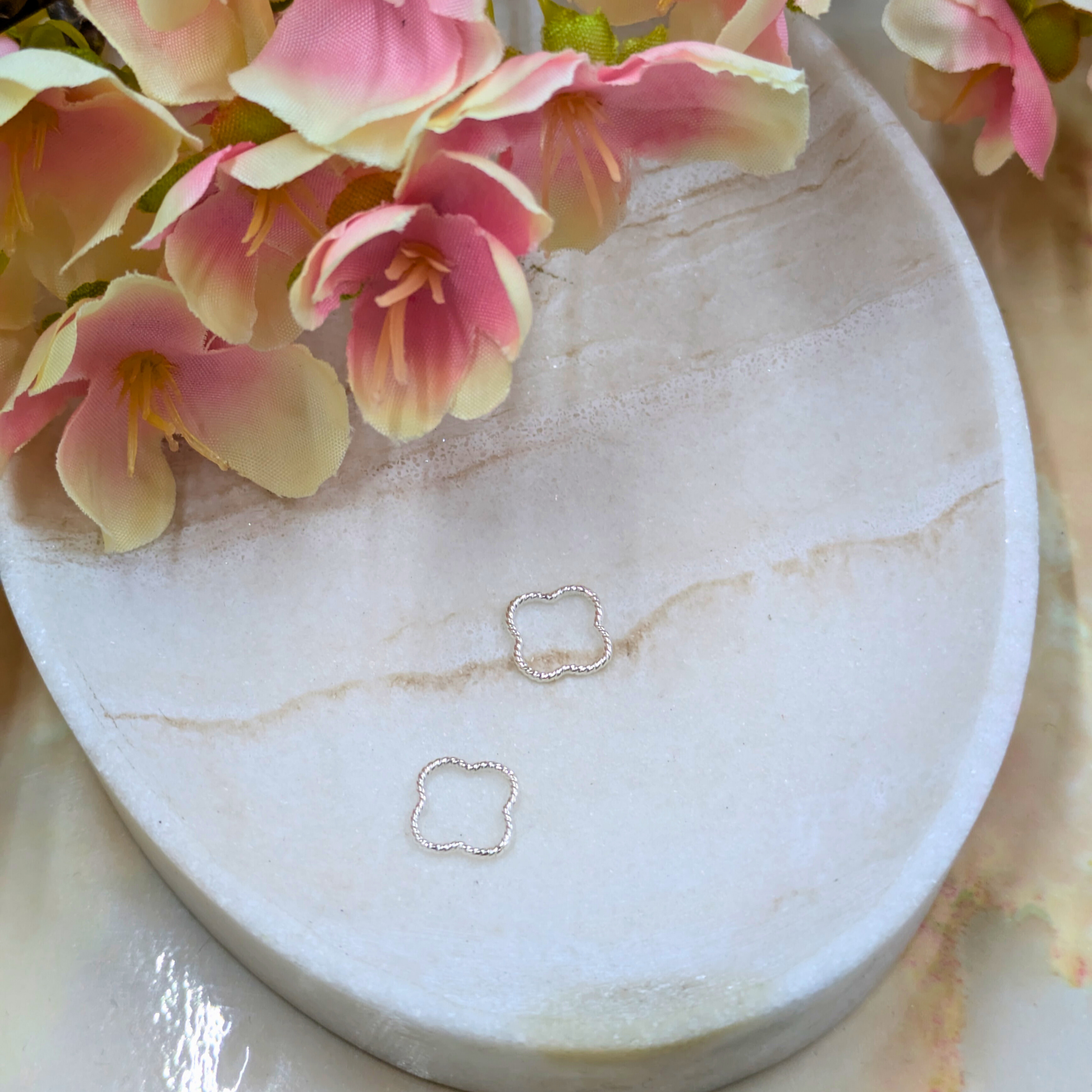 Elevate your jewelry creations with this Sterling Silver Twisted Clover Connector. Its elegant twisted design adds a unique touch, perfect for crafting delicate bracelets or necklaces. Crafted from quality sterling silver, it offers lasting shine and durability, making your pieces stand out with refined charm. Add a subtle symbol of luck and style to your accessories with this versatile connector.