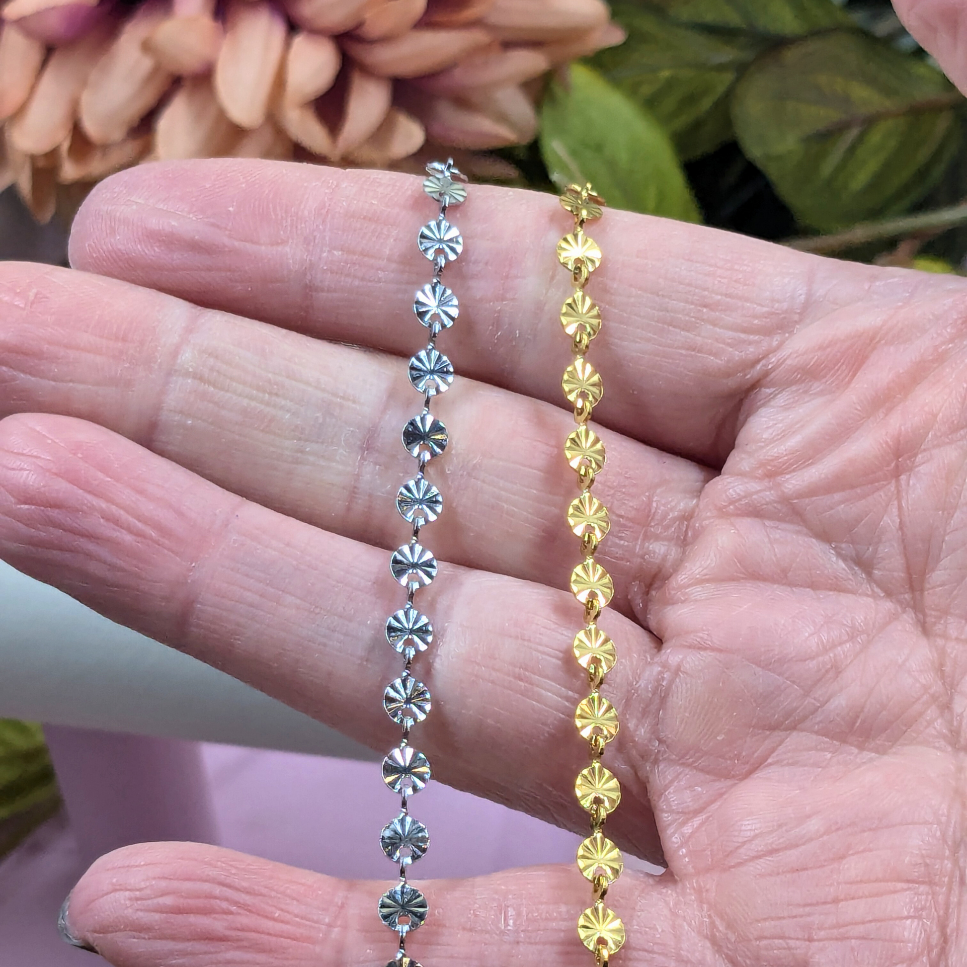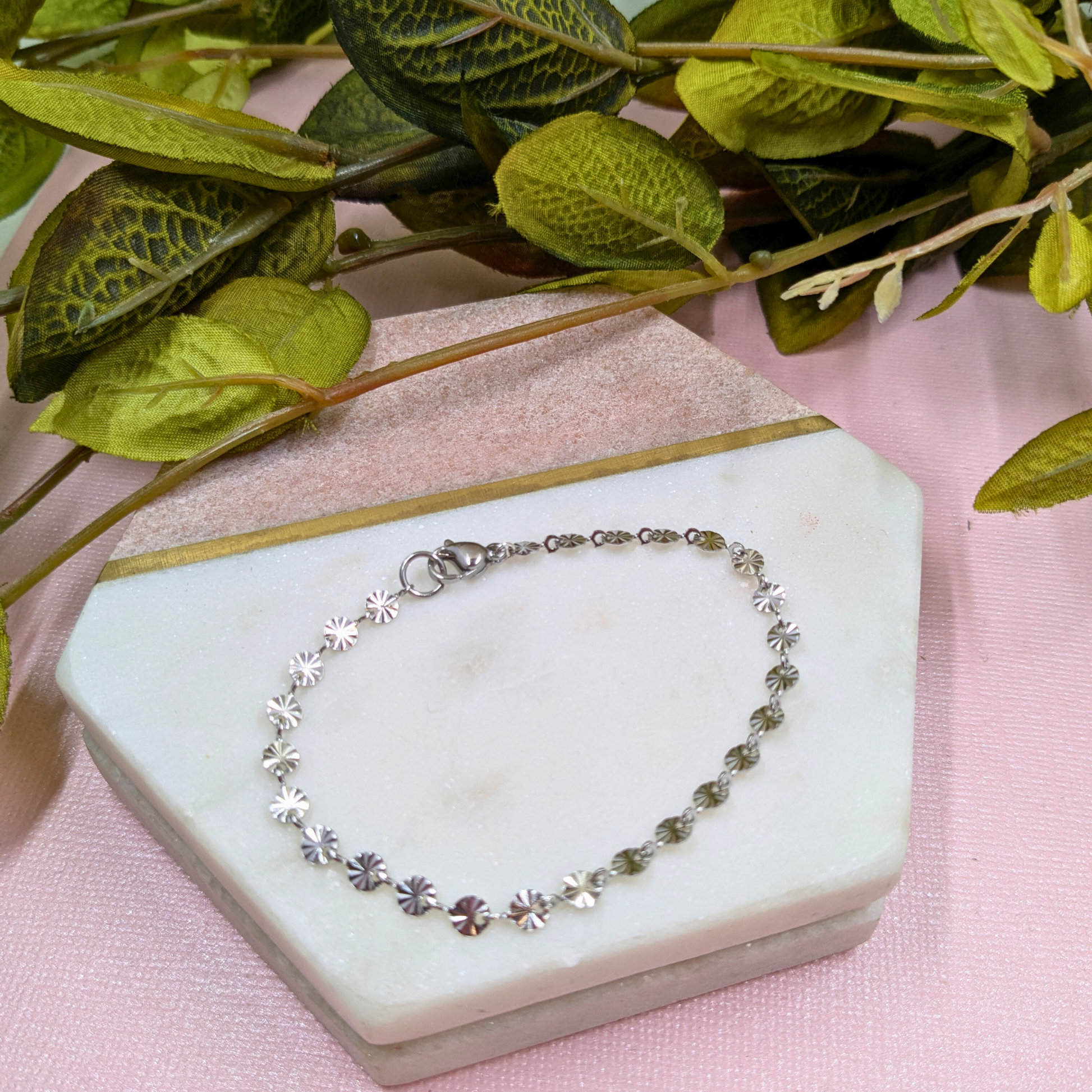 Perfect for those who adore the sleek, continuous look of permanent jewellery but love the flexibility of a clasp, the "Vancouver" Silver Sunburst is an ideal choice. It features a stunning silver chain adorned with eye-catching sunburst charms, creating a bold and symbolic statement piece that's designed to make you sparkle. It’s perfect for adding a powerful, artistic touch to any ensemble.